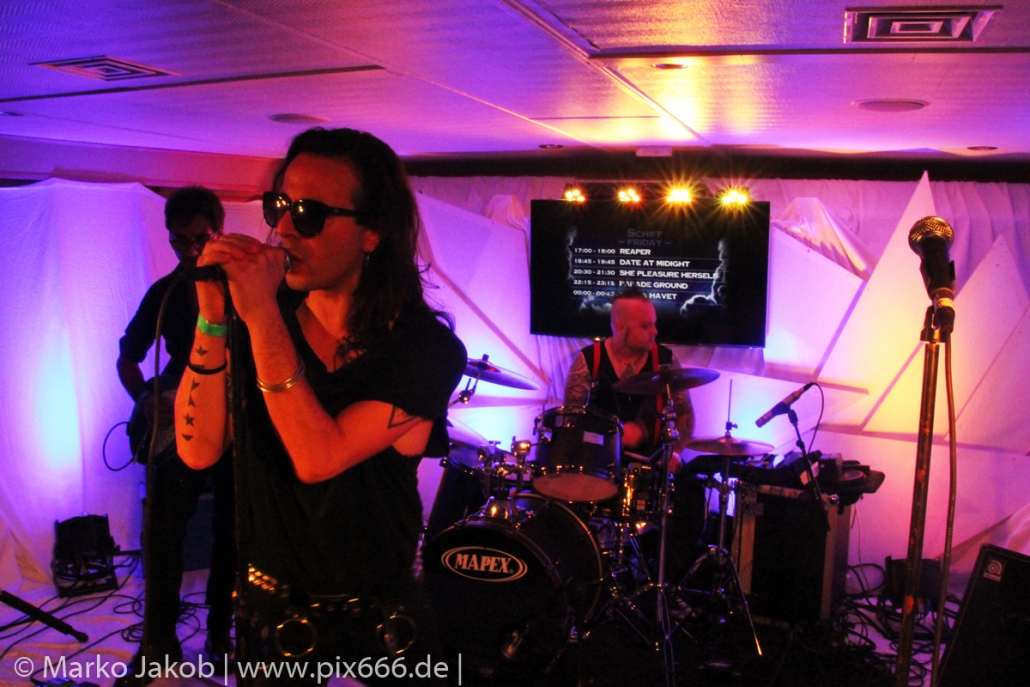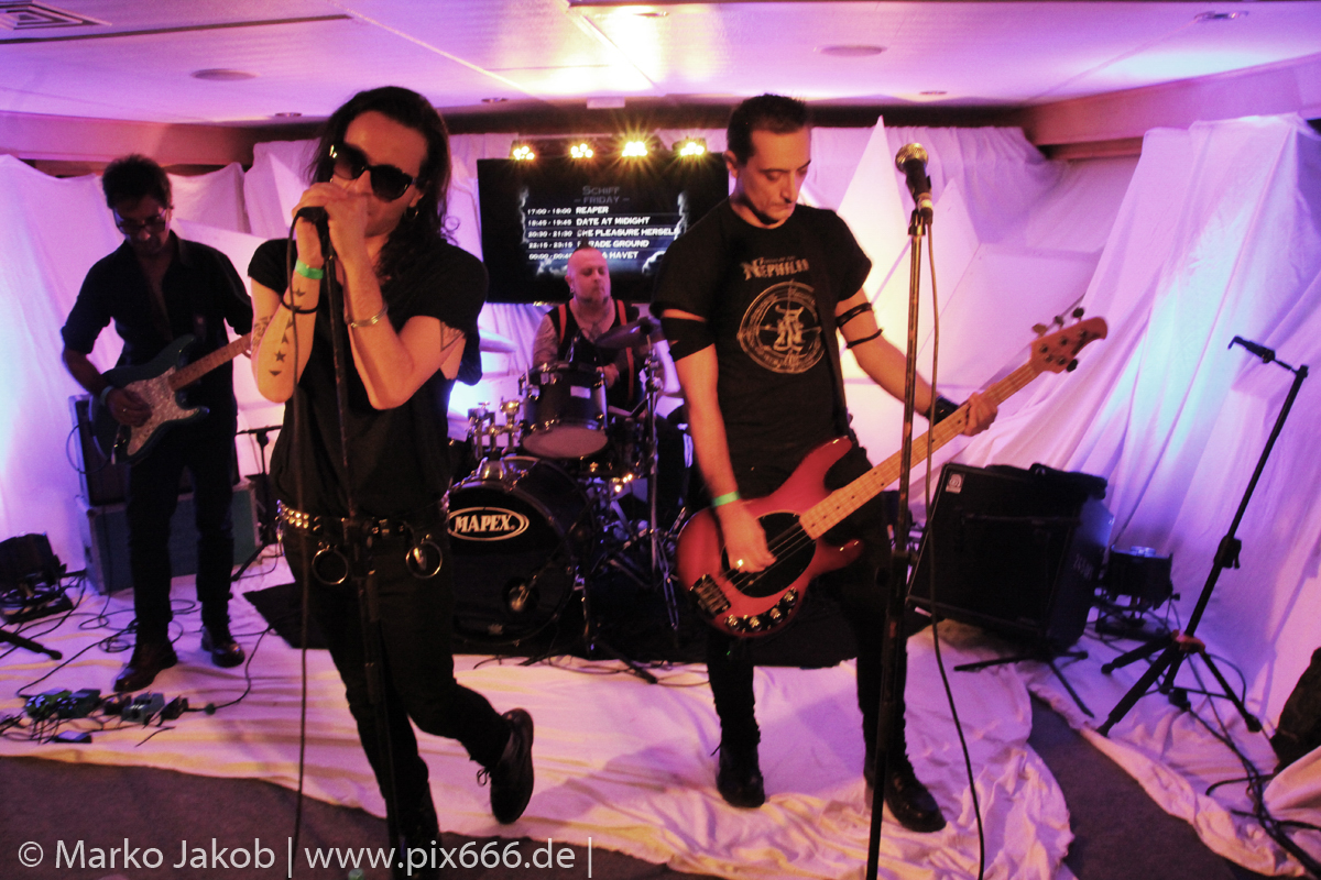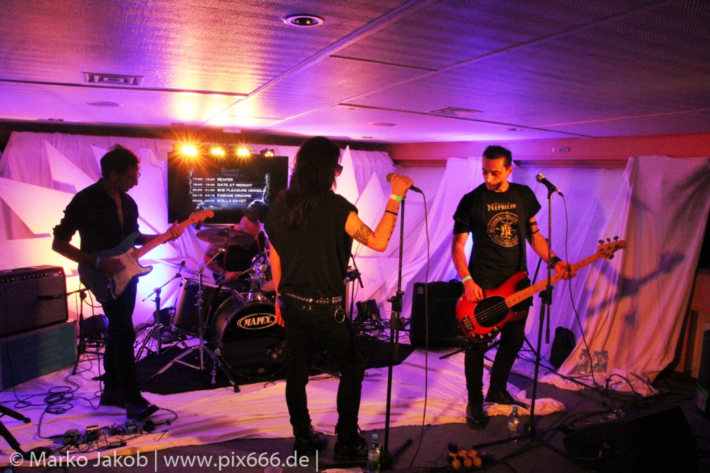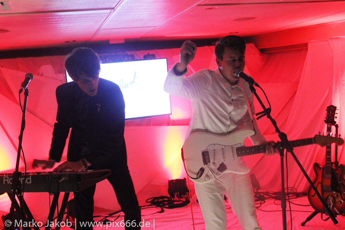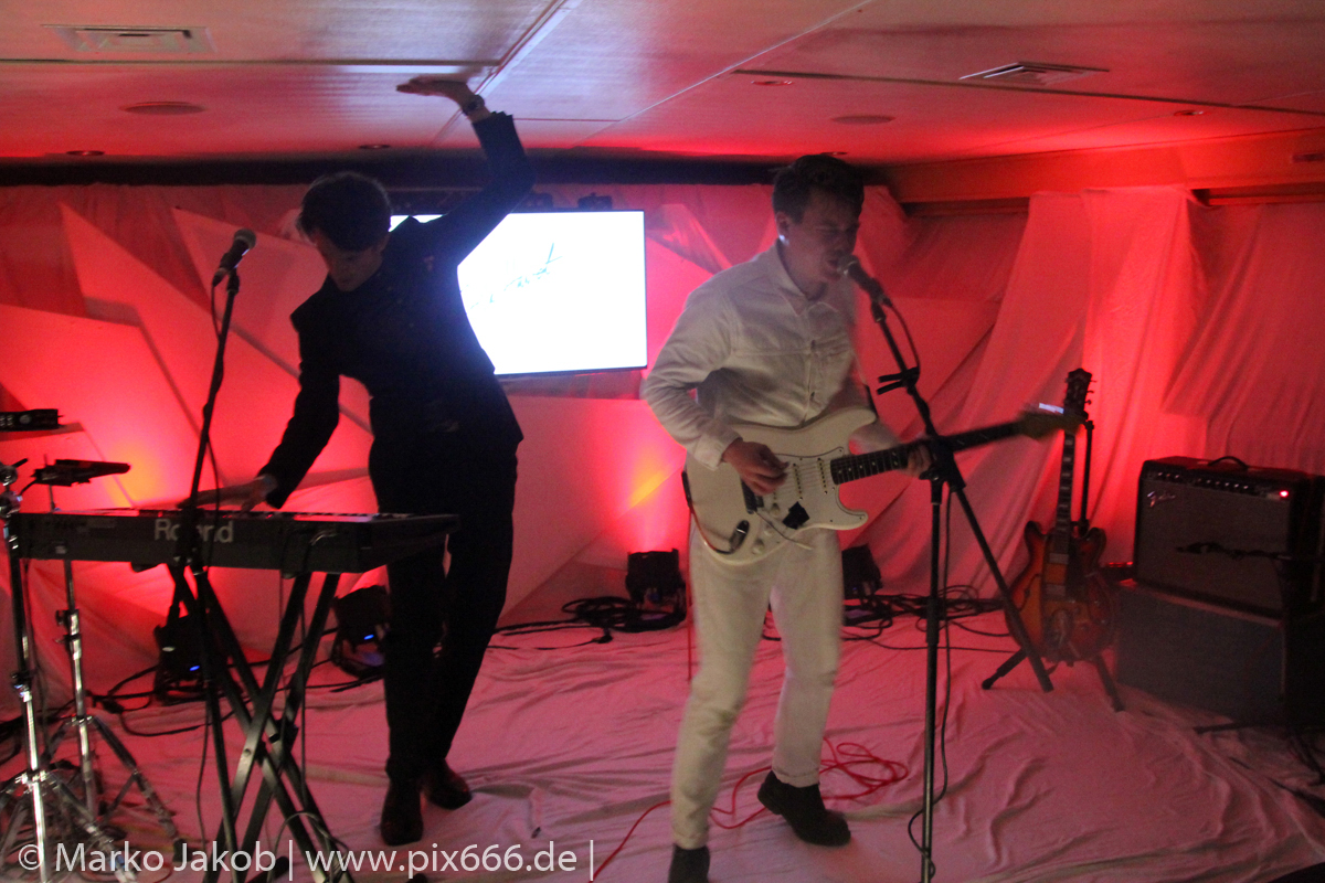 Stilla Havet aus Schweden vereinen perfekt New Wave und Post Punk. Drum Machines und Gitarren beherrschen den Sound. Angekündigt als Midnight-Special auf dem Schiff sorgten sie mit ihrer Musik dafür, dass die anwesenden Fans nicht ans müde werden denken konnten. Die Band riss das Publikum mit ihrer erfrischenden Art und der einprägsamen Stimme mit. Die Songs der schwedischen Band sind in Landessprache gesungen und haben dadurch einen ganz besonderen Charm. Das waren interessante und abwechslungsreiche 45 Minuten.