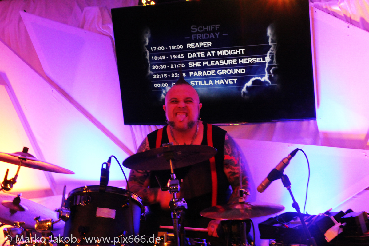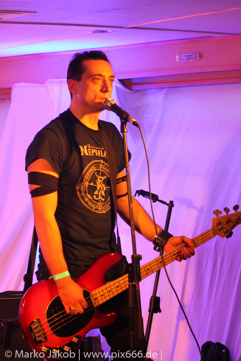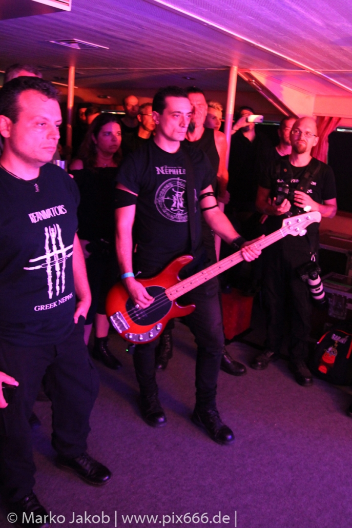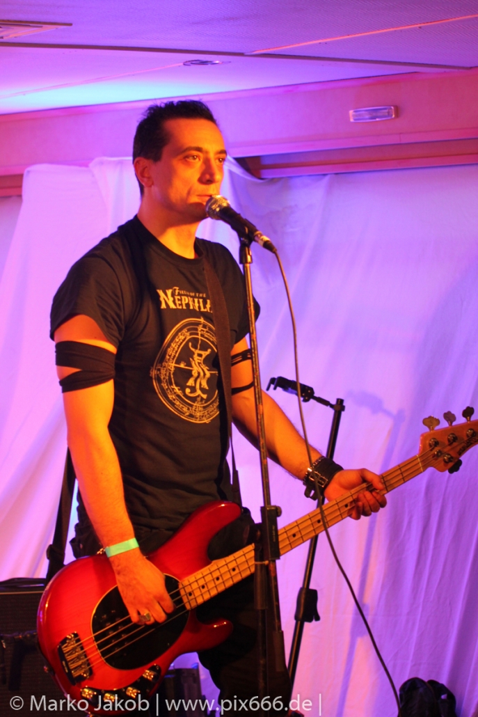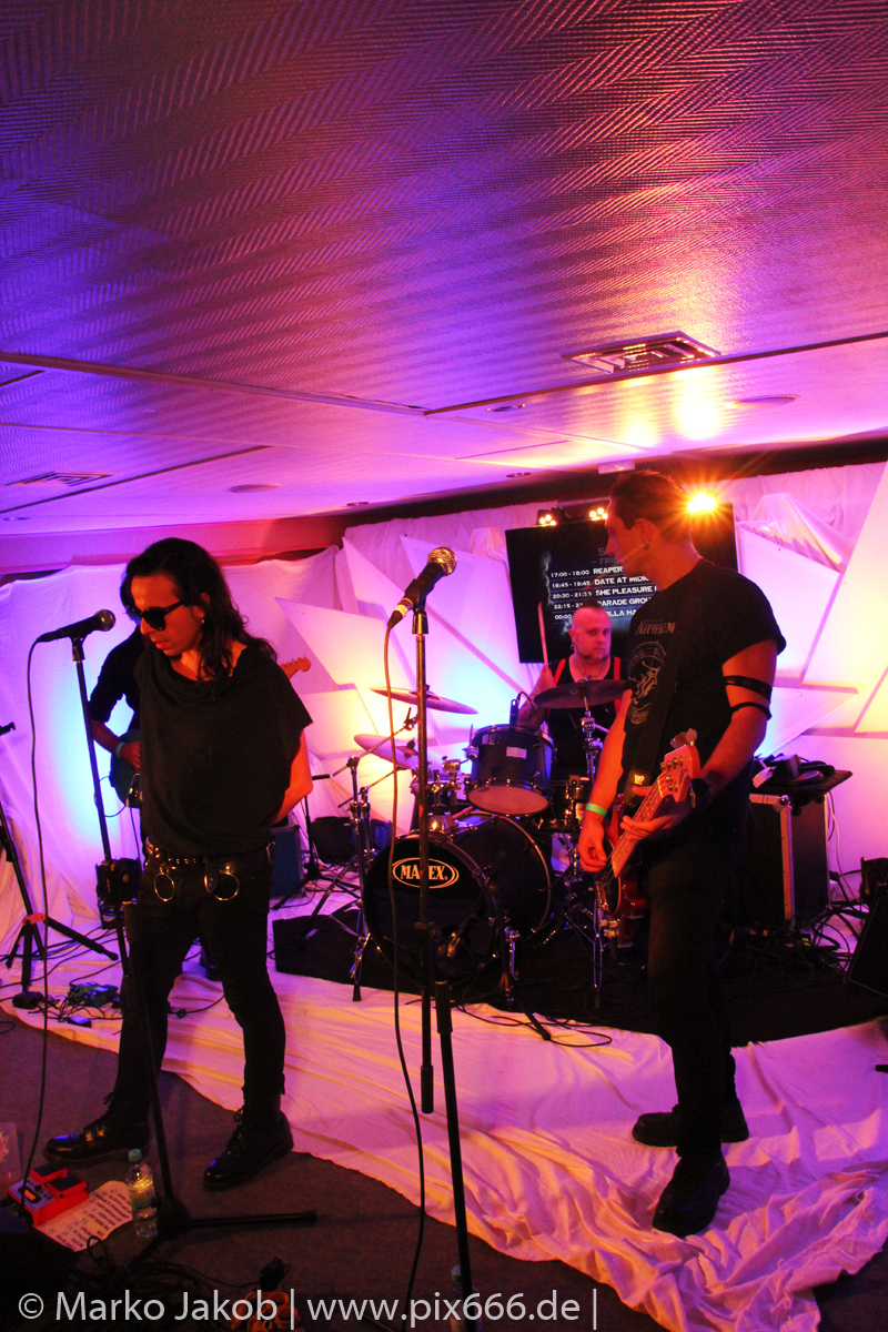 Stilla Havet aus Schweden vereinen perfekt New Wave und Post Punk. Drum Machines und Gitarren beherrschen den Sound. Angekündigt als Midnight-Special auf dem Schiff sorgten sie mit ihrer Musik dafür, dass die anwesenden Fans nicht ans müde werden denken konnten. Die Band riss das Publikum mit ihrer erfrischenden Art und der einprägsamen Stimme mit. Die Songs der schwedischen Band sind in Landessprache gesungen und haben dadurch einen ganz besonderen Charm. Das waren interessante und abwechslungsreiche 45 Minuten.