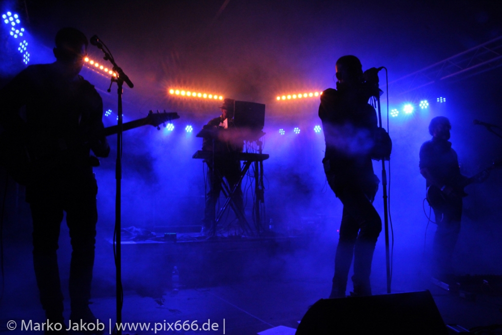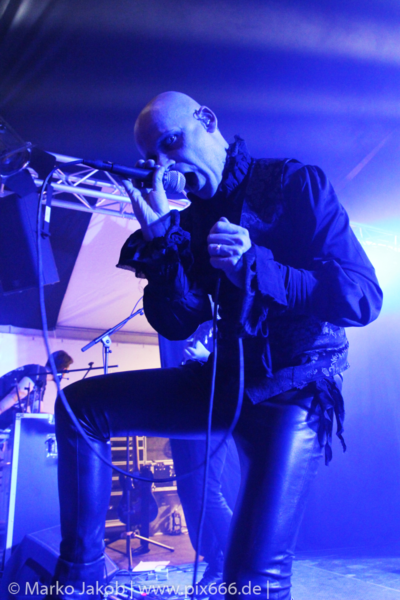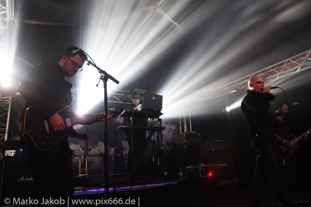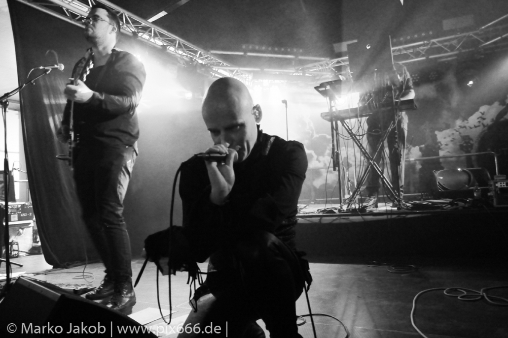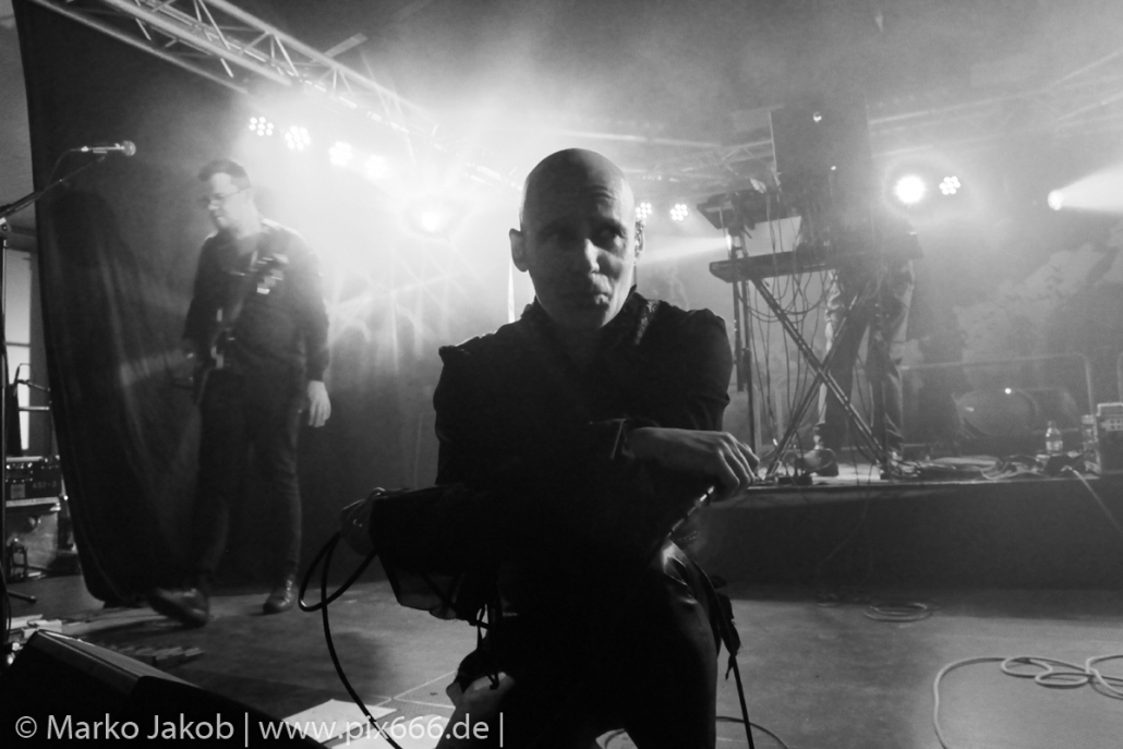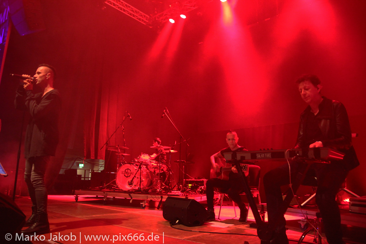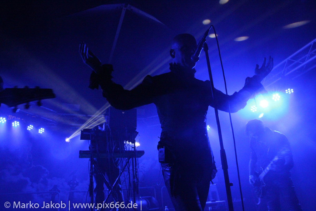 Die belgische Band The Arch wurde bereits 1986 gegründet. Sie haben inzwischen zahlreiche Alben veröffentlicht. Im August erschien ihre neue Single ‚Phantom Chase‘. Durch die gekonnte Kombination aus elektronischen Sounds und treibenden Wave Gitarren spricht diese Musik natürlich eine Vielzahl von Fans an. Die eingängige Musik animierte zahlreiche Besucher zum Dauertanzen. Bei einigen Songs, wie ‚Eyes Wide Open‘ vom Album ‚Fate‘ wurde sogar mitgesungen. Die Bühne war zumeist und blaues oder roten Licht gehüllt und relativ dunkel gehalten. Das passte perfekt zum Sound und erzeugte eine tolle Stimmung vom ersten bis zum letzten Ton.