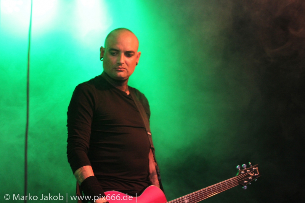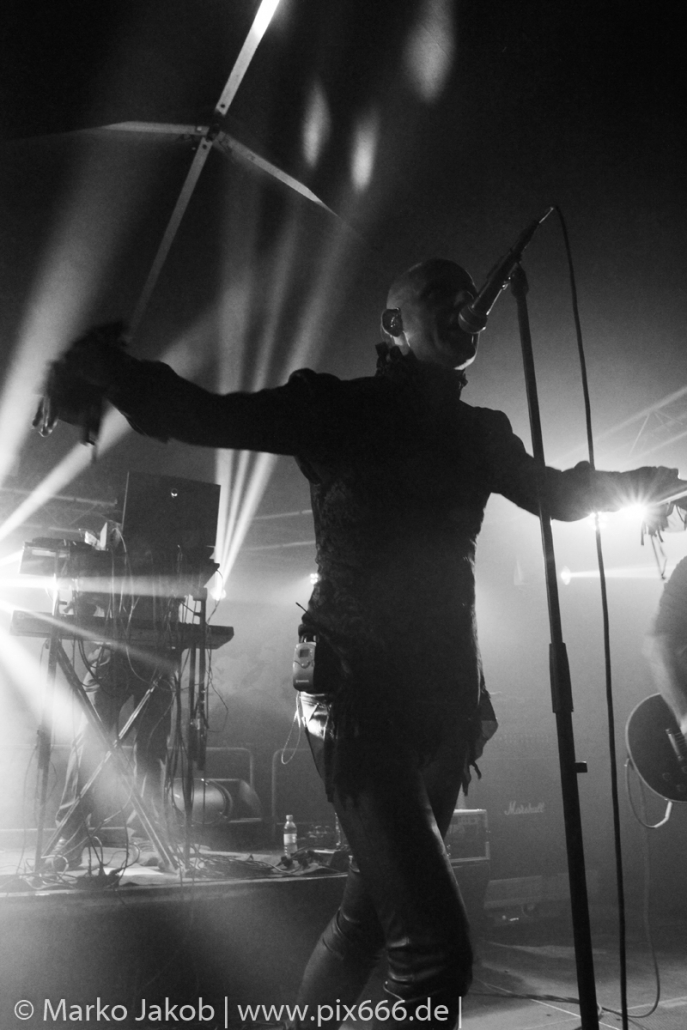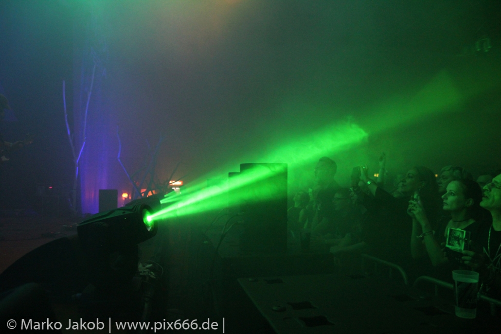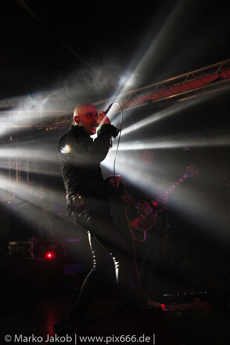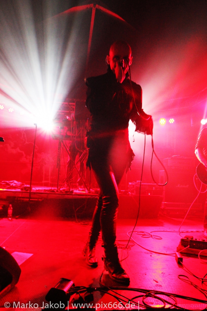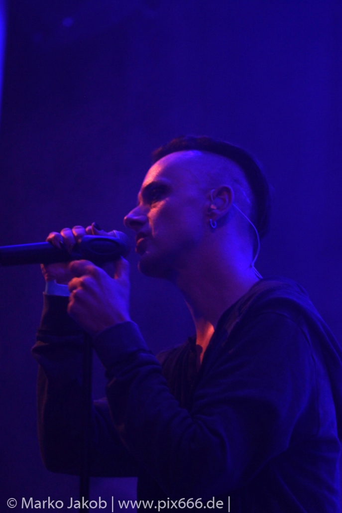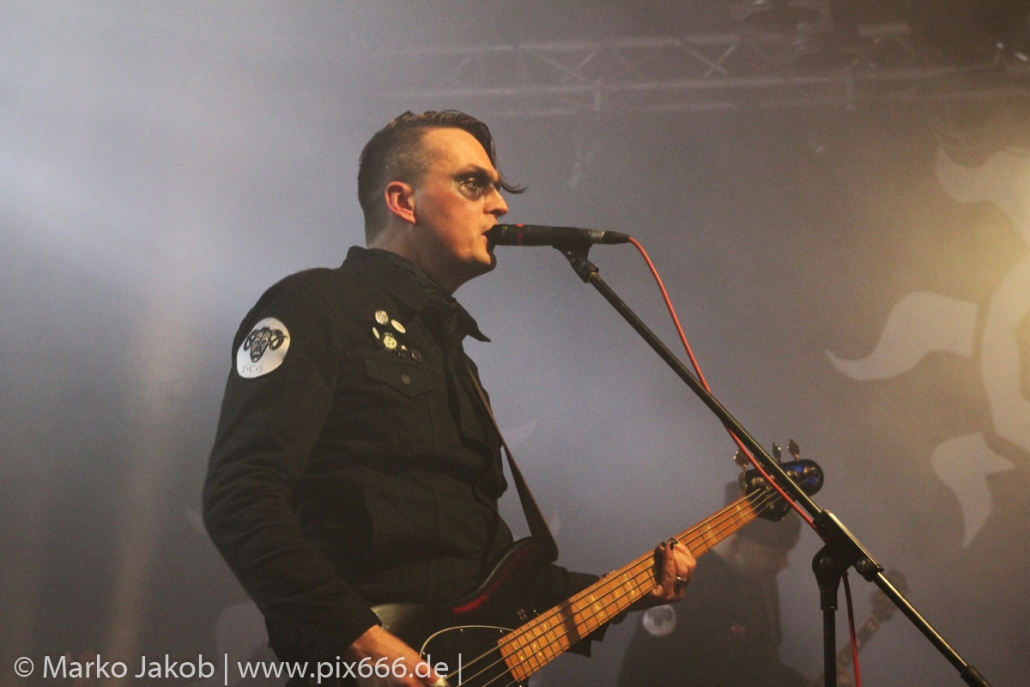 Die belgische Band The Arch wurde bereits 1986 gegründet. Sie haben inzwischen zahlreiche Alben veröffentlicht. Im August erschien ihre neue Single ‚Phantom Chase‘. Durch die gekonnte Kombination aus elektronischen Sounds und treibenden Wave Gitarren spricht diese Musik natürlich eine Vielzahl von Fans an. Die eingängige Musik animierte zahlreiche Besucher zum Dauertanzen. Bei einigen Songs, wie ‚Eyes Wide Open‘ vom Album ‚Fate‘ wurde sogar mitgesungen. Die Bühne war zumeist und blaues oder roten Licht gehüllt und relativ dunkel gehalten. Das passte perfekt zum Sound und erzeugte eine tolle Stimmung vom ersten bis zum letzten Ton.