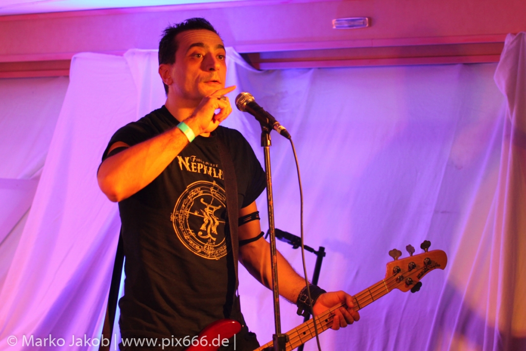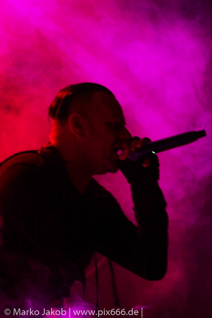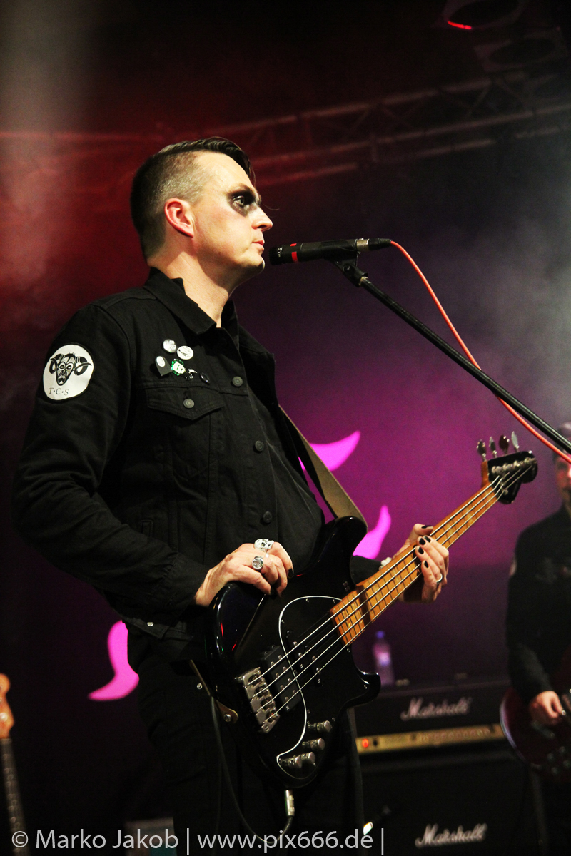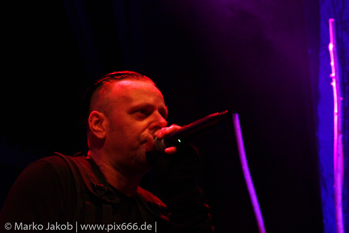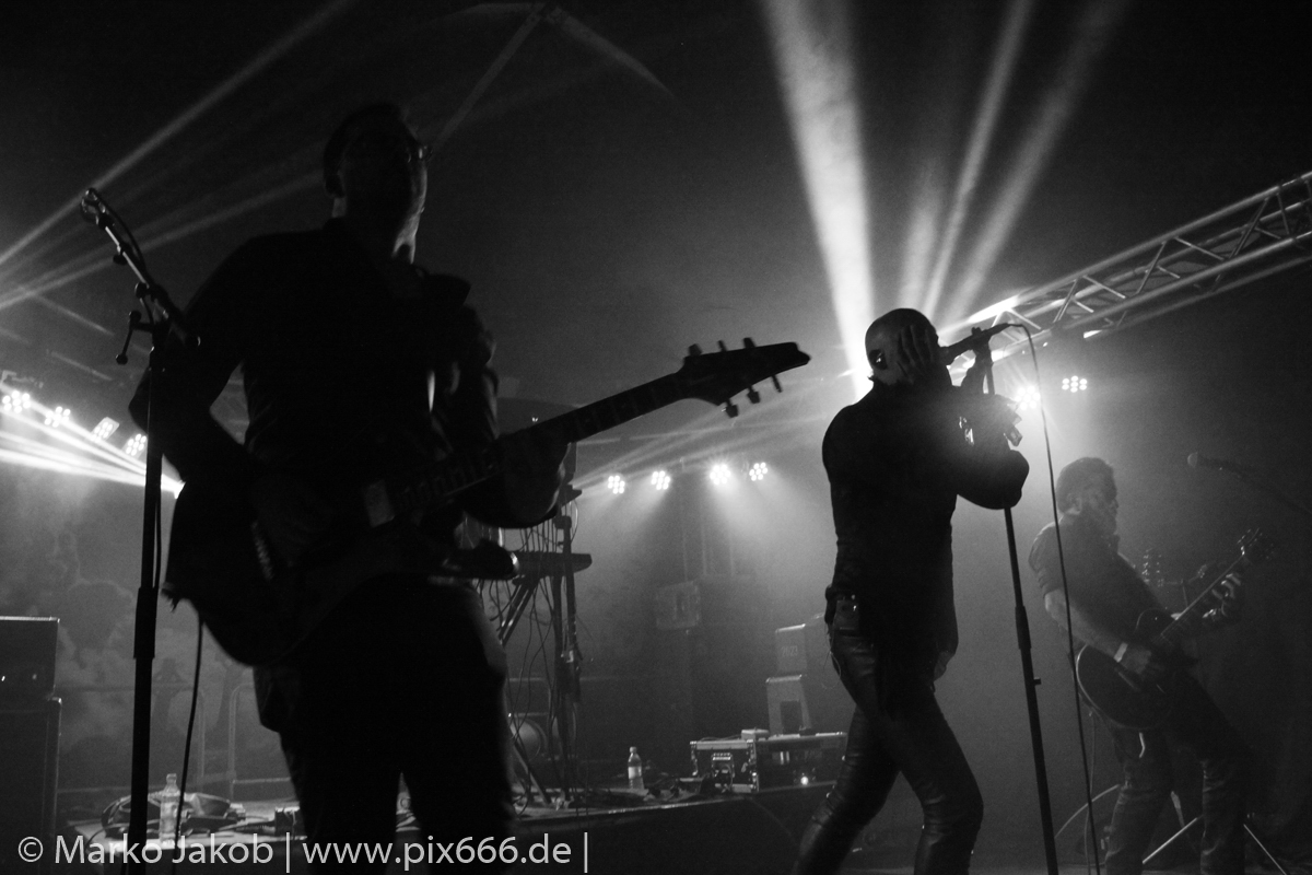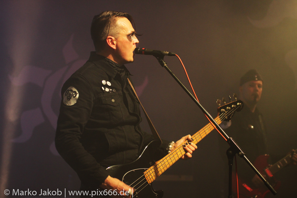 Die belgische Band The Arch wurde bereits 1986 gegründet. Sie haben inzwischen zahlreiche Alben veröffentlicht. Im August erschien ihre neue Single ‚Phantom Chase‘. Durch die gekonnte Kombination aus elektronischen Sounds und treibenden Wave Gitarren spricht diese Musik natürlich eine Vielzahl von Fans an. Die eingängige Musik animierte zahlreiche Besucher zum Dauertanzen. Bei einigen Songs, wie ‚Eyes Wide Open‘ vom Album ‚Fate‘ wurde sogar mitgesungen. Die Bühne war zumeist und blaues oder roten Licht gehüllt und relativ dunkel gehalten. Das passte perfekt zum Sound und erzeugte eine tolle Stimmung vom ersten bis zum letzten Ton.