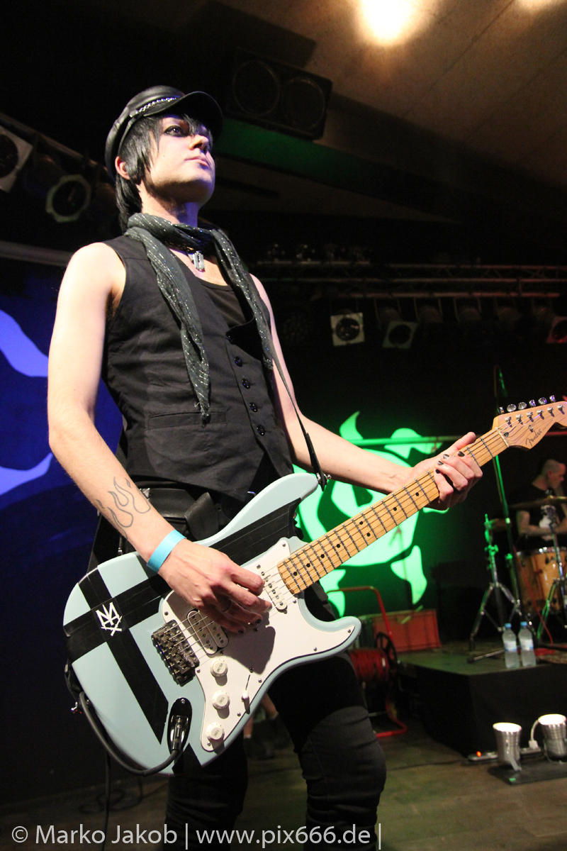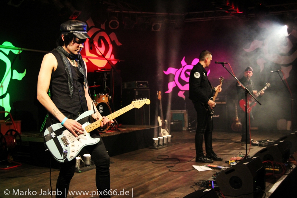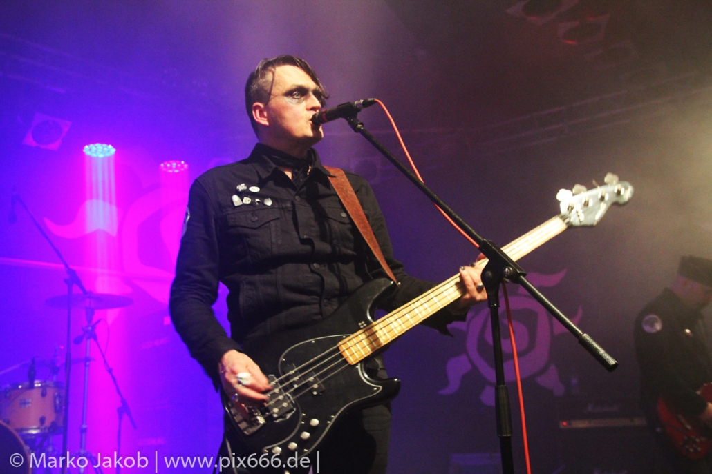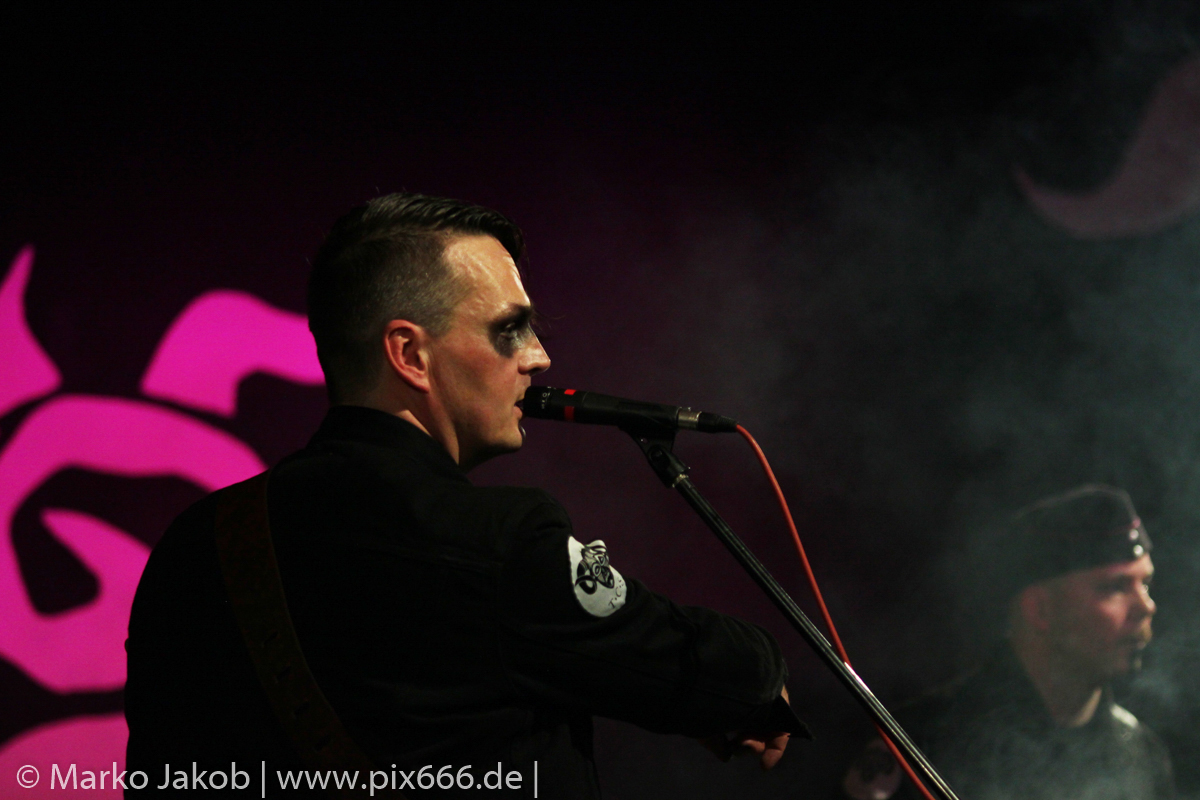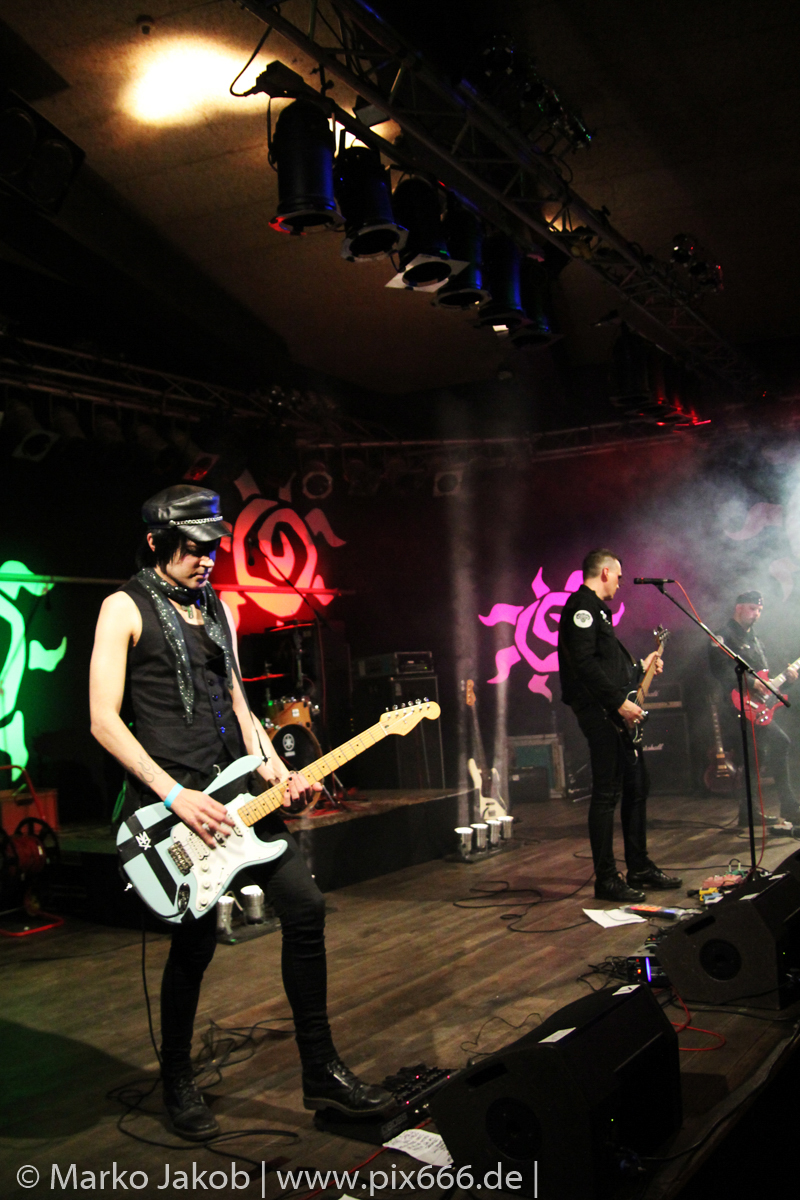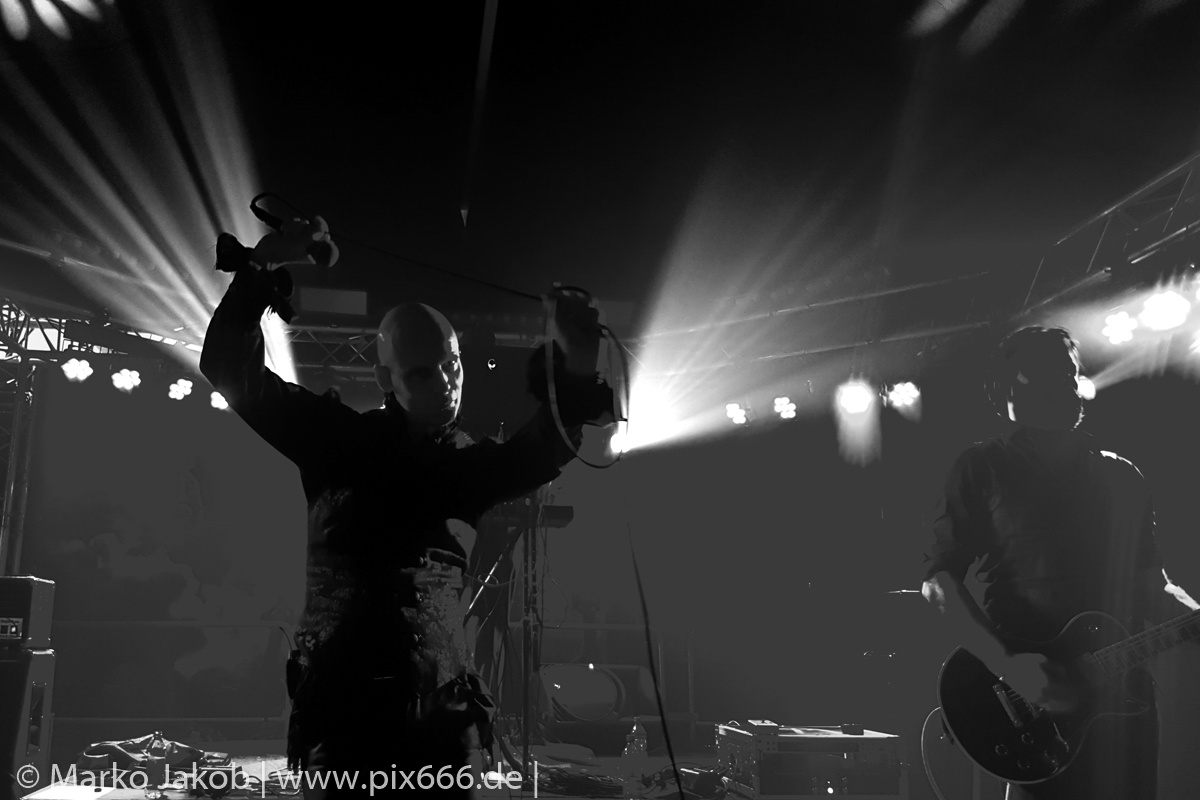 Die belgische Band The Arch wurde bereits 1986 gegründet. Sie haben inzwischen zahlreiche Alben veröffentlicht. Im August erschien ihre neue Single ‚Phantom Chase‘. Durch die gekonnte Kombination aus elektronischen Sounds und treibenden Wave Gitarren spricht diese Musik natürlich eine Vielzahl von Fans an. Die eingängige Musik animierte zahlreiche Besucher zum Dauertanzen. Bei einigen Songs, wie ‚Eyes Wide Open‘ vom Album ‚Fate‘ wurde sogar mitgesungen. Die Bühne war zumeist und blaues oder roten Licht gehüllt und relativ dunkel gehalten. Das passte perfekt zum Sound und erzeugte eine tolle Stimmung vom ersten bis zum letzten Ton.