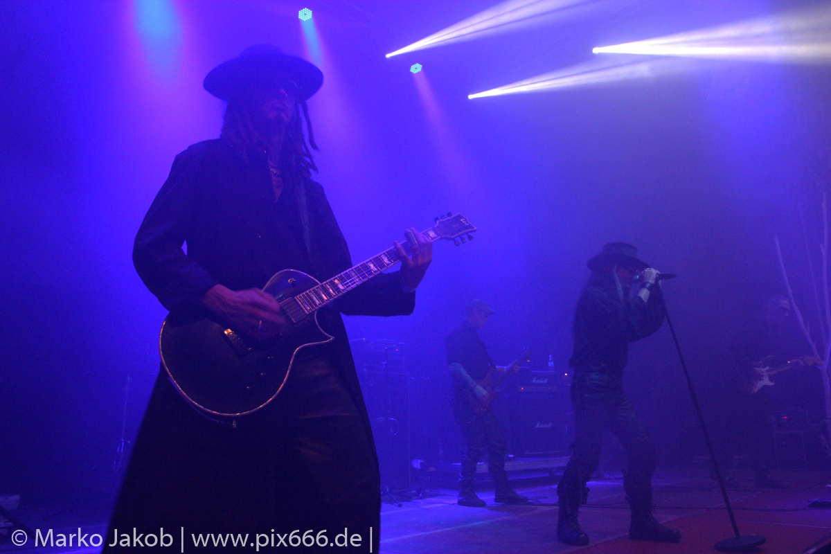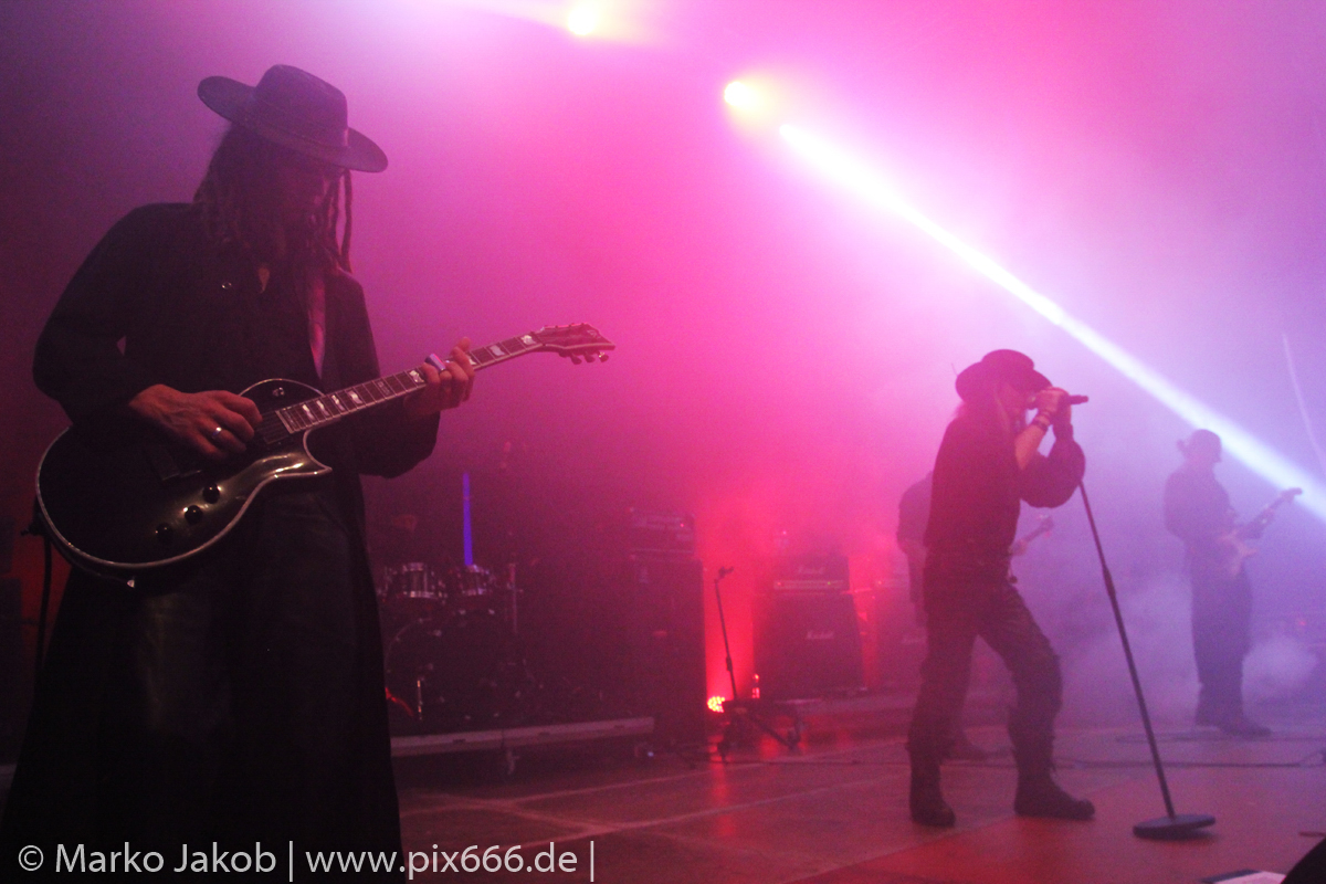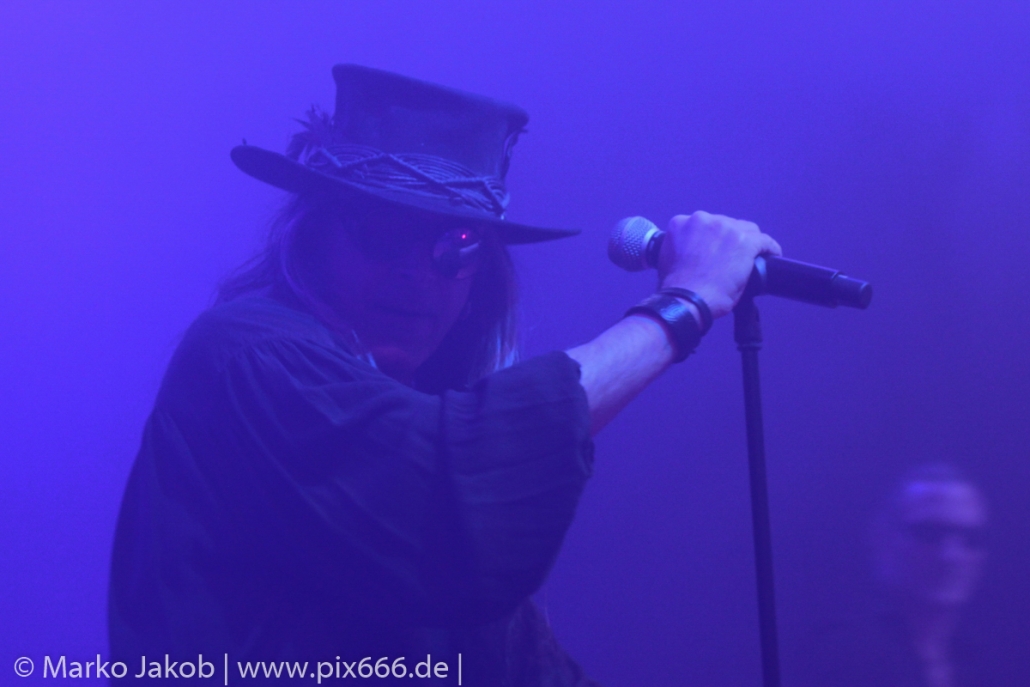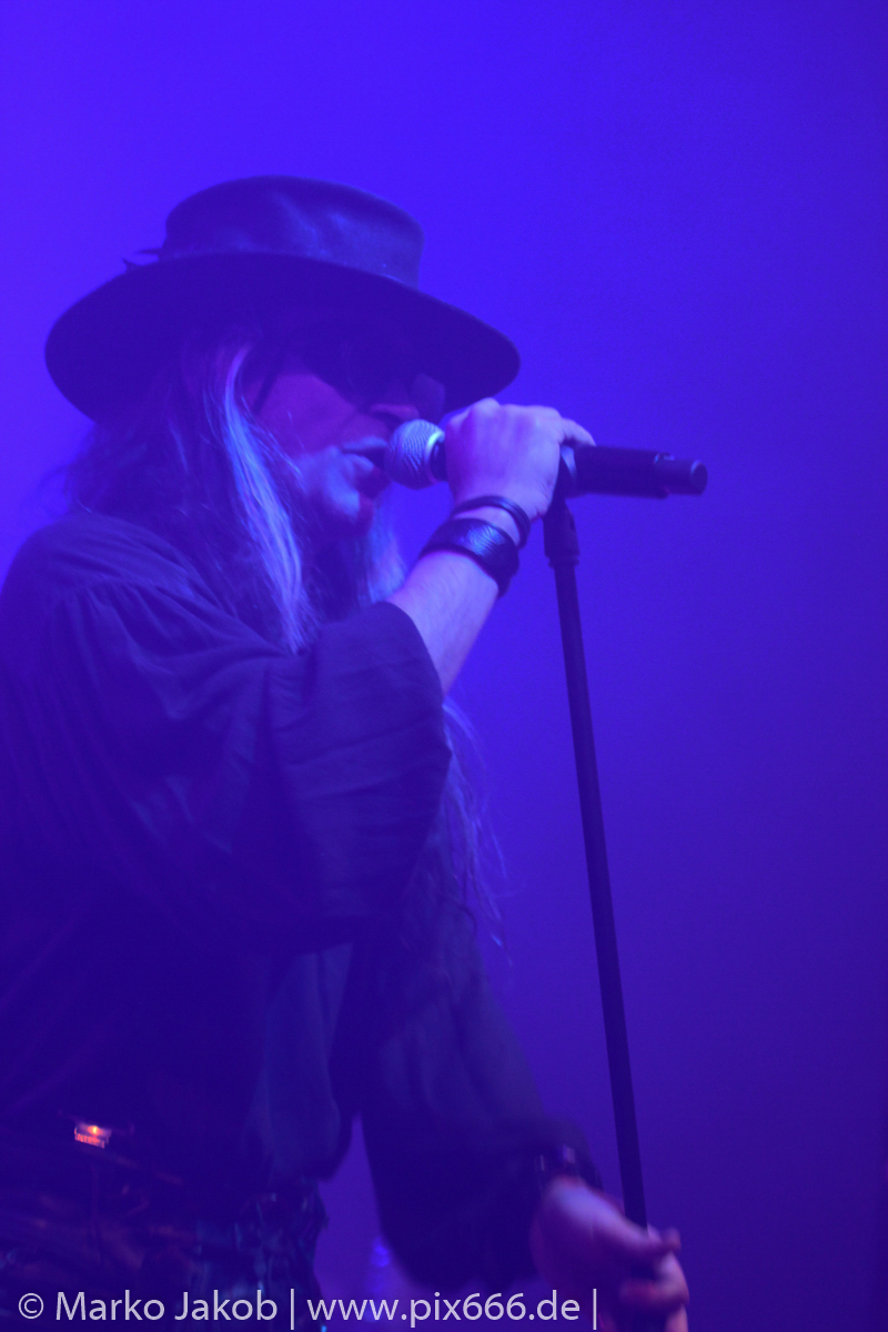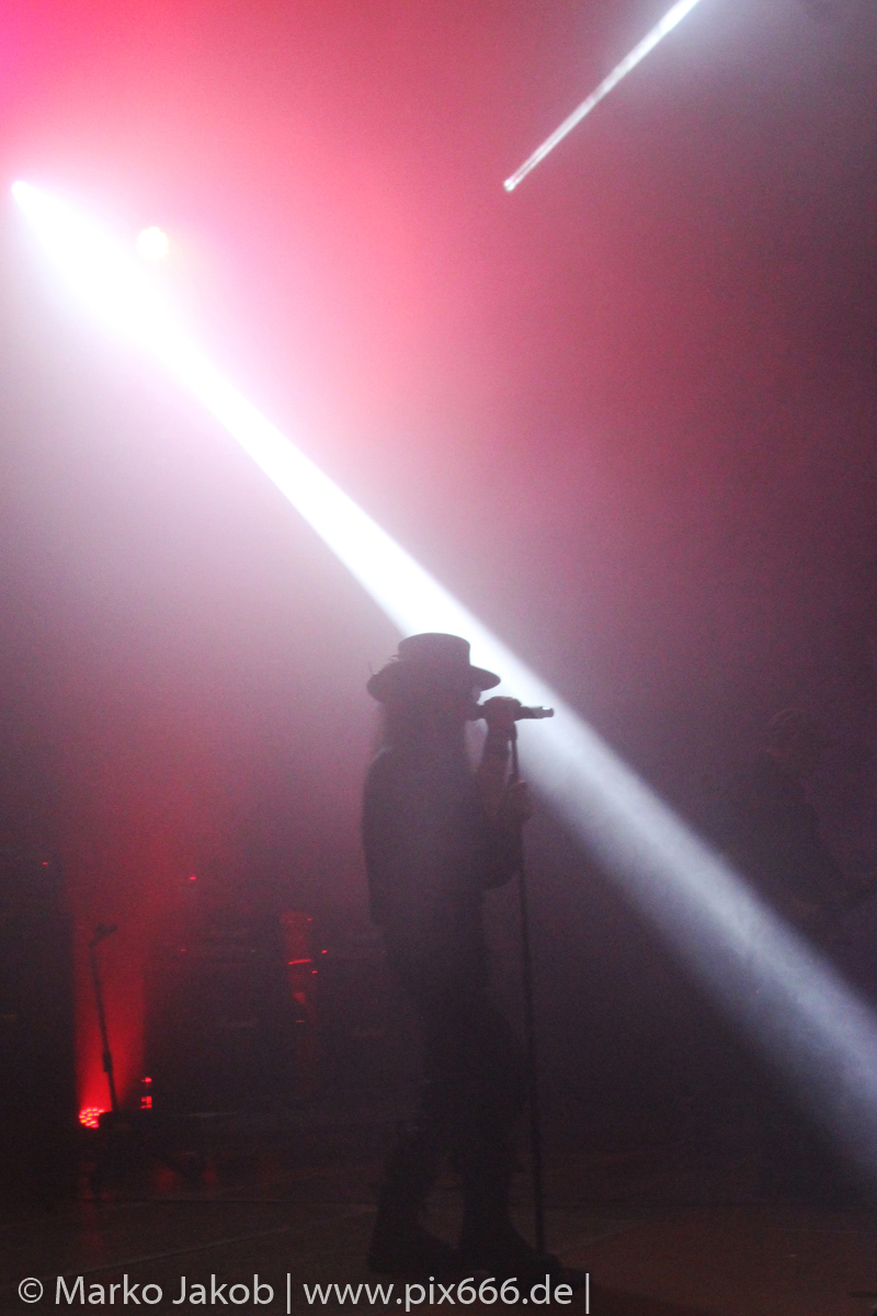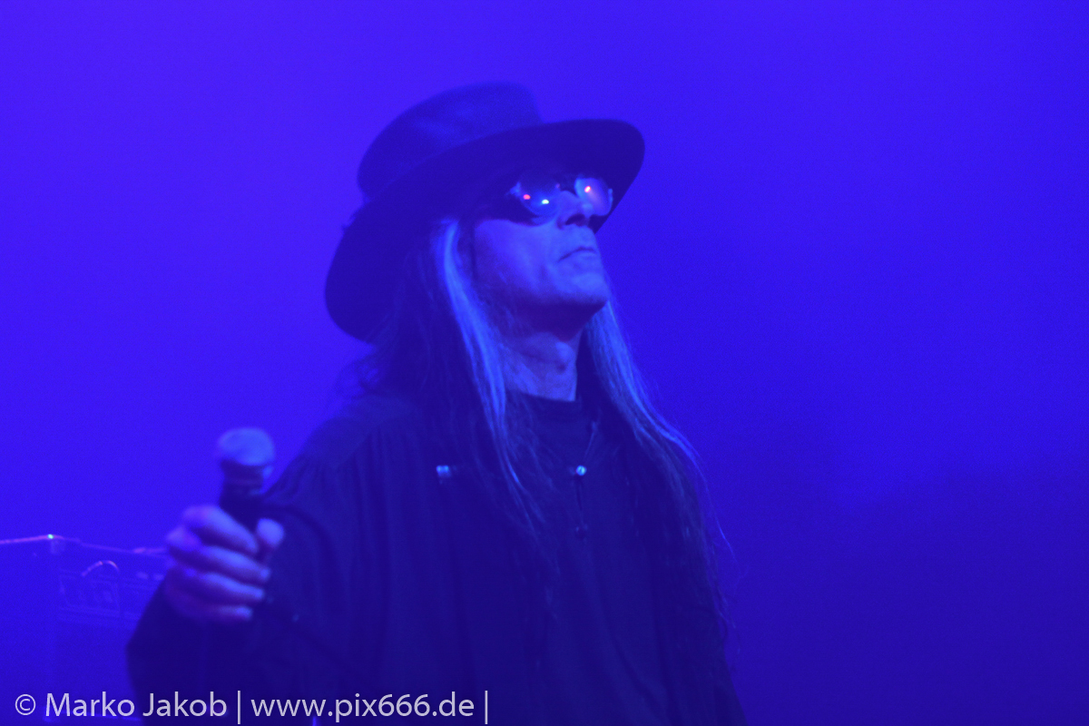 Die Kultband aus dem Bereich Gothic Rock und Gothic Metal, Fields Of The Nephilim, wurde bereits 1983 gegründet. 1987 erschien das Debutalbum ‚Dawnrazor‘. Sehr viele Alben hat die Band in ihrer langen Karriere nicht veröffentlich, das letzte Studioalbum ‚Mourning Sun‘ stammt aus dem Jahr 2005. Immerhin gab es 2016 eine neue Single mit dem Titel ‚Prophecy‘. Diese passt sich vom Sound her nahtlos an die älteren Stücke an. Ein wirklich toller, zeitloser Gothic Rock Song. Die Band betrat nach einer Verspätung von etwa 15 Minuten die Bühne in der Rattenfängerhalle. Typisch wie immer waren die düsteren Herren fast das gesamte Konzert in dichten Nebel eingehüllt, so dass man sie nur zeitweise richtig sehen konnte. Der Sound in der Halle entschädigte allerdings dafür, dass man nicht so viel sah. Carl Mc Coy und Co. präsentierten neben den Klassikern aus den achtziger Jahren, wie ‚Preacher Man‘ und ‚Moonchild‘ natürlich auch die aktuelle Single ‚Prophecy‘. Fields Of The Nephilim boten bis Mitternacht eine Gothic Rock Show ohne Schwächen.