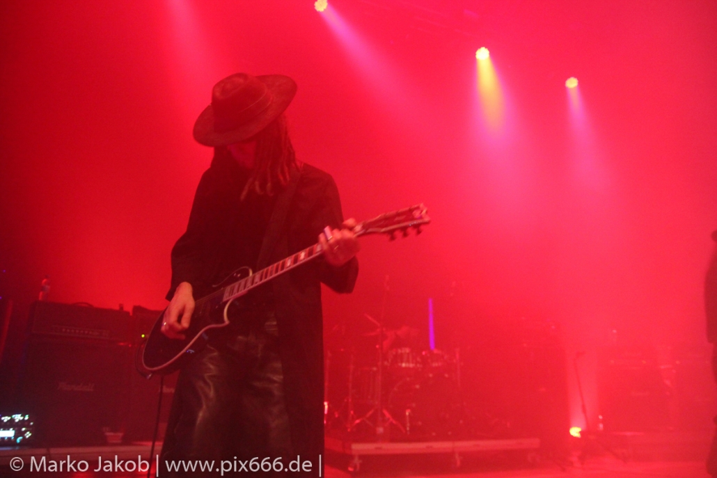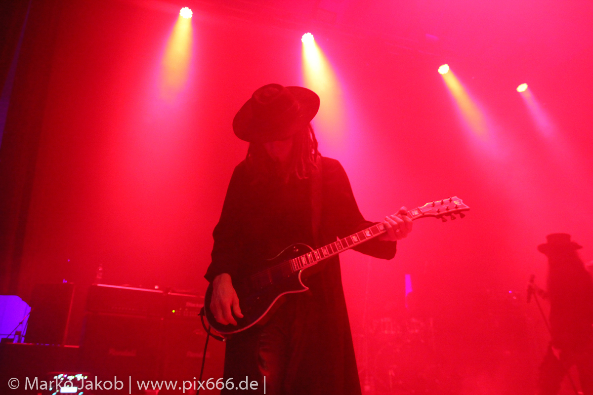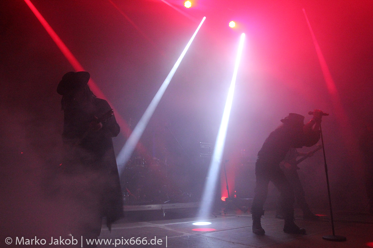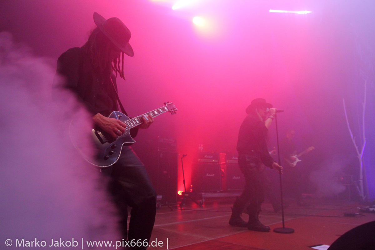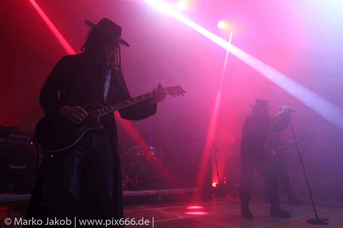 Die Kultband aus dem Bereich Gothic Rock und Gothic Metal, Fields Of The Nephilim, wurde bereits 1983 gegründet. 1987 erschien das Debutalbum ‚Dawnrazor‘. Sehr viele Alben hat die Band in ihrer langen Karriere nicht veröffentlich, das letzte Studioalbum ‚Mourning Sun‘ stammt aus dem Jahr 2005. Immerhin gab es 2016 eine neue Single mit dem Titel ‚Prophecy‘. Diese passt sich vom Sound her nahtlos an die älteren Stücke an. Ein wirklich toller, zeitloser Gothic Rock Song. Die Band betrat nach einer Verspätung von etwa 15 Minuten die Bühne in der Rattenfängerhalle. Typisch wie immer waren die düsteren Herren fast das gesamte Konzert in dichten Nebel eingehüllt, so dass man sie nur zeitweise richtig sehen konnte. Der Sound in der Halle entschädigte allerdings dafür, dass man nicht so viel sah. Carl Mc Coy und Co. präsentierten neben den Klassikern aus den achtziger Jahren, wie ‚Preacher Man‘ und ‚Moonchild‘ natürlich auch die aktuelle Single ‚Prophecy‘. Fields Of The Nephilim boten bis Mitternacht eine Gothic Rock Show ohne Schwächen.