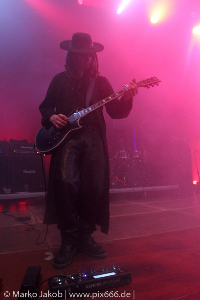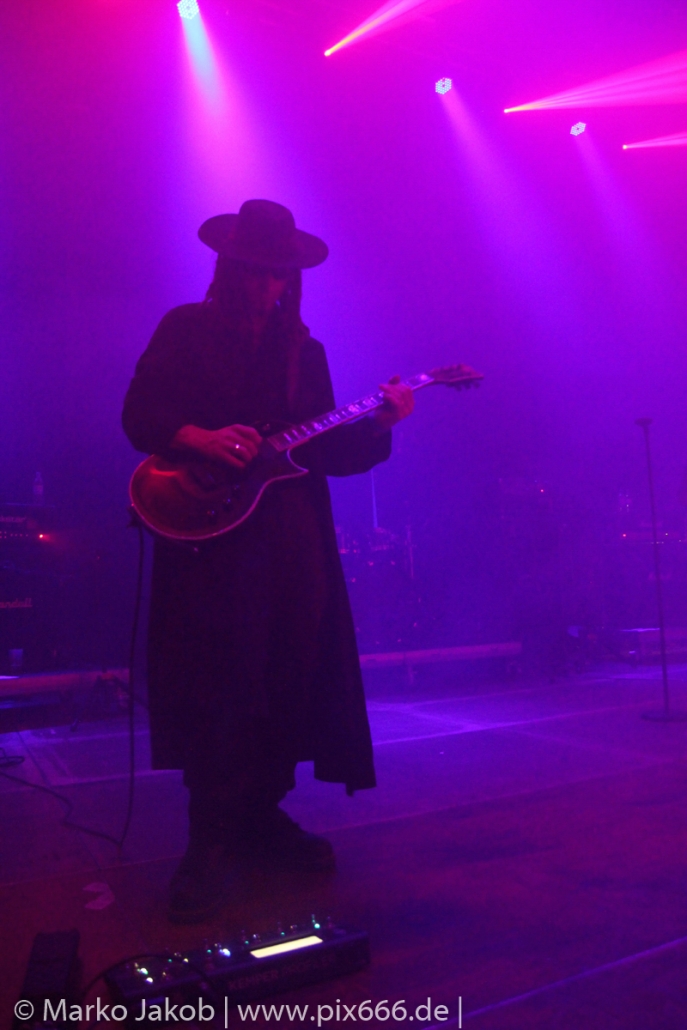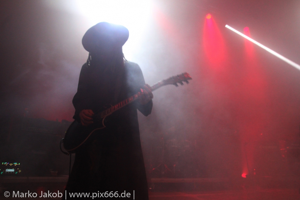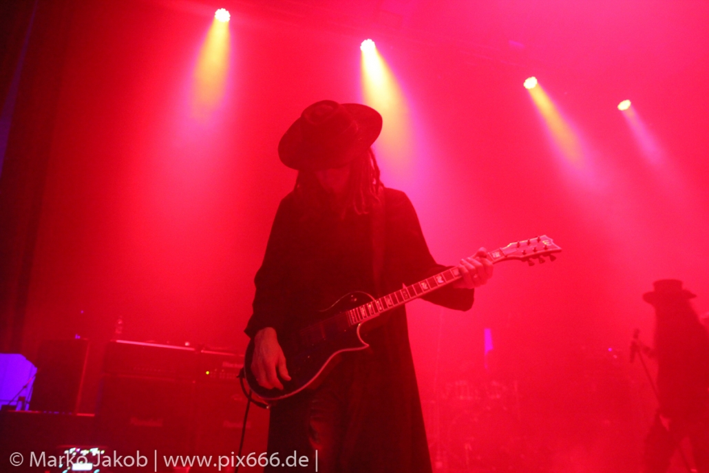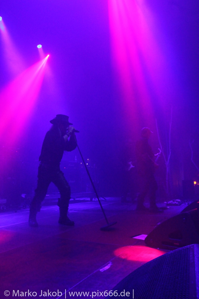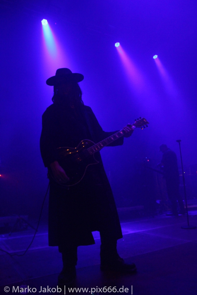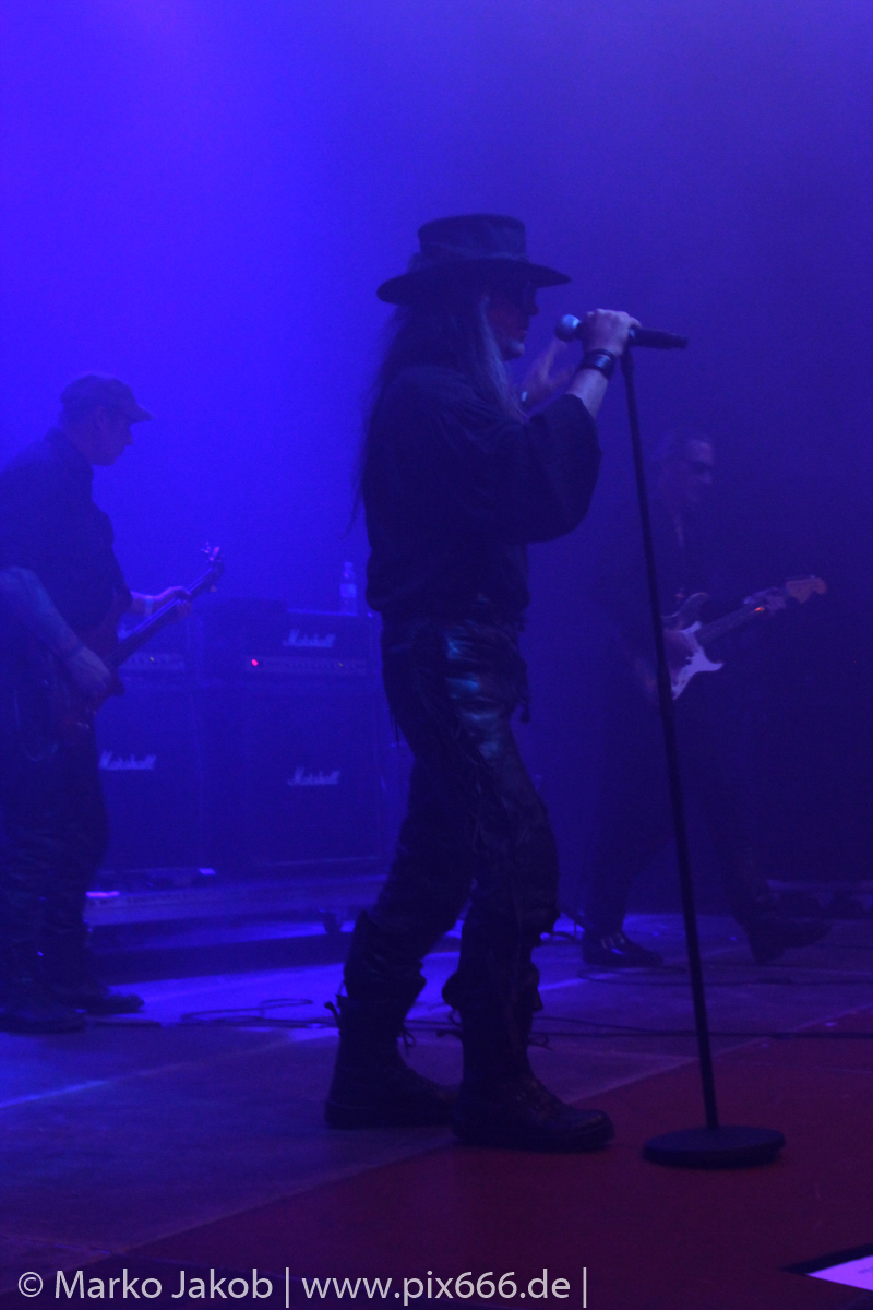 Die Kultband aus dem Bereich Gothic Rock und Gothic Metal, Fields Of The Nephilim, wurde bereits 1983 gegründet. 1987 erschien das Debutalbum ‚Dawnrazor‘. Sehr viele Alben hat die Band in ihrer langen Karriere nicht veröffentlich, das letzte Studioalbum ‚Mourning Sun‘ stammt aus dem Jahr 2005. Immerhin gab es 2016 eine neue Single mit dem Titel ‚Prophecy‘. Diese passt sich vom Sound her nahtlos an die älteren Stücke an. Ein wirklich toller, zeitloser Gothic Rock Song. Die Band betrat nach einer Verspätung von etwa 15 Minuten die Bühne in der Rattenfängerhalle. Typisch wie immer waren die düsteren Herren fast das gesamte Konzert in dichten Nebel eingehüllt, so dass man sie nur zeitweise richtig sehen konnte. Der Sound in der Halle entschädigte allerdings dafür, dass man nicht so viel sah. Carl Mc Coy und Co. präsentierten neben den Klassikern aus den achtziger Jahren, wie ‚Preacher Man‘ und ‚Moonchild‘ natürlich auch die aktuelle Single ‚Prophecy‘. Fields Of The Nephilim boten bis Mitternacht eine Gothic Rock Show ohne Schwächen.