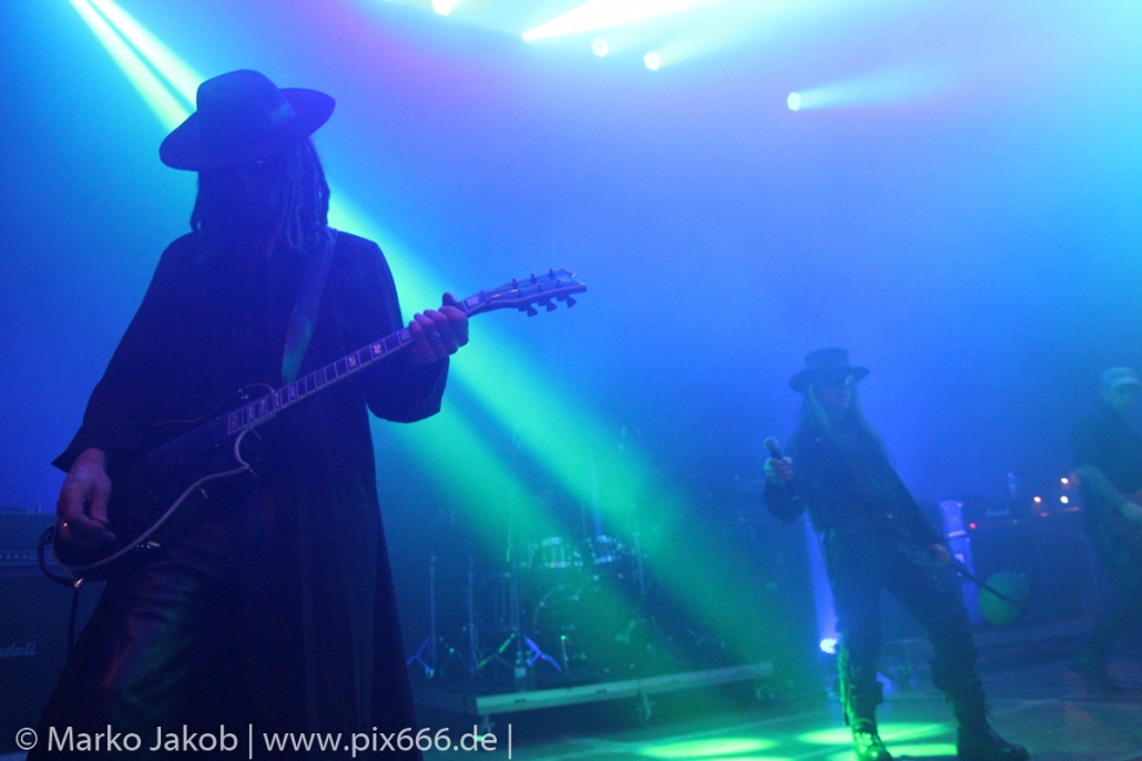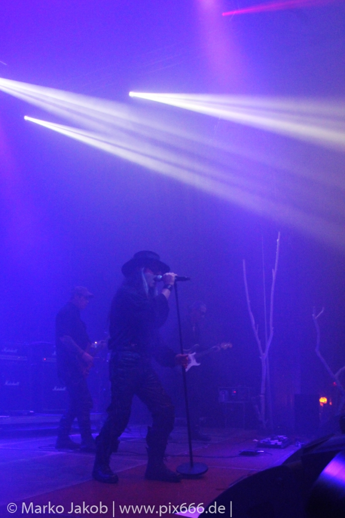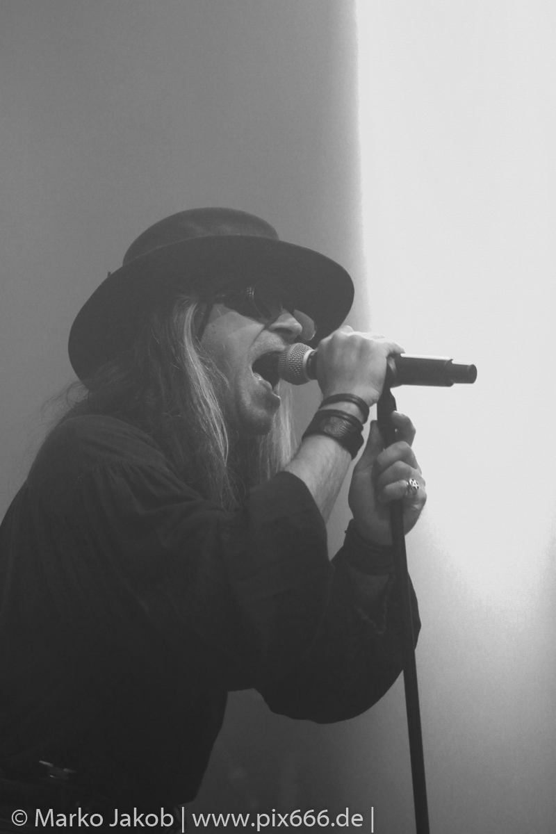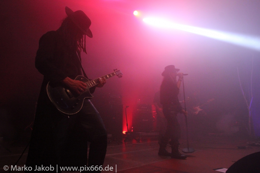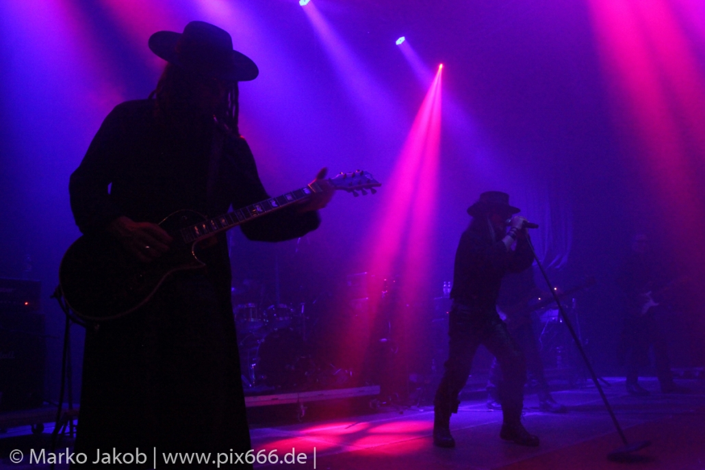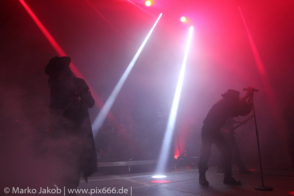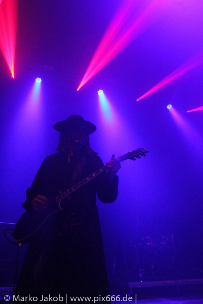Die Kultband aus dem Bereich Gothic Rock und Gothic Metal, Fields Of The Nephilim, wurde bereits 1983 gegründet. 1987 erschien das Debutalbum ‚Dawnrazor‘. Sehr viele Alben hat die Band in ihrer langen Karriere nicht veröffentlich, das letzte Studioalbum ‚Mourning Sun‘ stammt aus dem Jahr 2005. Immerhin gab es 2016 eine neue Single mit dem Titel ‚Prophecy‘. Diese passt sich vom Sound her nahtlos an die älteren Stücke an. Ein wirklich toller, zeitloser Gothic Rock Song. Die Band betrat nach einer Verspätung von etwa 15 Minuten die Bühne in der Rattenfängerhalle. Typisch wie immer waren die düsteren Herren fast das gesamte Konzert in dichten Nebel eingehüllt, so dass man sie nur zeitweise richtig sehen konnte. Der Sound in der Halle entschädigte allerdings dafür, dass man nicht so viel sah. Carl Mc Coy und Co. präsentierten neben den Klassikern aus den achtziger Jahren, wie ‚Preacher Man‘ und ‚Moonchild‘ natürlich auch die aktuelle Single ‚Prophecy‘. Fields Of The Nephilim boten bis Mitternacht eine Gothic Rock Show ohne Schwächen.
