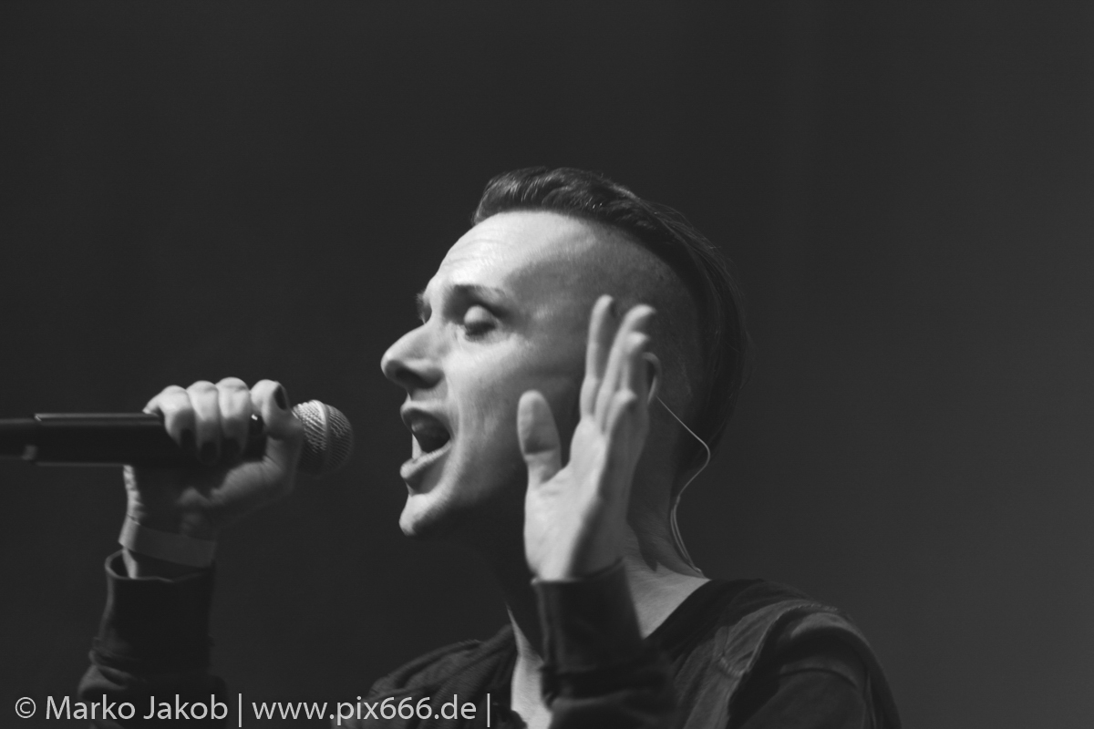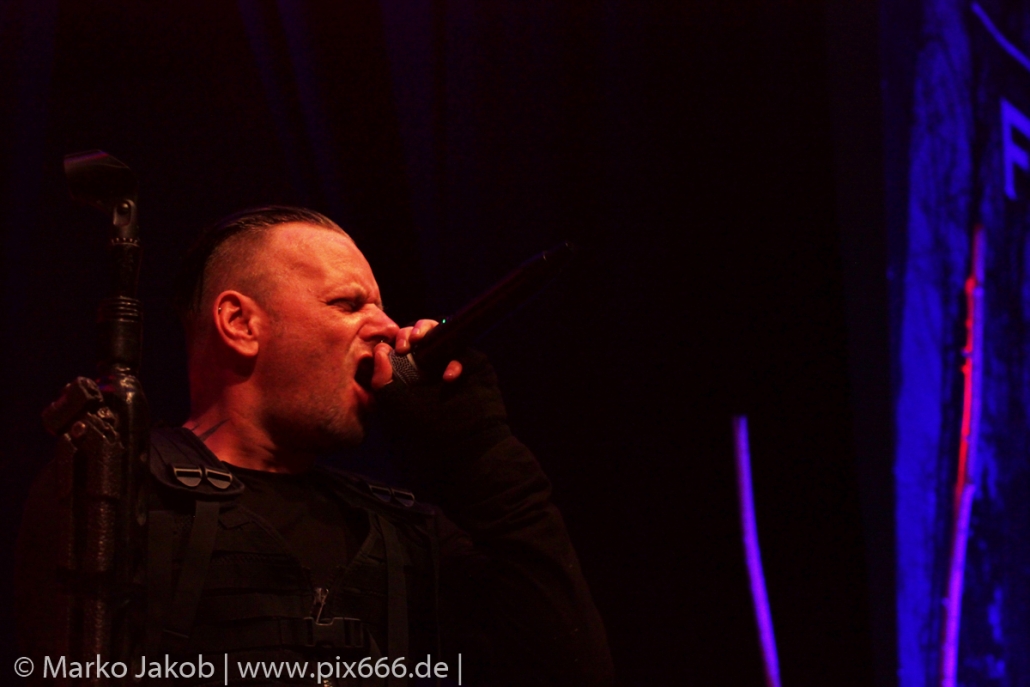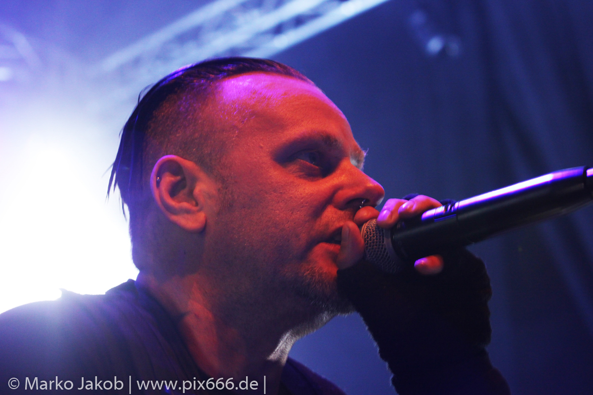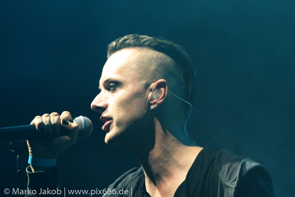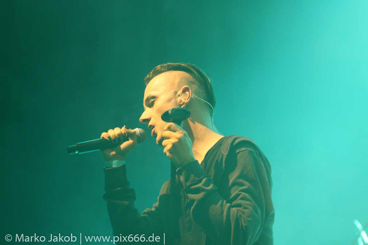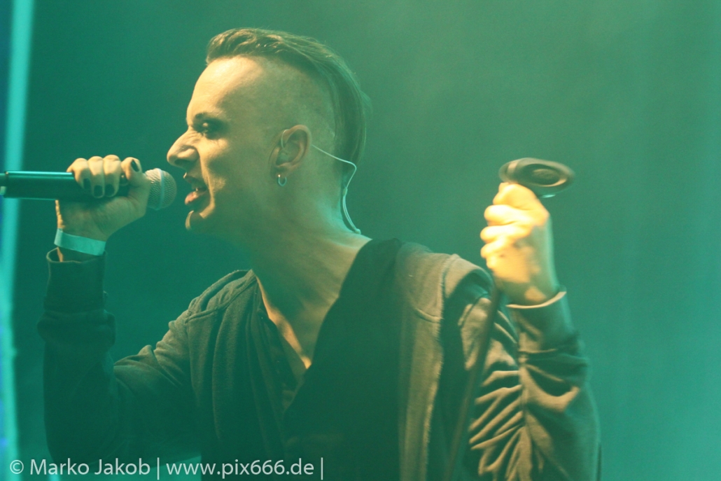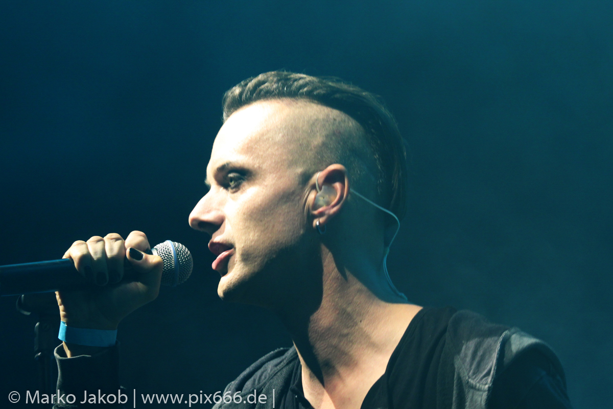 Die erste Band in der Rattenfängerhalle, der mit Abstand größten Location, waren Funker Vogt. Die Band wurde 1995 gegründet und hat bereits über 10 Alben veröffentlicht. 2016 gab es einen Wechsel am Mikrofon. Funker Vogt gaben bekannt, dass Chris L. von der Band Agonoize der neue Frontmann sein wird. Das aktuelle Album trägt den Namen ‚Wastelands‘. Die große Halle war ziemlich gut gefüllt. Chris L. hatte das Hamelner Publikum gut im Griff und brachte einen Teil der Menge zum Tanzen.