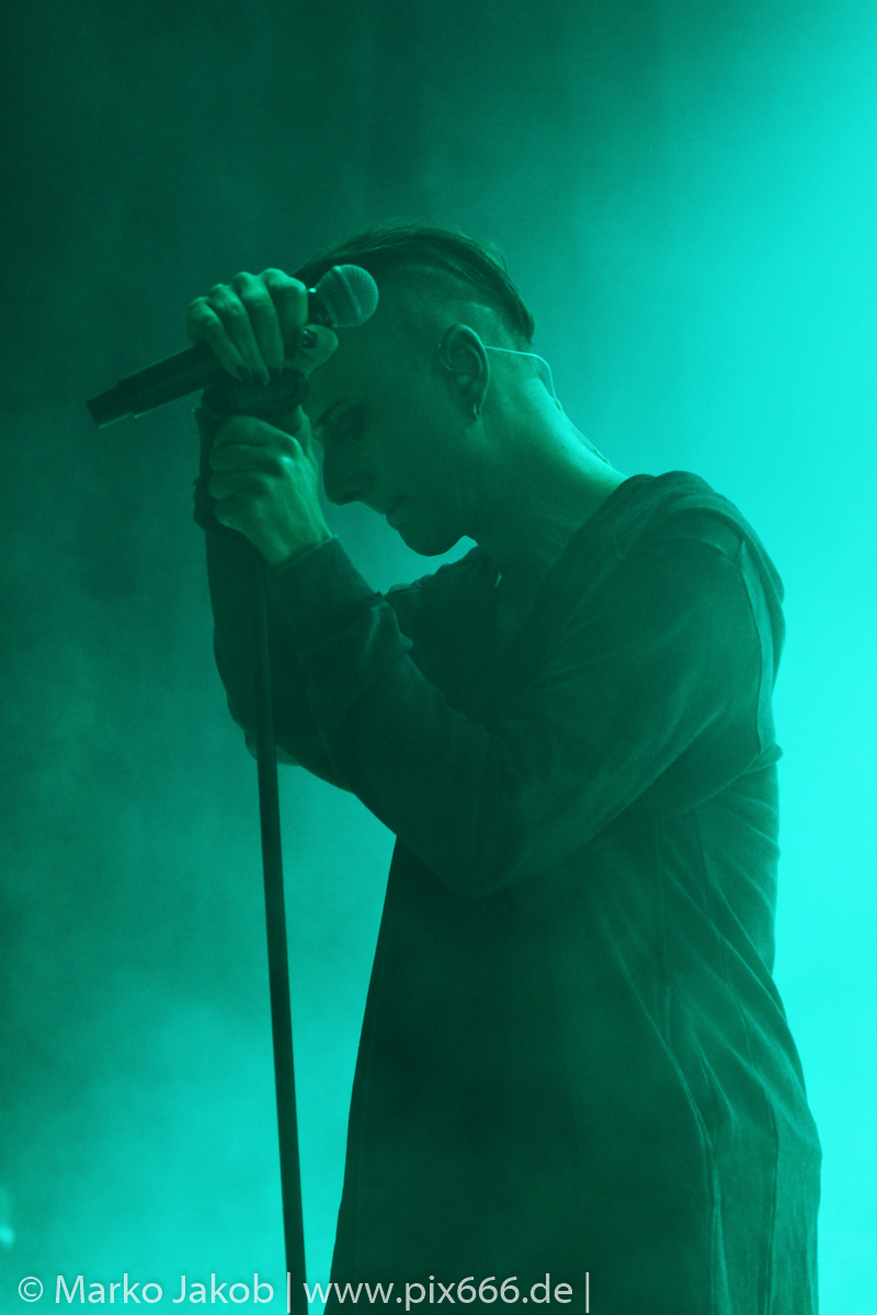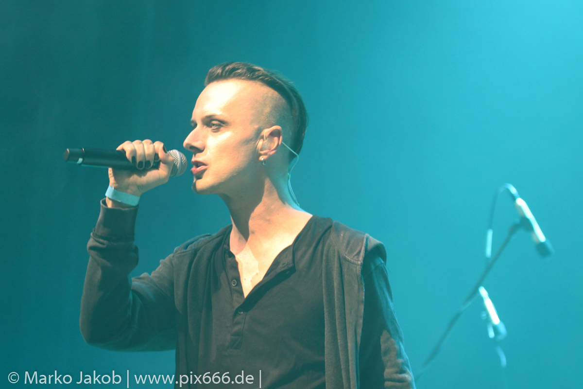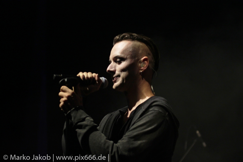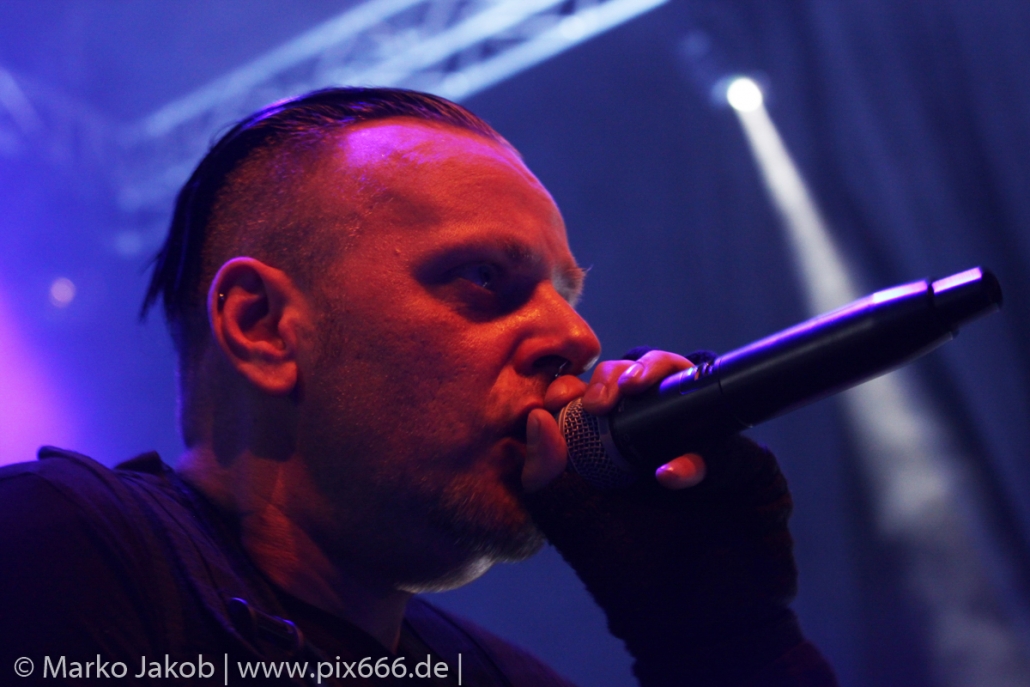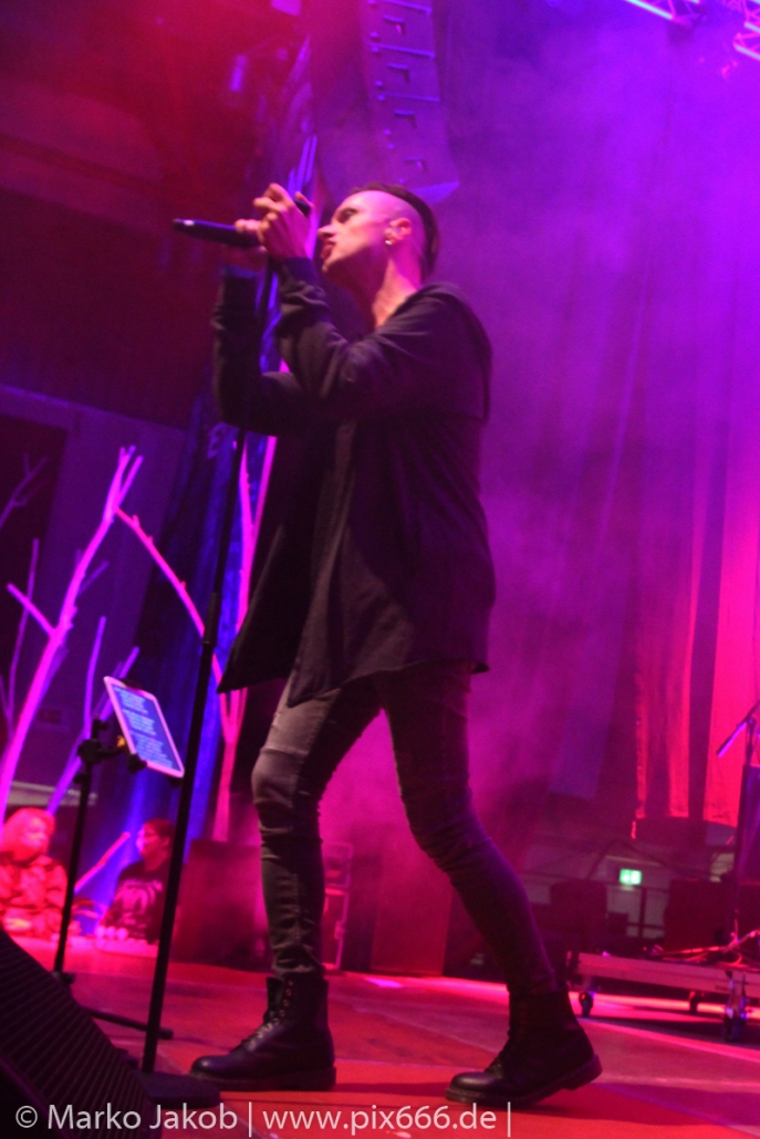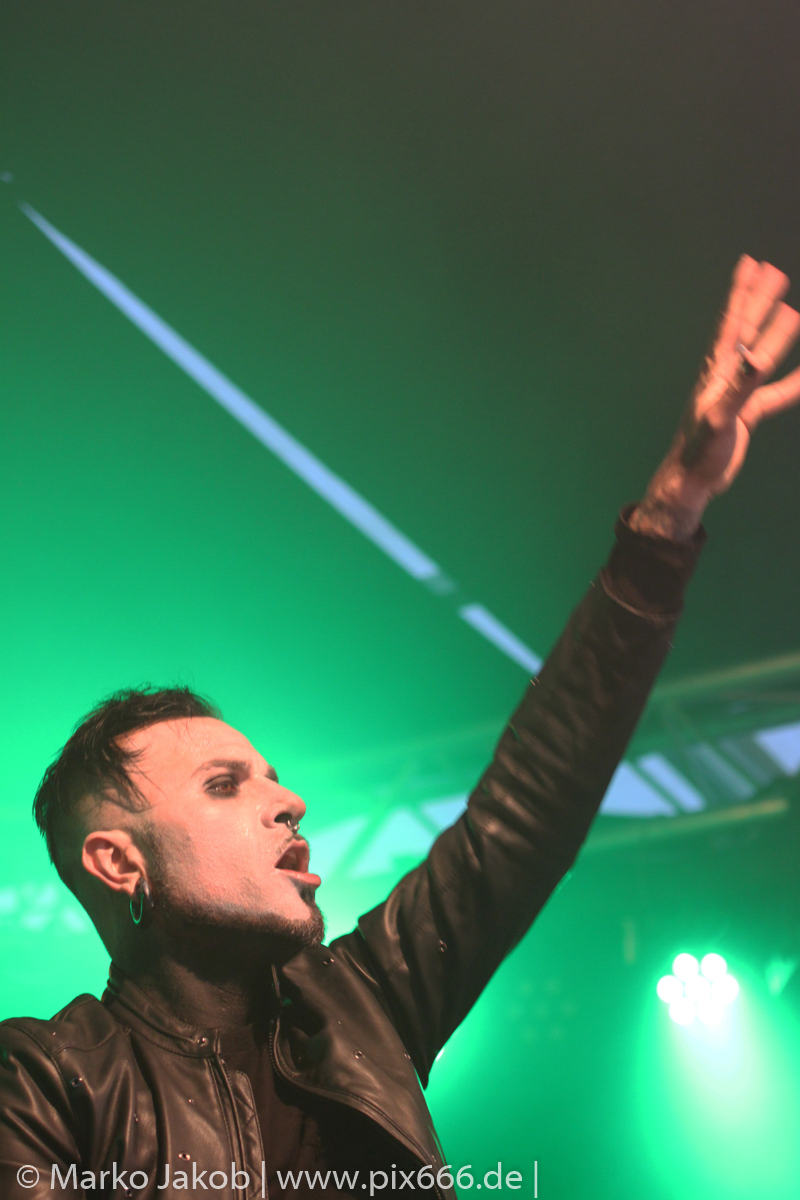 Die erste Band in der Rattenfängerhalle, der mit Abstand größten Location, waren Funker Vogt. Die Band wurde 1995 gegründet und hat bereits über 10 Alben veröffentlicht. 2016 gab es einen Wechsel am Mikrofon. Funker Vogt gaben bekannt, dass Chris L. von der Band Agonoize der neue Frontmann sein wird. Das aktuelle Album trägt den Namen ‚Wastelands‘. Die große Halle war ziemlich gut gefüllt. Chris L. hatte das Hamelner Publikum gut im Griff und brachte einen Teil der Menge zum Tanzen.