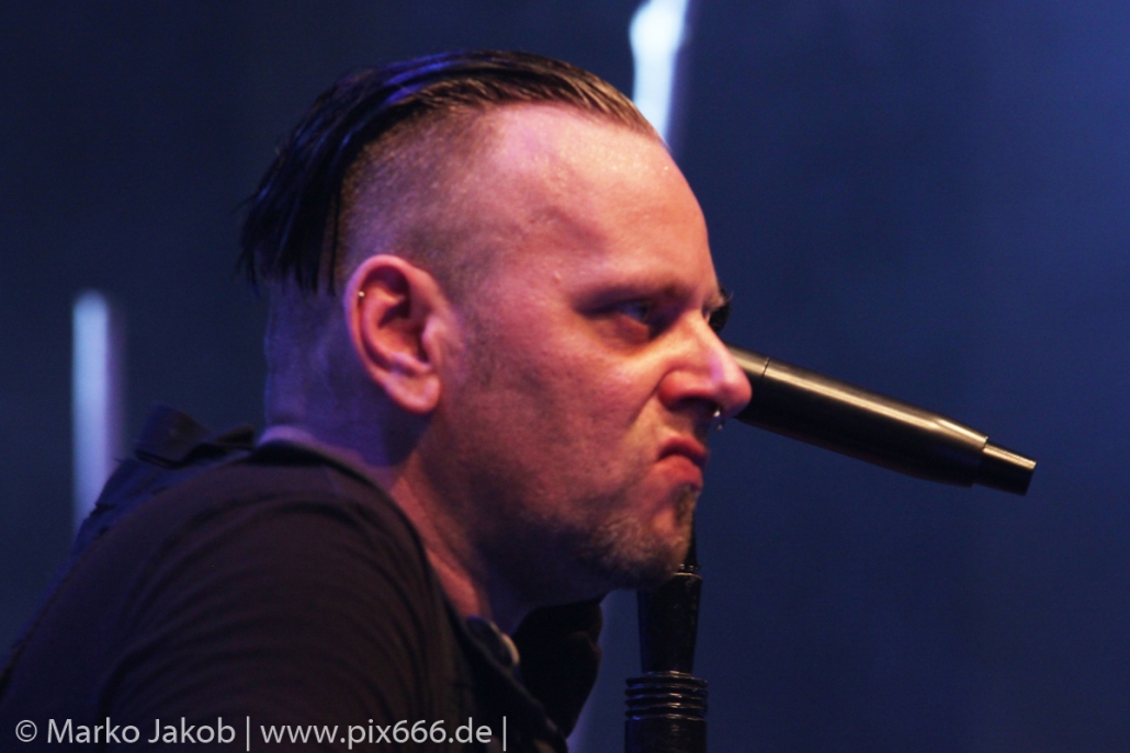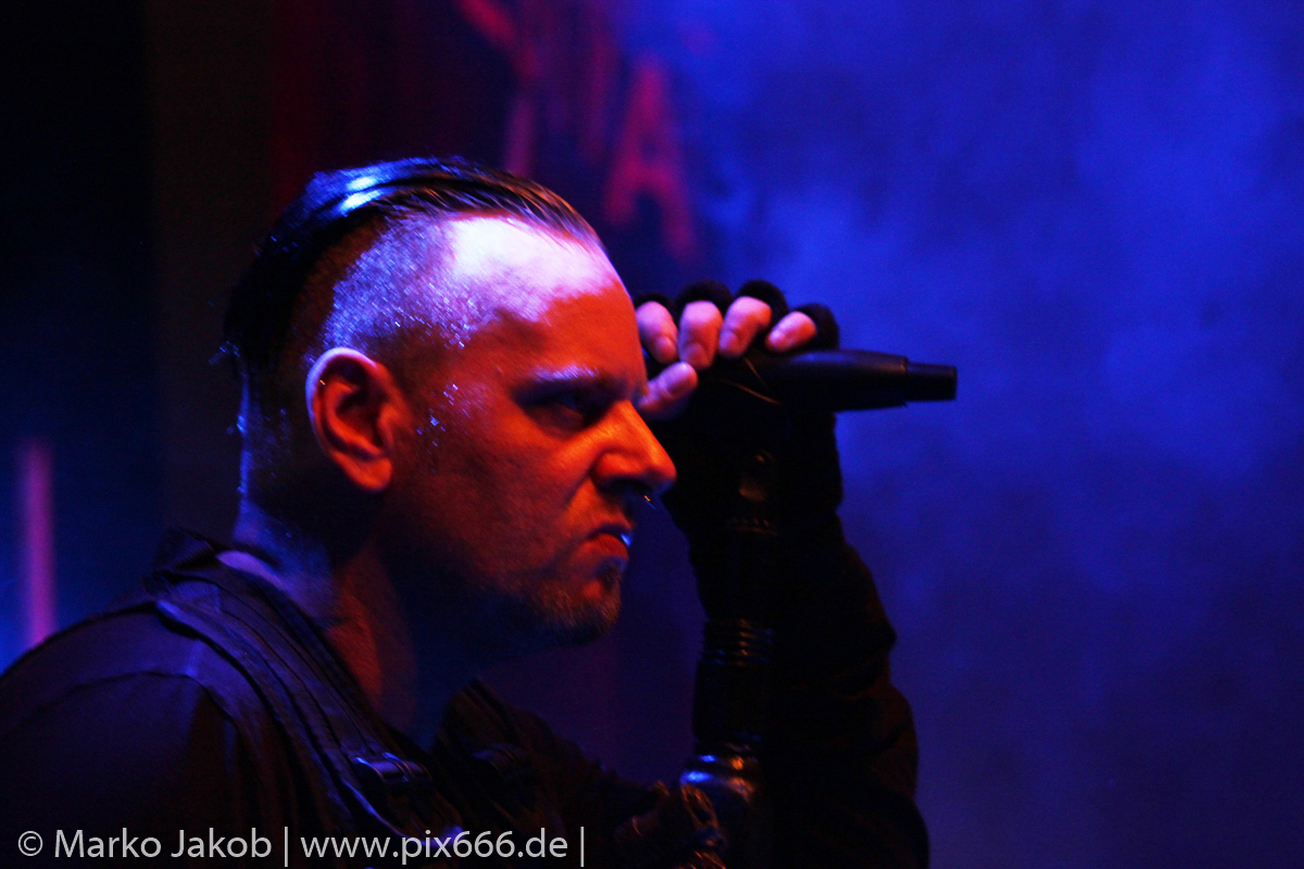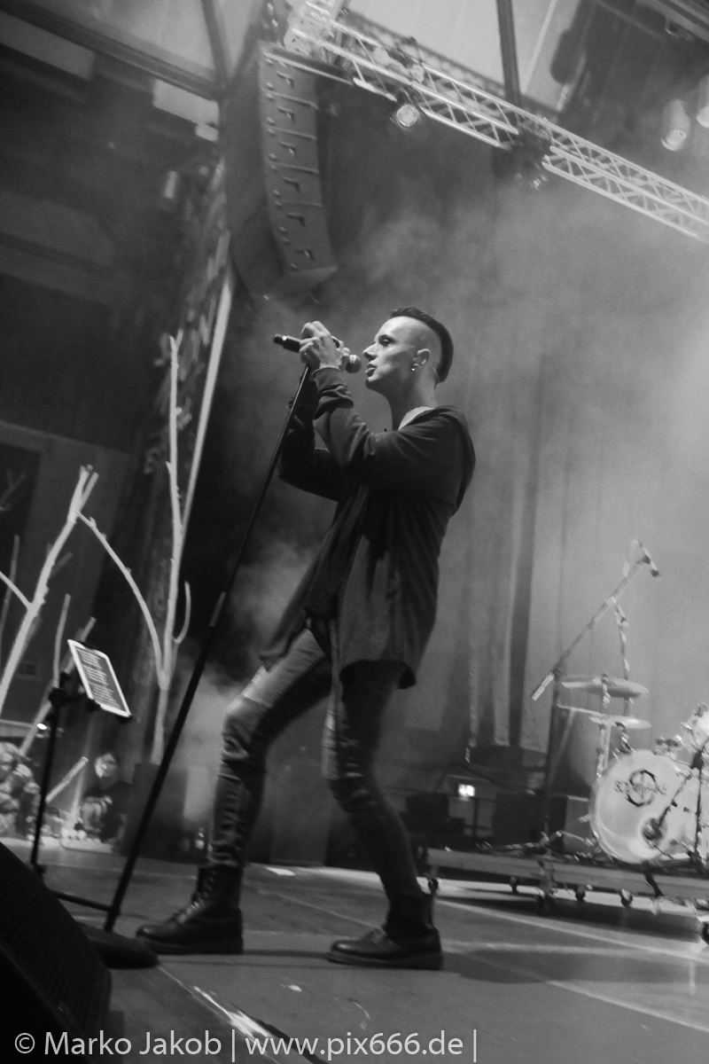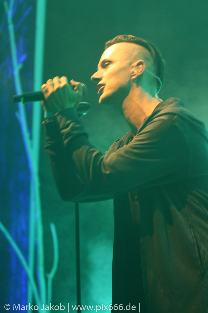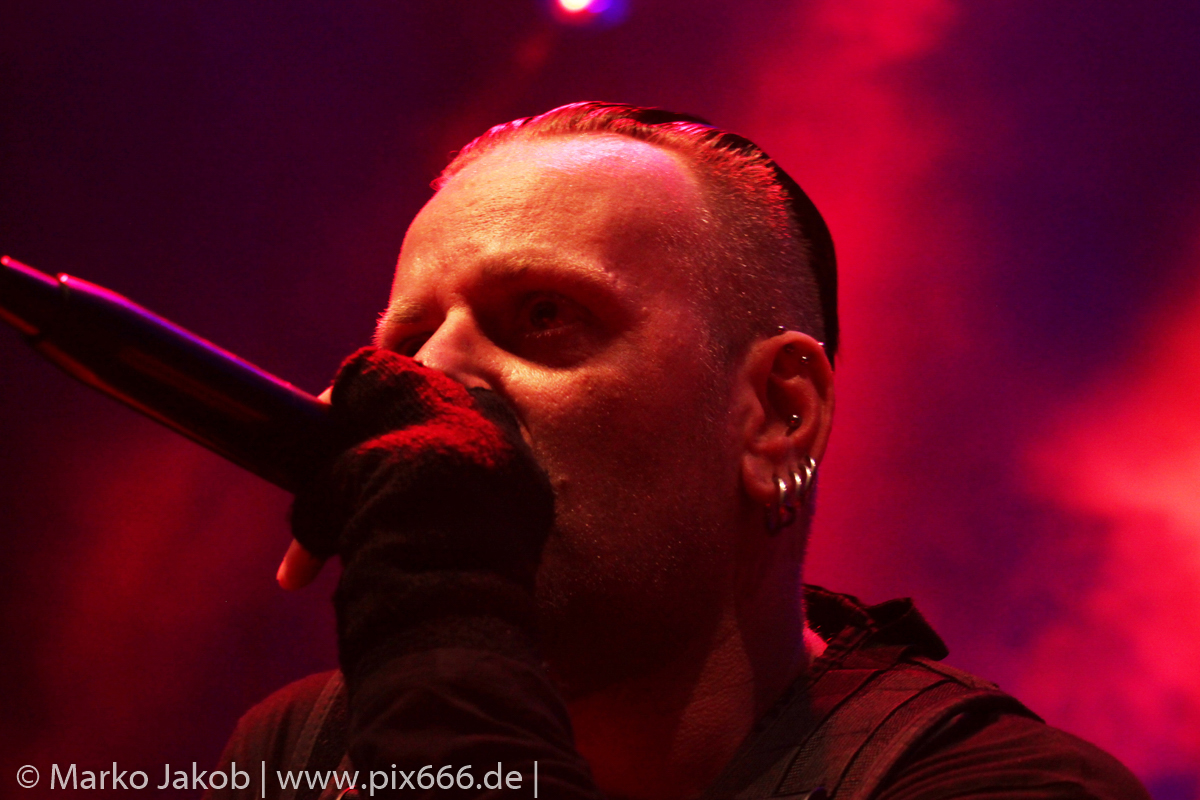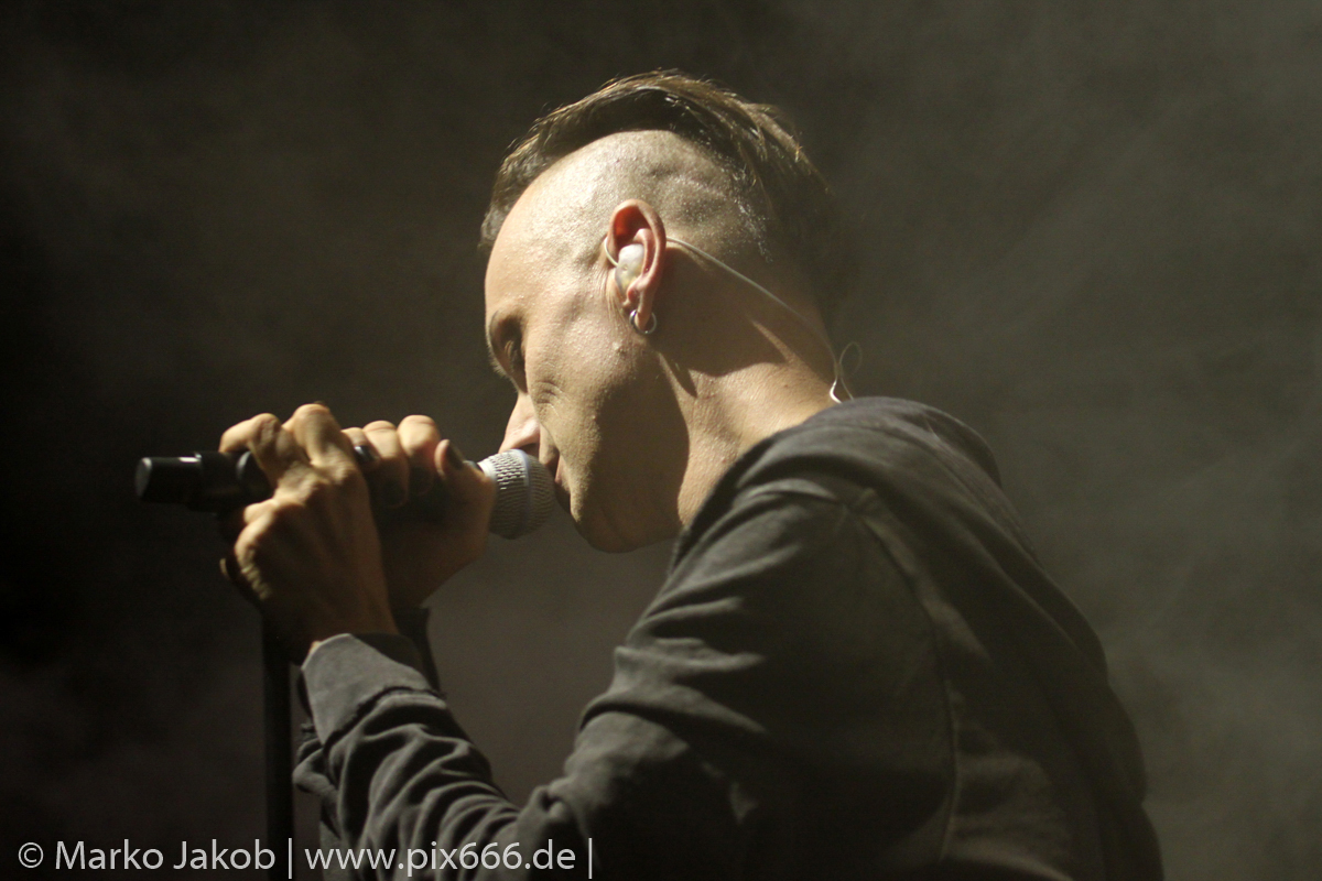 Die erste Band in der Rattenfängerhalle, der mit Abstand größten Location, waren Funker Vogt. Die Band wurde 1995 gegründet und hat bereits über 10 Alben veröffentlicht. 2016 gab es einen Wechsel am Mikrofon. Funker Vogt gaben bekannt, dass Chris L. von der Band Agonoize der neue Frontmann sein wird. Das aktuelle Album trägt den Namen ‚Wastelands‘. Die große Halle war ziemlich gut gefüllt. Chris L. hatte das Hamelner Publikum gut im Griff und brachte einen Teil der Menge zum Tanzen.