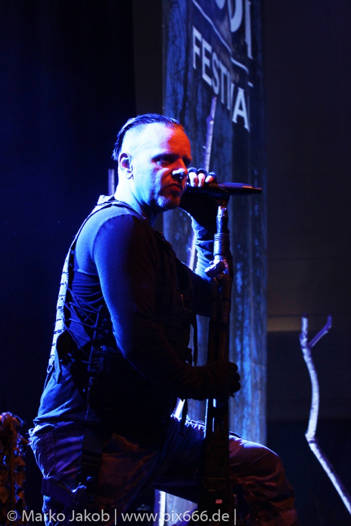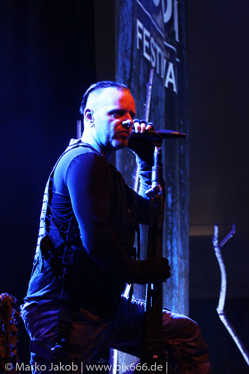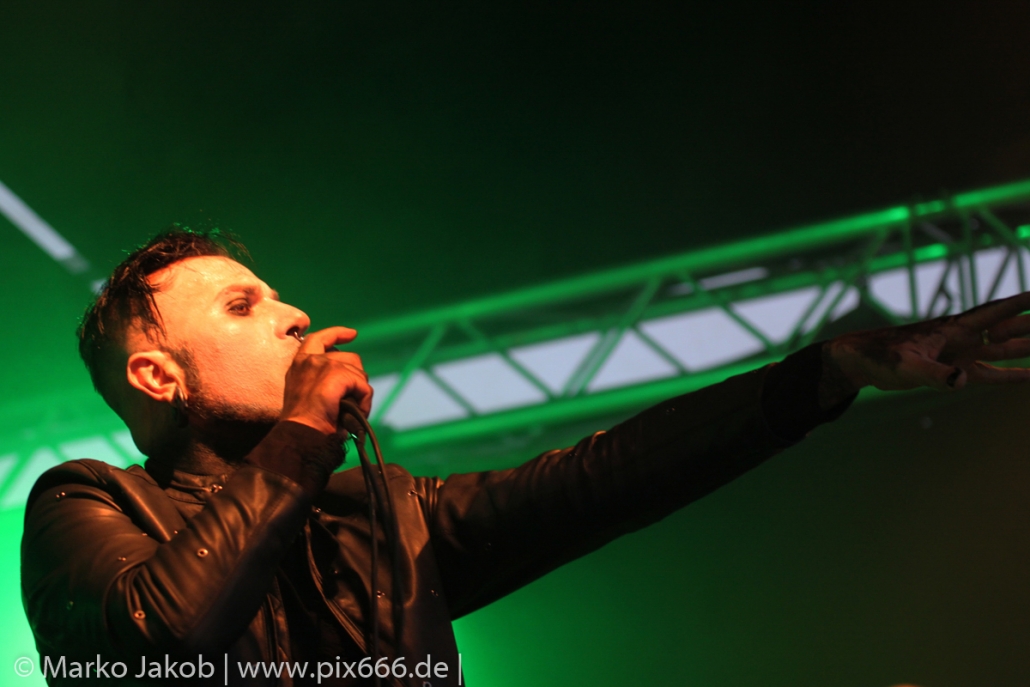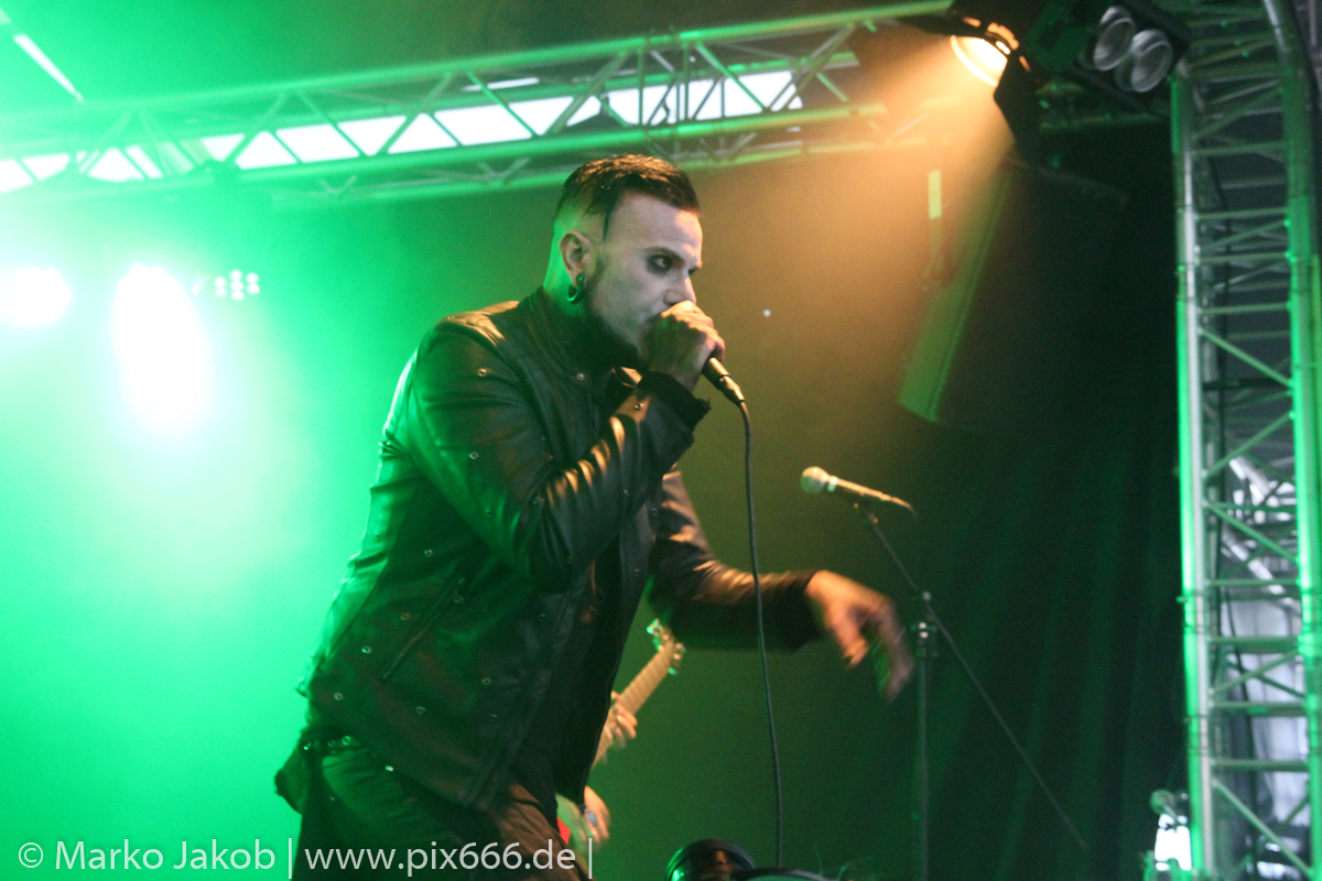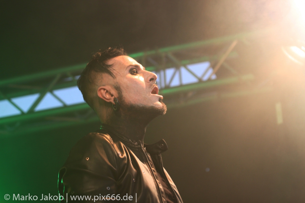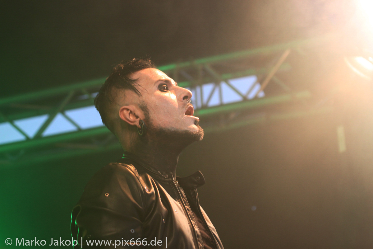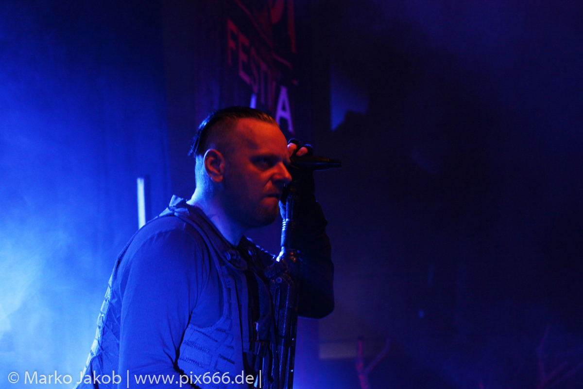 Als nächstes war die spanische Industrial-Alternative Band TerroloKaust an der Reihe. Seit 12 Jahren ist die Band auf den bekannten Szenefestivals unterwegs und hat sich bereits mit Bands wie Fields Of The Nephilim, Hocico und Aestetic Perfection die Bühne geteilt. Das aktuelle Album der Band heisst ‚Dissensions‘. Das Konzert in der Moon Stage begann mit einem Intro und dem Titel ‚Pointless‘ vom Album ‚Spit The Poison Out‘ aus dem Jahr 2013. Die Band spielte auch Songs von den anderen Alben, wie zum Beispiel, The Pain Of Knowing‘ von der CD ‚God Loves The Violence‘ und den Titeltrack ‚Dissensions‘ vom aktuellen Longplayer. Die Stimmung war sehr gut und man hatte das Gefühl, die 50 Minuten sind wie im Flug vergangen.