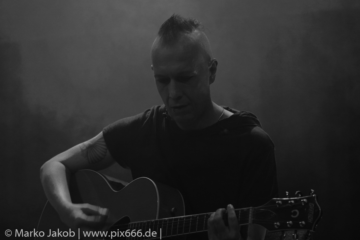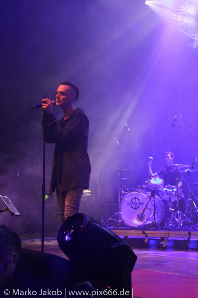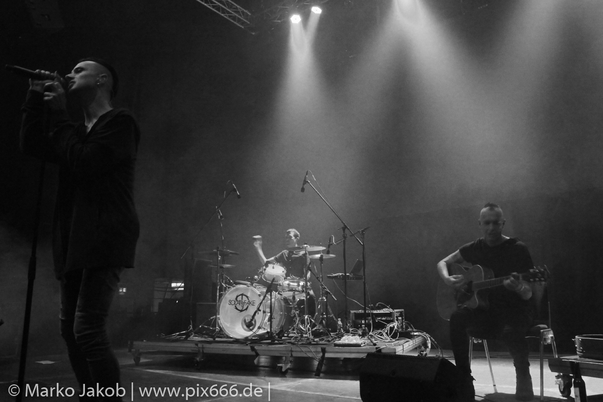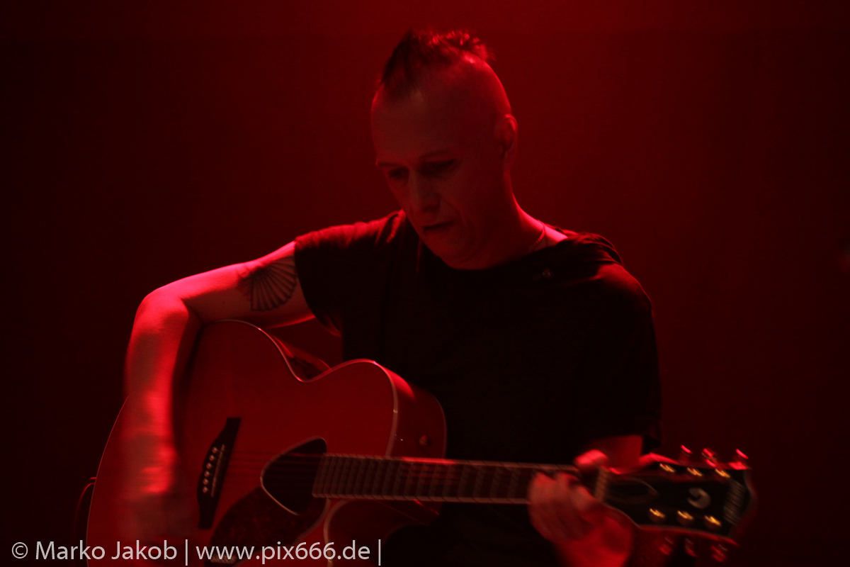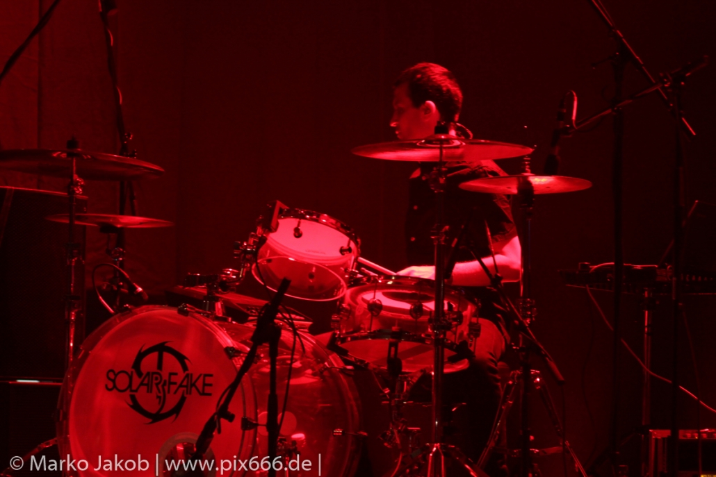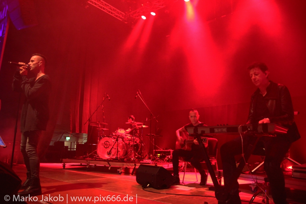 Die Fanschar der Band Solar Fake wächst und wächst. Vor kurzem erschien das fünfe Studioalbum von Solar Fake, es trägt den Titel ‚You Win – Who Cares?‘. Die Band wurde 2007 vom Dreadful Shadows und Zeraphine Sänger Sven Friedrich gegründet und nimmt aktuell den größten Part im musikalischen Schaffen des sympathischen Berliners ein. Wie die Anzahl der Fans wächst auch die Zahl der Bandmitglieder. Neben dem inzwischen fest als Live-Drummer in die Band integrierten Jens war heute ein weiterer Musiker als Gast mit auf der Bühne – Dirk Riegner, der Pianist von Peter Heppner. Er unterstütze die Anderen bei den acoustic Versionen von 4 Songs, mit denen das Konzert begann. Das ist schon ziemlich ungewöhnlich und überraschend, einen Festivalauftritt mit Acousticsongs zu beginnen. Drei brandneue Songs und das total schöne ältere Stück ‚Until It’s Over‘ wurden für das Acoustic Set ausgewählt. Danach ging es dann im gewohnten Tempo weiter und die Stimmung nahm bei ‚All The Things You Say‘ sofort Fahrt auf. Auch die neuen Singles ‚Sick Of You‘ und ‚The Pain That Kills You Too‘ fehlten nicht. Der am Ende sehr stimmungsvolle Auftritt hat natürlich extrem Lust auf die von Januar bis März 2019 stattfindende Tour gemacht.