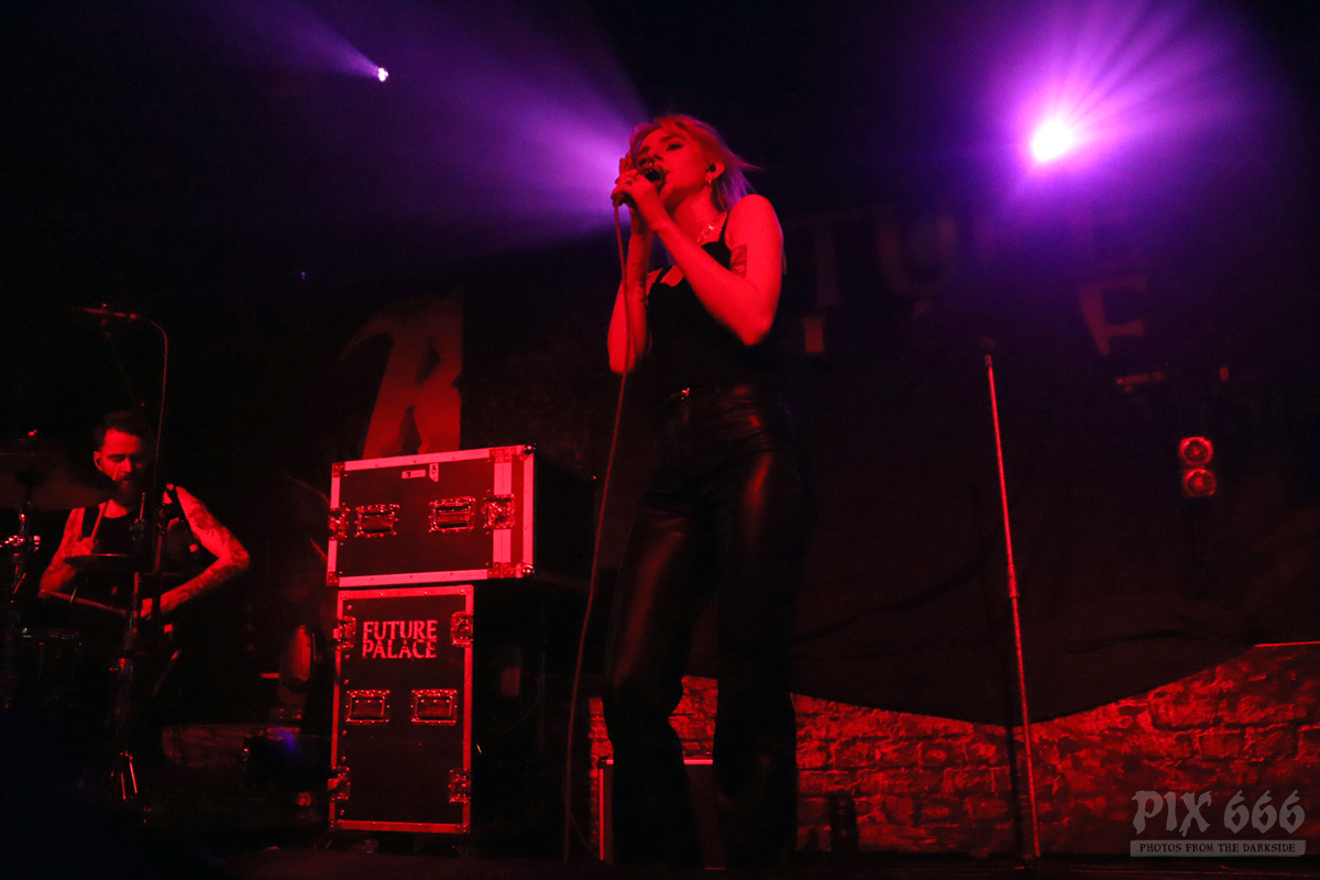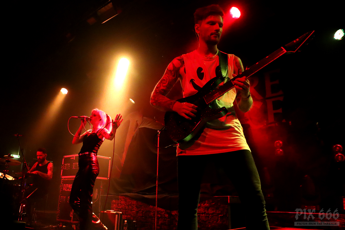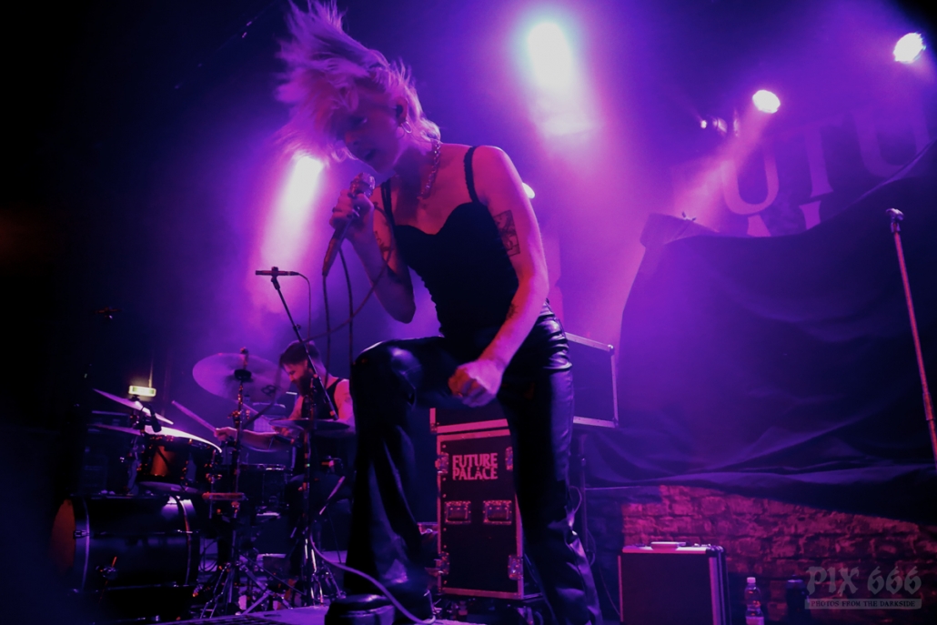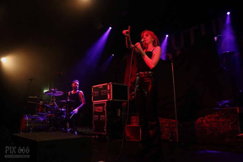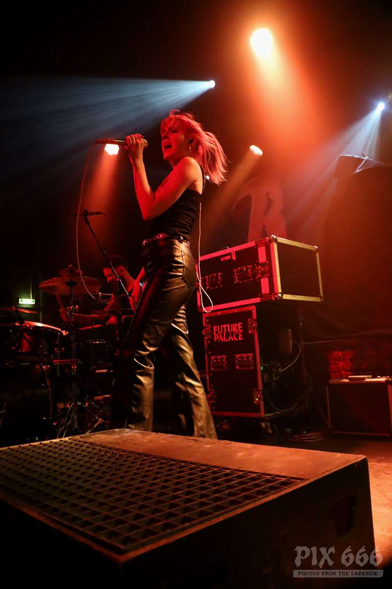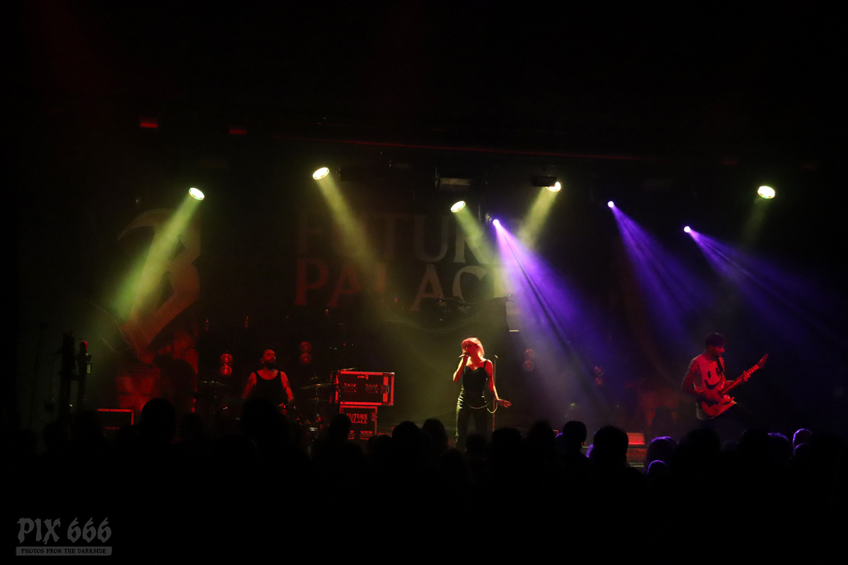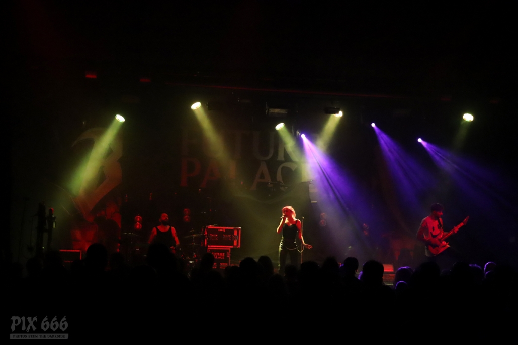 Pünktlich um 20.00 Uhr ging es los mit Future Palace. „Wir sind in diesem Jahr schon zum zweiten Mal in Wien – aber dieses Mal ist es viel größer“ sagte Sängerin Maria. Die Band hatte im Mai im kleinen Flex Café den Abend für Annisokay eröffnet. „Wir stimmen euch auf Battle Beast ein, das wird cool. Der Song ‚Flames‘ ist schon Mal gut zur Einstimmung“.