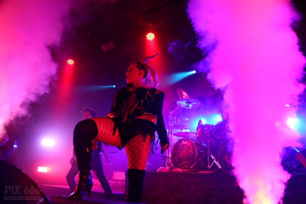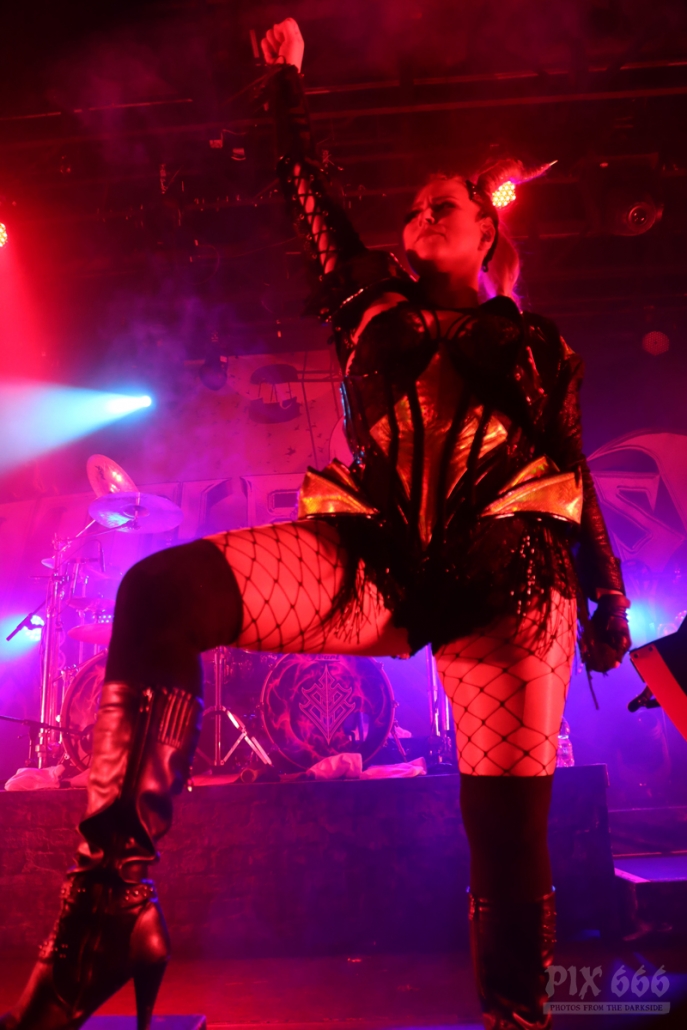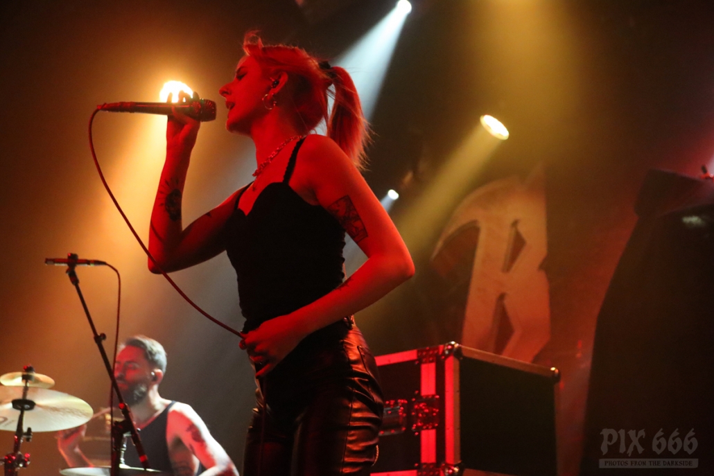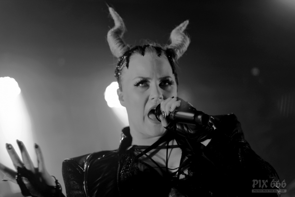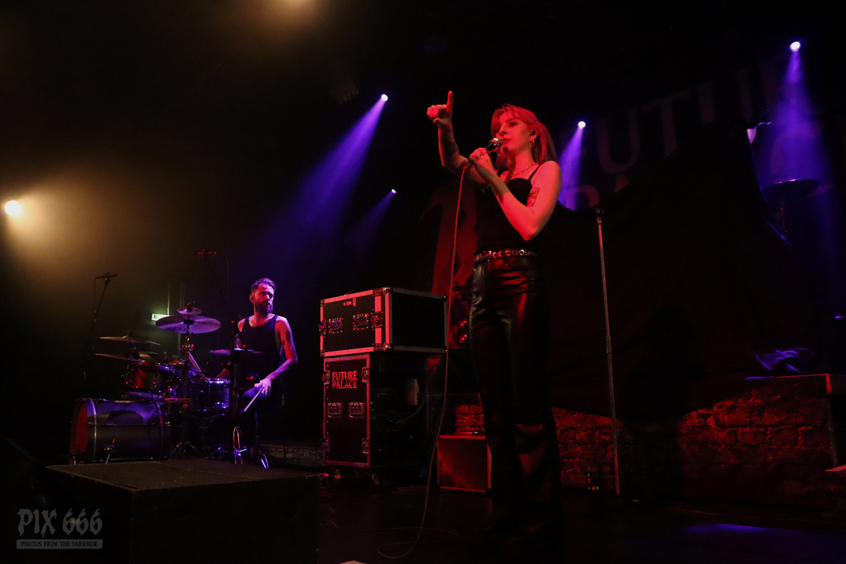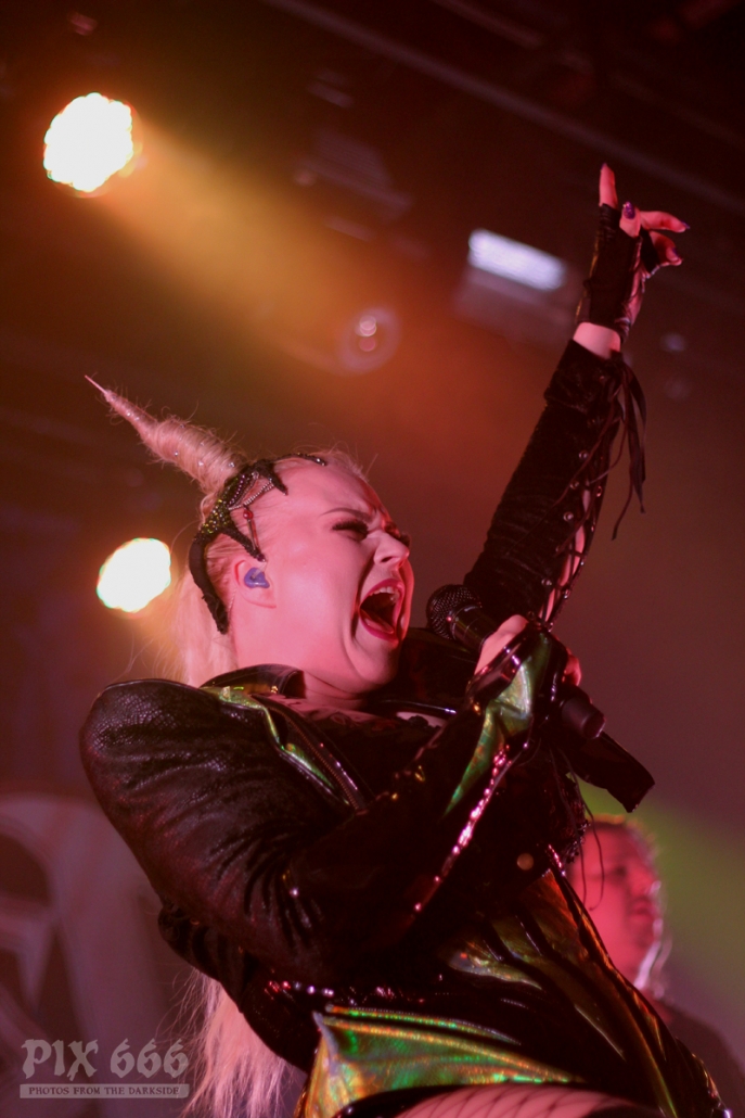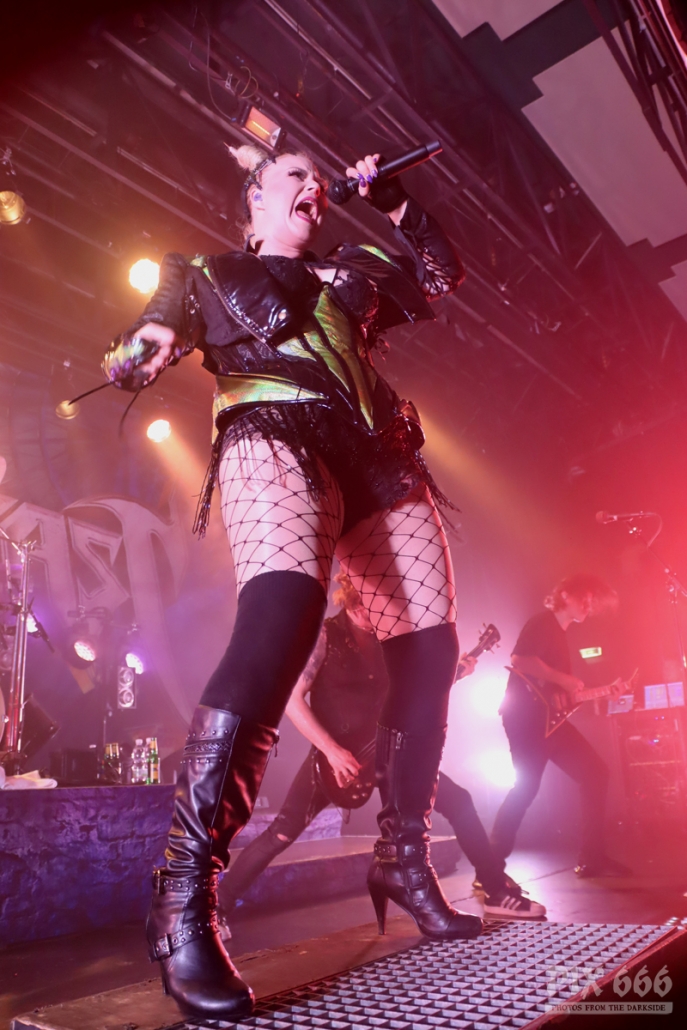 Pünktlich um 20.00 Uhr ging es los mit Future Palace. „Wir sind in diesem Jahr schon zum zweiten Mal in Wien – aber dieses Mal ist es viel größer“ sagte Sängerin Maria. Die Band hatte im Mai im kleinen Flex Café den Abend für Annisokay eröffnet. „Wir stimmen euch auf Battle Beast ein, das wird cool. Der Song ‚Flames‘ ist schon Mal gut zur Einstimmung“.