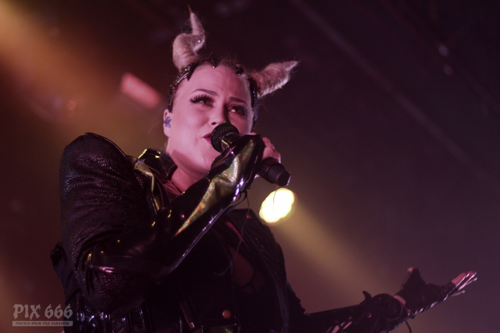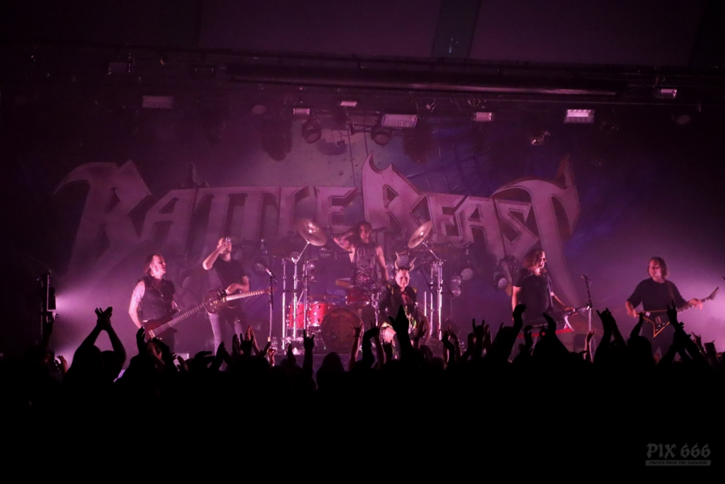 Um 21.15 Uhr ging’s dann auch schon weiter mit dem Headliner. Die sechs Musiker von Battle Beast waren von Beginn an voll gut drauf und lieferten eine perfekte Show ab. Sie begannen ihren Auftritt mit dem Titeltrack des aktuellen Albums ‚Circus Of Doom‘.