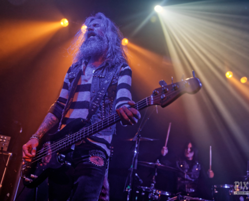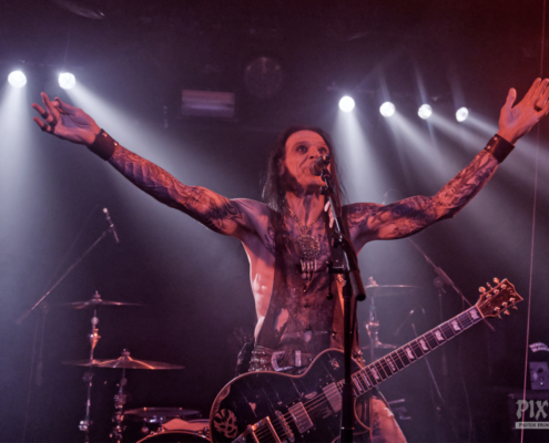 Die Liveshows von Beasto Blanco sind nicht einfach Konzerte – sie sind ein audiovisuelles Gesamterlebnis: laut, wild und voller Herzblut. Beasto Blanco verstehen es wie kaum eine andere Band, Musik, Wahnsinn und Chaos zu einer kraftvollen Einheit zu verschmelzen. Und genau so war es heute Abend in der kleinen Halle der Arena Wien. Vom ersten bis zum letzten Ton herrschte Hochspannung – die kleine, intime Veranstaltungsstätte bot genau jenen rohen, unmittelbaren Rahmen, in dem die Band ihre energiegeladene Mischung aus Hard Rock, Industrial und theatralischen Einlagen perfekt entfalten konnte. Als die Lichter schließlich erloschen und die ersten dröhnenden Gitarrenriffs die Menge erfassten, brandete Jubel auf. Der Opener des Abends war eine ganz besondere Nummer, geschrieben und produziert vom Lord Of The Lost Sänger Chris Harms. Das Stück ‚Run For Your Life‘ hat alles, was ein starker Song braucht – Tempo, eine einprägsame Melodie und dennoch düster genug, um die Stimmung einer Beasto Blanco Show zum Ausdruck zu bringen. Somit war gleich zu Beginn der Grundstein für super Stimmung und einen perfekten Musikabend gelegt. Frontmann Chuck Garric zeigte sich in Bestform – mit seiner markanten Stimme und dem charismatischen Auftreten trieb er die Menge an, während Calico Cooper die Show mit ihrer unverwechselbaren Performance veredelte: expressiv und geheimnisvoll zog die Alice Cooper Tochter das Publikum in ihren Bann. Zwischen den Songs zeigten sich Beasto Blanco publikumsnah, humorvoll und auch spürbar dankbar für die ausgelassene Stimmung. Die Fans wiederum feierten, sangen mit und ließen sich von der intensiven Lichtshow und den Showelementen mitreißen. Mit ‚Feed My Frankenstein‘ hatte die Band dann auch einen Alice Cooper Song im Programm. Die verschiedensten Showelemente und Accessoires sorgten immer wieder für Aha-Effekte – einer davon war auch, als sich Calico mit ihrer Beasto Blanco Flagge auf den Weg ins Publikum machte. Beasto Blanco sind eine fantastische und sympathische Band zum Anfassen. Auch nach der Show waren die Musiker ausgiebig für ihre Fans da. Alles in allem war das Konzert ein triumphaler, energiegeladener Auftritt, der zeigte, wie eindrucksvoll Beasto Blanco in einer kleinen, schwitzenden Venue wirken können. Die Band bot einmal mehr nicht nur ein Konzert, sondern ein kompromissloses Erlebnis, dass die Fans nicht so schnell vergessen werden. Und alle Musikfans, die den Abend zu Hause verbracht haben – ihr habt echt was verpasst. Packt Beasto Blanco demnächst unbedingt auf eure ‚to do‘ – Liste.