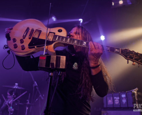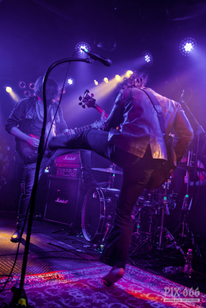In eine ganz andere musikalische Richtung ging es mit der nächsten Band. Inzwischen lag ein Duft von Räucherstäbchen in der Luft und das französische Trio Dätcha Mandala sorgte mit ihren flotten Songs weiterhin für super Stimmung. Die vor über 15 Jahren gegründete Band spielte eine Mischung aus Stoner- und Psychedelic Rock. Die kraftvolle Stimme von Nicolas kam richtig gut an. Der barfüßige Sänger schwang bei den schnellen Passagen immer wieder seine Beine in die Höhe und sagte dann: „Der nächste Song ist eine neue Nummer und heisst ‚You Make Me Feel‘“. Dafür nahm Nicolas ein kleines Heft vom Boden auf und verlas seine Ansage in deutscher Sprache – das war echt witzig und kam beim Publikum gut an. Nun lockte er die Fans näher zur Bühne und Dätcha Mandala präsentierten einen weiteren brandneuen Song, der im Dezember erscheinen wird.