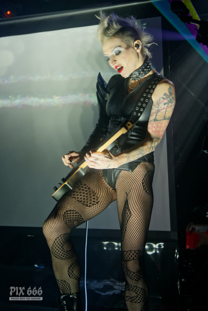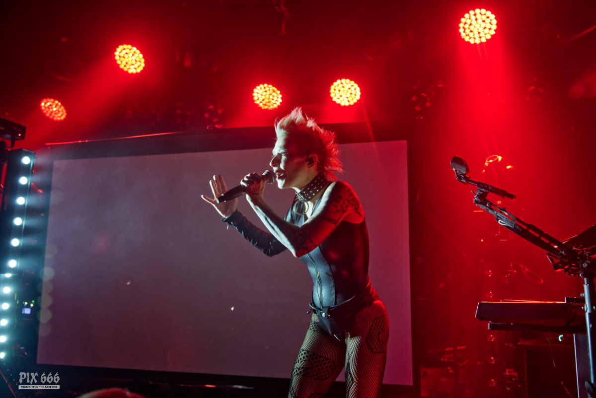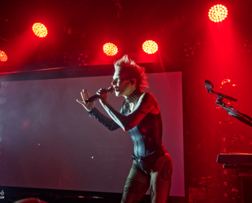 Ania Tarnowska alias I Ya Toyah eröffnete den musikalischen Abend in der Arena. Die ‚One Woman Army‘ lieferte eine total coole Show ab. Die Musikerin startete mit dem Song ‚I am the Fire‘ von ihrem aktuellen Album ‚Drama‘. I Ya Toyah spielte heute Abend ihre allererste Show in Wien und hat das Publikum absolut begeistert. Immer wieder wechselte die von der Gitarre zum Keyboard und zurück. Spätestens beim flotten Song ‚Denial‘ war dann richtig Stimmung im Raum. Das Publikum war rundum zufrieden und applaudierte lautstark. Einer der Höhepunkte der Show war das fantastische Depeche Mode Cover ‚It’s No Good‘ – tanzende Fans waren damit quasi vorprogrammiert. Zum Abschluss gab es dann noch den inzwischen über 1 Million mal auf YouTube gestreamten Song ‚Panic Room‘. I Ya Toyah bot eine abwechslungsreiche und sehenswerte Show, die irgendwo zwischen Industrial, Electro-Punk und harten Synthwave lag. Sie verabschiedete sich mit den Worten ‚Ich liebe Euch‘ von den Fans.