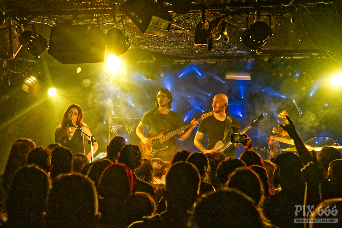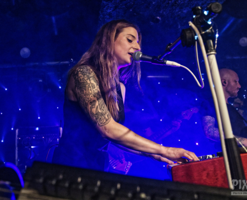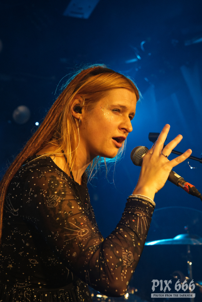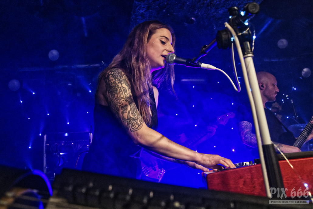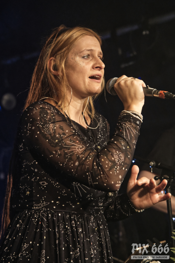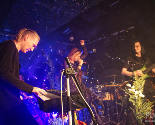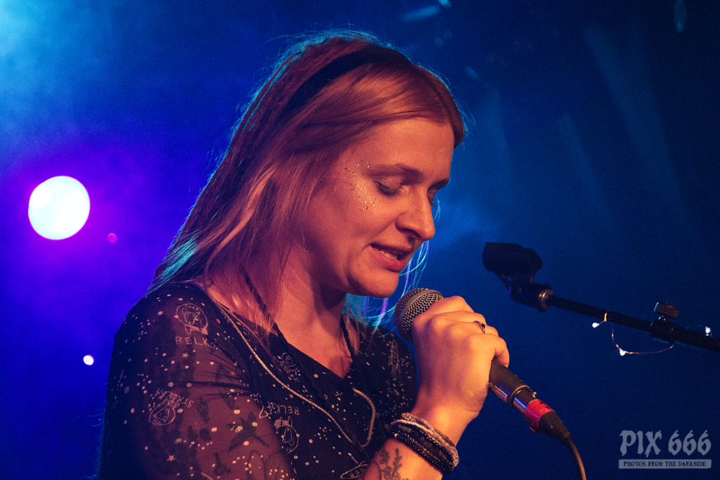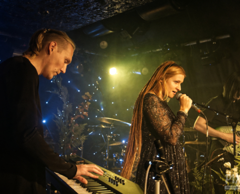 Nach etwa 25 Minuten Pause betraten dann pünktlich um 21.15 Uhr Cellar Darling die Bühne. Die Folk Rock Band aus der Schweiz arbeitet gerade an ihrem dritten Album. Die Show startete mit der letzten Veröffentlichung von Cellar Darling, der Single ‚Dance‘ aus dem Jahr 2021. Anna sagte, sie spricht nicht so sehr gern während der Konzerte, aber jetzt muss sie kurz was sagen. Grund dafür war, dass das Keyboard streikte, aber mit Hilfe ihrer Jungs war nach wenigen Augenblicken alles wieder fixiert. Während der Ansage kamen Zwischenrufe aus dem Publikum, Anna solle doch bitte englisch sprechen, damit jeder verstehen kann, was sie zu sagen hatte. Tatsächlich war das Publikum im Viper Room bunt gemischt, neben Einheimischen waren auch Fans aus Ungarn, Tschechien, Slowenien und Italien angereist.