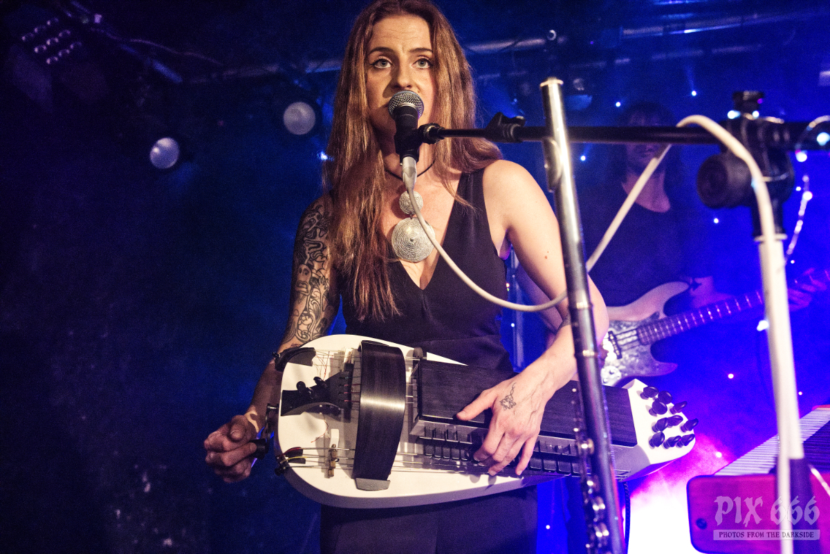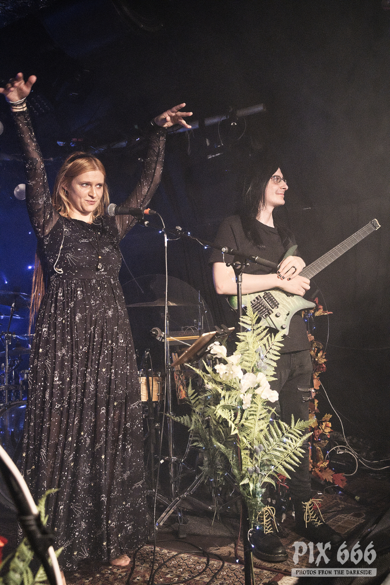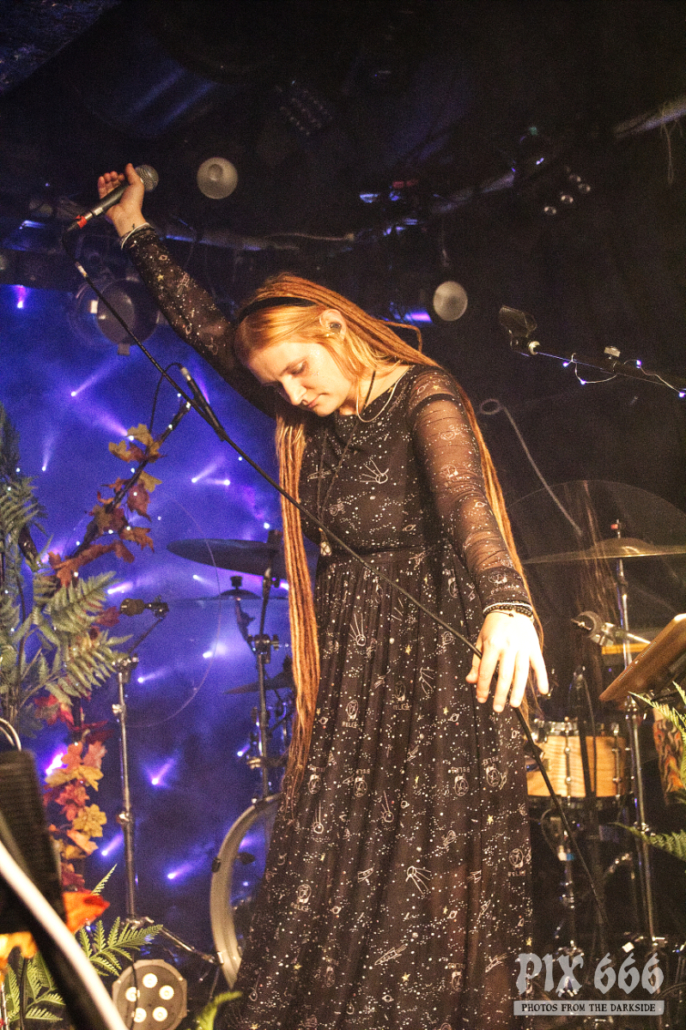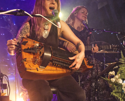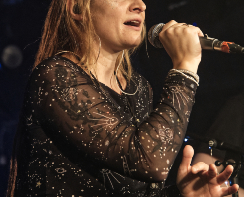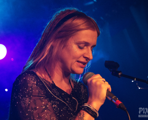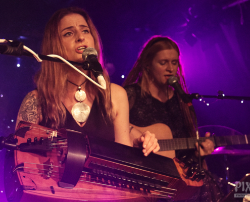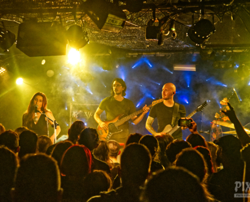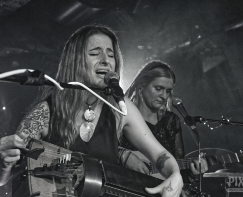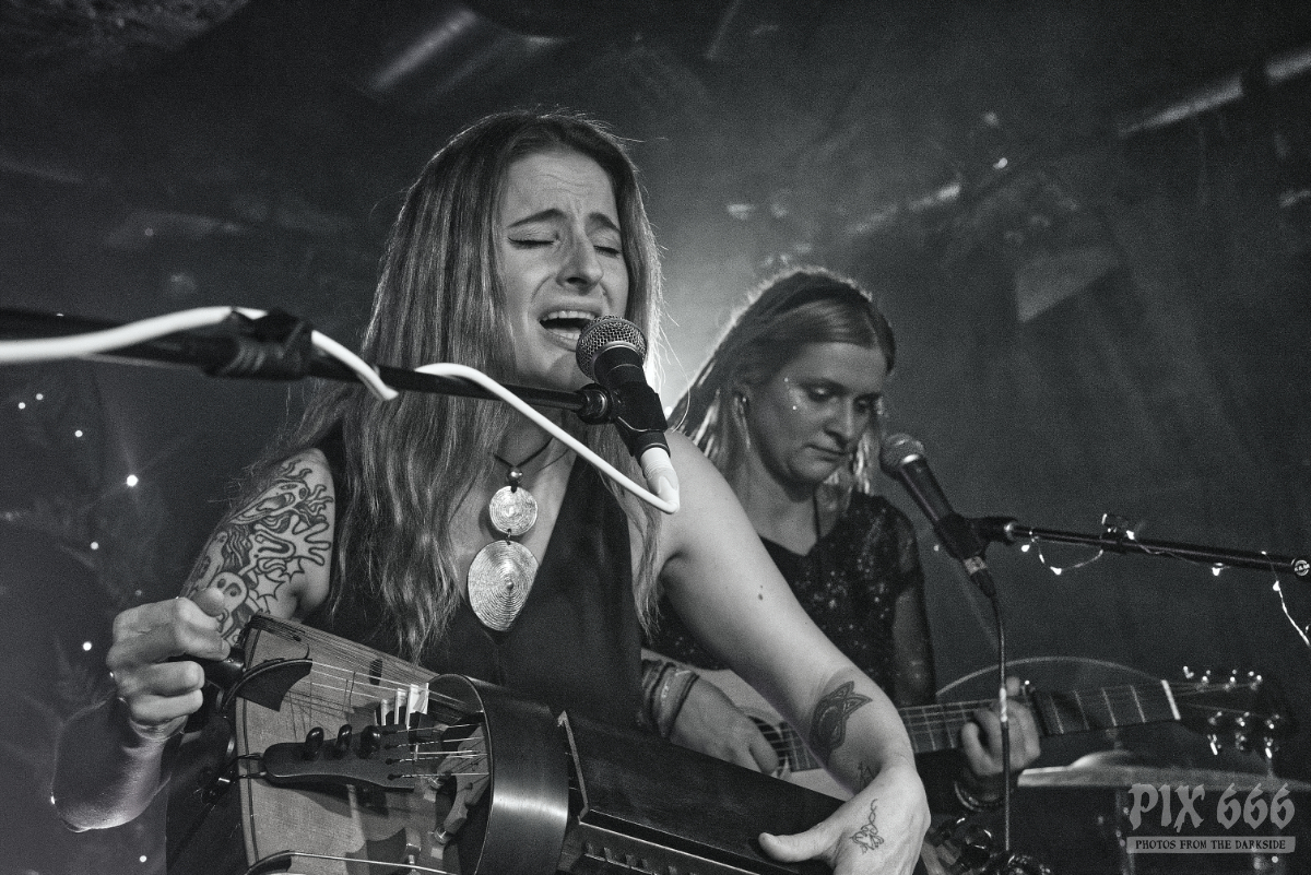 Nach etwa 25 Minuten Pause betraten dann pünktlich um 21.15 Uhr Cellar Darling die Bühne. Die Folk Rock Band aus der Schweiz arbeitet gerade an ihrem dritten Album. Die Show startete mit der letzten Veröffentlichung von Cellar Darling, der Single ‚Dance‘ aus dem Jahr 2021. Anna sagte, sie spricht nicht so sehr gern während der Konzerte, aber jetzt muss sie kurz was sagen. Grund dafür war, dass das Keyboard streikte, aber mit Hilfe ihrer Jungs war nach wenigen Augenblicken alles wieder fixiert. Während der Ansage kamen Zwischenrufe aus dem Publikum, Anna solle doch bitte englisch sprechen, damit jeder verstehen kann, was sie zu sagen hatte. Tatsächlich war das Publikum im Viper Room bunt gemischt, neben Einheimischen waren auch Fans aus Ungarn, Tschechien, Slowenien und Italien angereist.