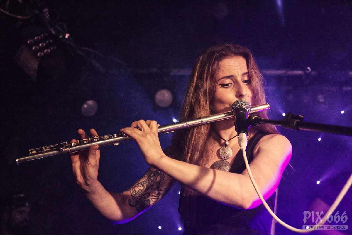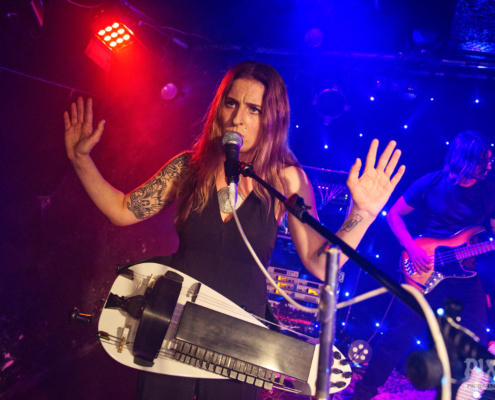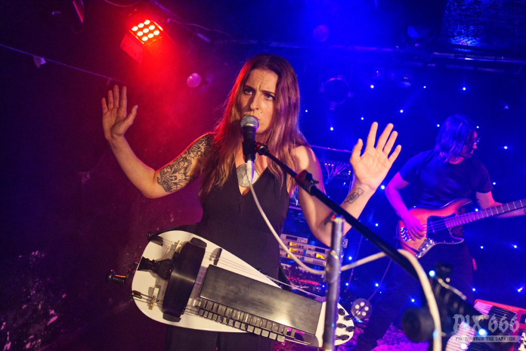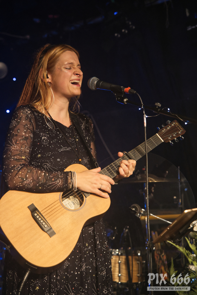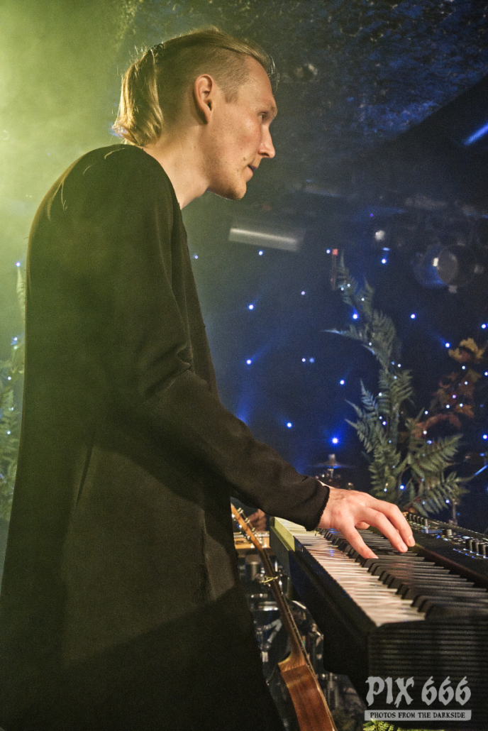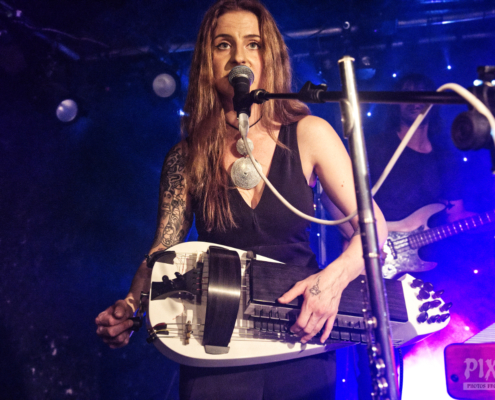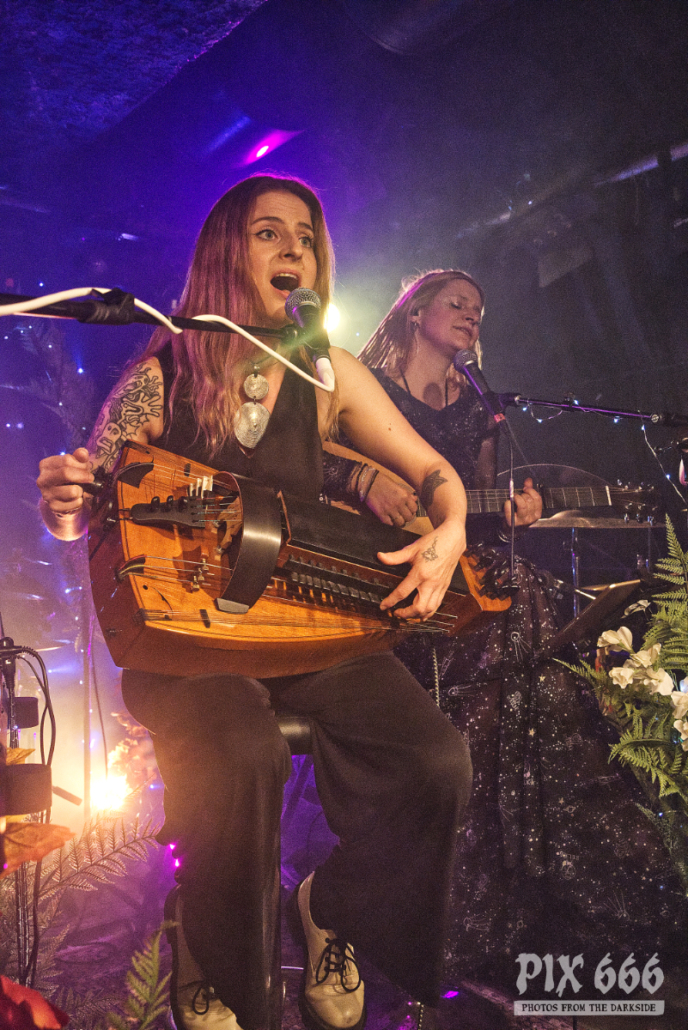 Nach etwa 25 Minuten Pause betraten dann pünktlich um 21.15 Uhr Cellar Darling die Bühne. Die Folk Rock Band aus der Schweiz arbeitet gerade an ihrem dritten Album. Die Show startete mit der letzten Veröffentlichung von Cellar Darling, der Single ‚Dance‘ aus dem Jahr 2021. Anna sagte, sie spricht nicht so sehr gern während der Konzerte, aber jetzt muss sie kurz was sagen. Grund dafür war, dass das Keyboard streikte, aber mit Hilfe ihrer Jungs war nach wenigen Augenblicken alles wieder fixiert. Während der Ansage kamen Zwischenrufe aus dem Publikum, Anna solle doch bitte englisch sprechen, damit jeder verstehen kann, was sie zu sagen hatte. Tatsächlich war das Publikum im Viper Room bunt gemischt, neben Einheimischen waren auch Fans aus Ungarn, Tschechien, Slowenien und Italien angereist.