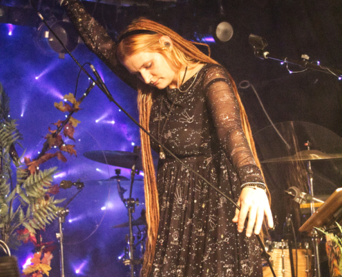 Die Europatour trug den Titel ‚An autumn evening with …Cellar Darling, Iamthemorning und Maer‘ – dementsprechend fein und liebevoll war auch die Bühne dekoriert. Die Instrumente und Mikrofonständer waren gesäumt von Zweigen und herbstlichen Blättern. Die Lichterkette an der Rückseite wirkte wie ein Sternenhimmel. Das sah echt total schön und gemütlich aus.