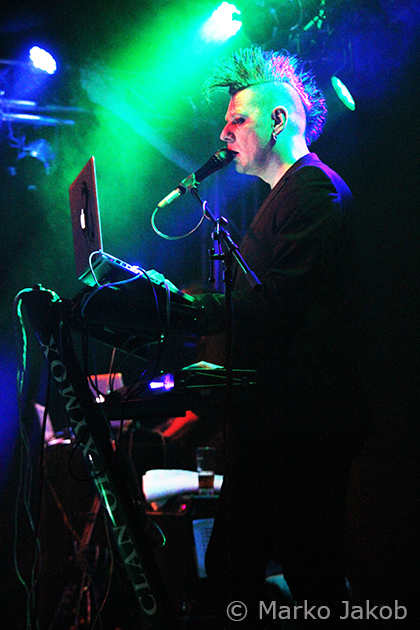 As an opener bands usually do not have an easy task. But this evening, most of the Berlin audience already appeared in good spirits at the beginning of the event. The club was well filled, which created a good mood right from the start. SHADE OF SHAMBLES convinced them further with a cross genre mix of Wave and Electronic. Of course that appealed to a large part of the audience. The great years of experience of the band is very clear – they have played in numerous clubs, and of course at the well-known Wave Gotik Treffen. Especially striking and eye-catching were the stage outfits. Unlike most concert visitors, the entire band was dressed in white. A great start to a long concert evening.