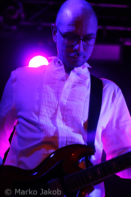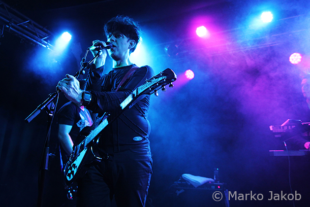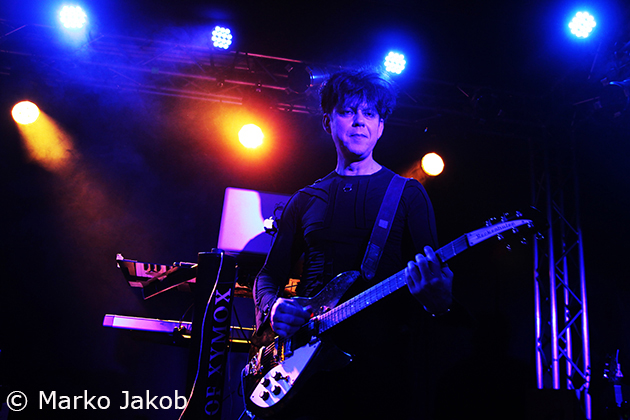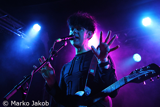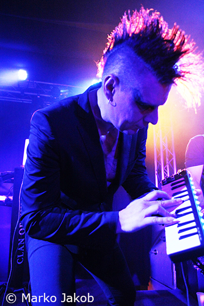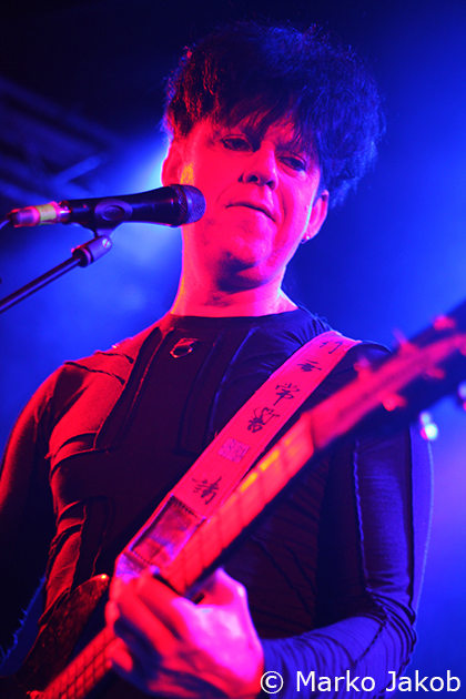 As headliner of the evening, shortly after 10 pm CLAN OF XYMOX entered the stage and were welcomed with much applause. The Berlin Frannz Club was now almost completely full and the New Wave party could begin. The band presented a wonderful mix of old, well-known songs and the songs from the current album ‘Days Of Black’. Due to their absolutely friendly way the ice with the audience was broken from the beginning. Singer Ronny Moorings communicated with the audience several times during the concert, which made it even more entertaining. The proximity to the audience – there were no barriers – reinforced this absolutely cool concert feeling even more. The band did not shy away from audience contact, so some fans were able to touch the musicians during the concert, even the bass and guitar.