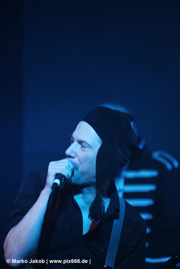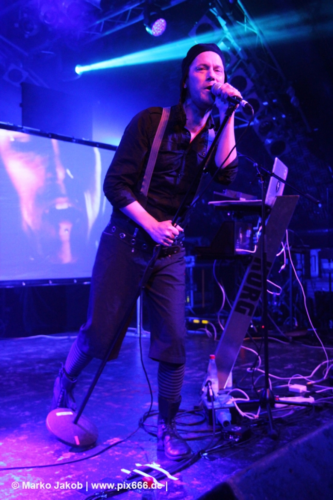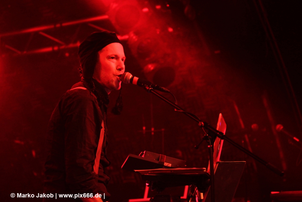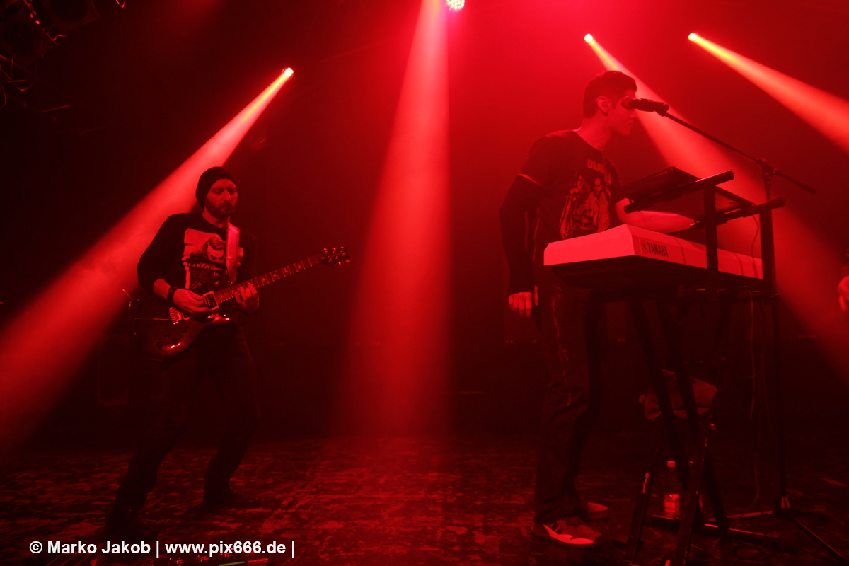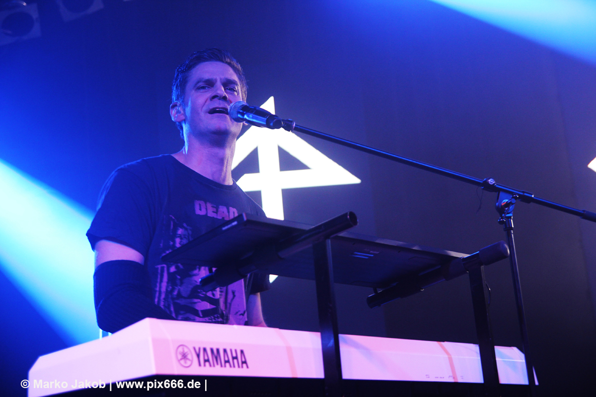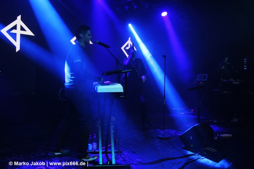 Sänger Dennis, der natürlich seine markante Mütze trug, sagte, dass seine Band zum gefühlt 400. Mal in Hamburg spielt. Auf die Frage „Geht’s euch gut“? folgte großer Jubel vom Publikum. Sowohl in der Mitte der Halle, als auch den erhöhten Stufen an den Seiten und Hinten bewegen sich sehr viele gleich von Beginn an. Der coole Electro Sound mit den dezenten Gitarrenriffs von Haydee Sparks lud ganz einfach zum Tanzen ein. Bei manchen Songs war der Gitarreneinsatz auch Mal etwas heavier. Bei ‚Set Me Free‘ wurde dann an der passenden Stelle heftig mitgeklatscht. Als nächstes kam dann ‚Morpheus‘ aus dem Jahre 2012. Die EP zu diesem Song gibt es auch in einer Vinylversion. Leider kam der Frauengesang heute nur vom Band. Dann gab es eine Zeitreise ins Jahr 2000.