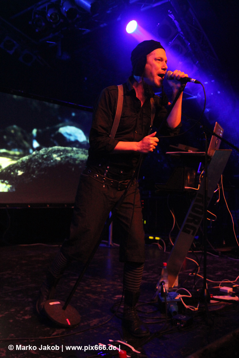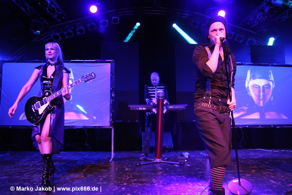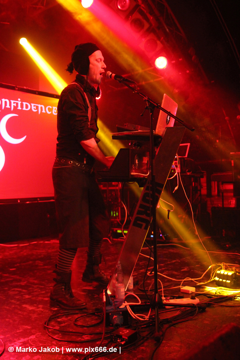 Um etwa 19.50 Uhr betrat die Band die Bühne. In Strict Confidence waren zu dritt in Hamburg. Ihre Performance wurde durch zwei Videowände optisch gut untermalt. Das Konzert begann mit dem Song ‚My Despair‘ aus dem Jahr 2009. Der Sound war toll und die Markthalle schon ganz gut gefüllt.