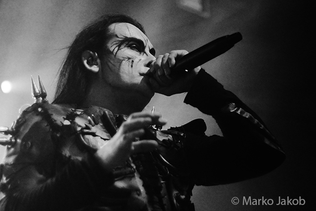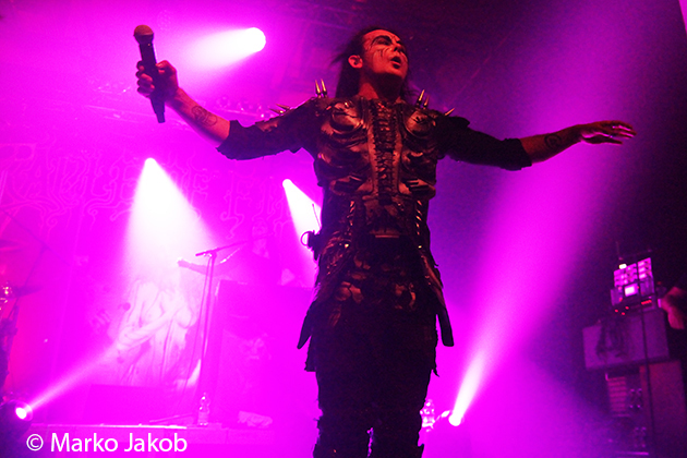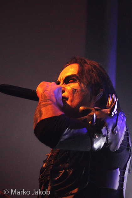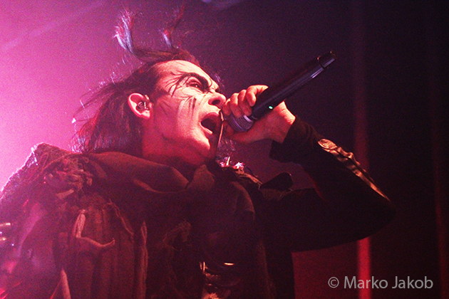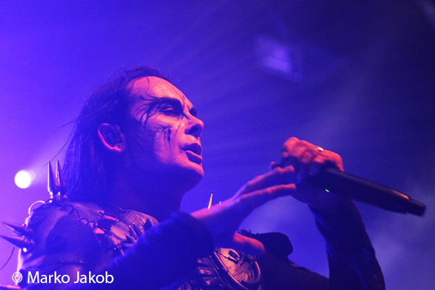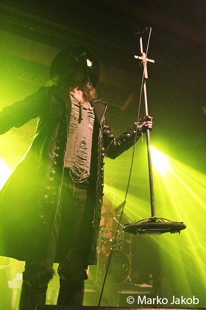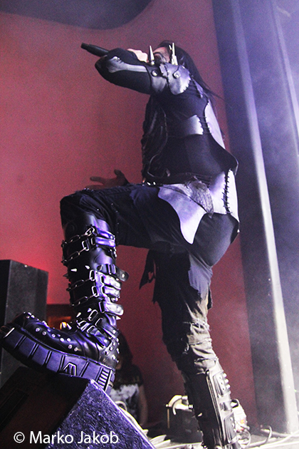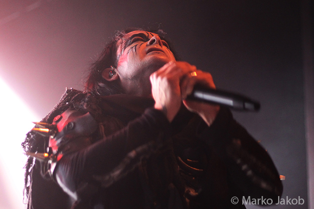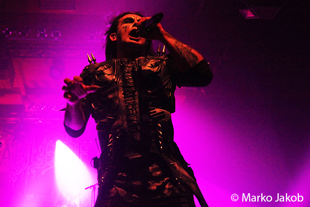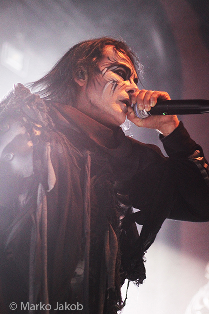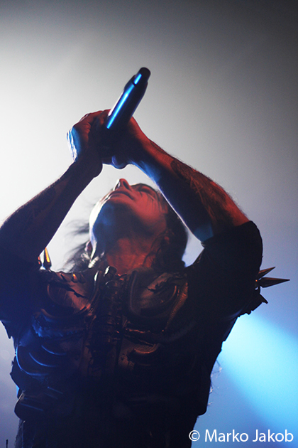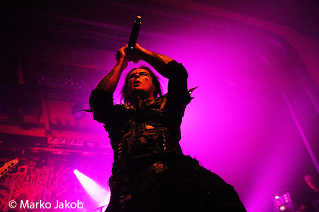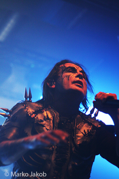 At 9.30 pm the stage was ready for CRADLE OF FILTH. A beautiful, large painted backdrop adorned the stage and for drummer Martin, an acrylic glass “cage” awaited. With the very fast song ‘Gilded Cunt’ it was right down to business from the beginning. As always with singer Dani, he appeared in a stunning and impressive outfit with giant gothic-metal boots and a jacket with huge killer rivets. A perfect outfit for this kind of music and completely fitting for the action on the stage. With maniacal head-banging guitarists and a wild running and jumping singer, the stage was actually a bit small for the 6 musicians. After an hour, the band said a premature goodbye to the Berlin audience. But with very loud “hey hey hey” calls from almost the whole crowd, the audience deserved and received an encore – and a very long one.