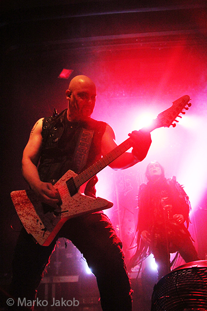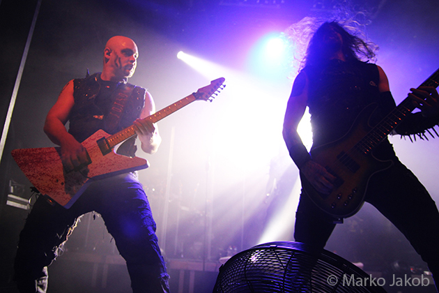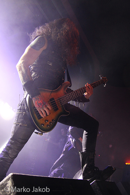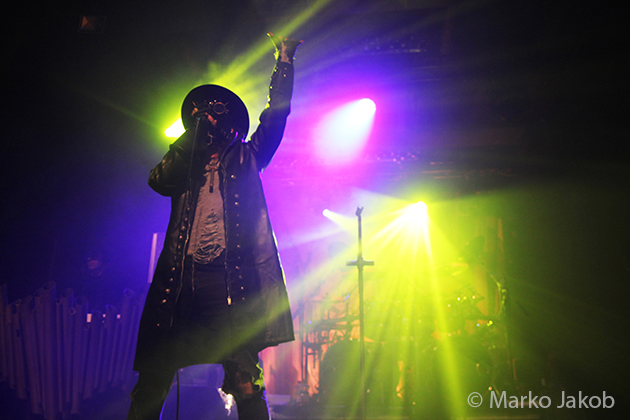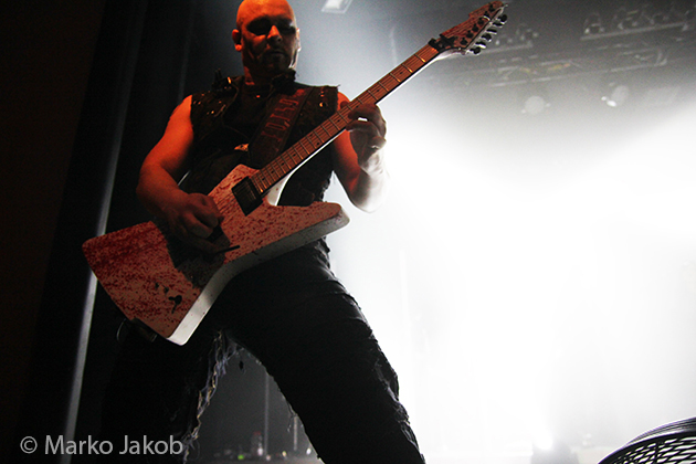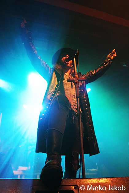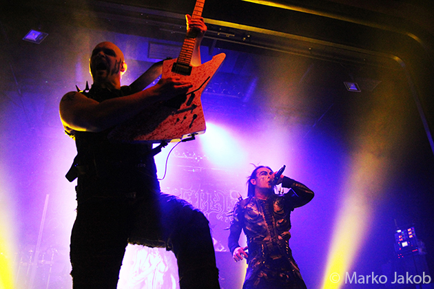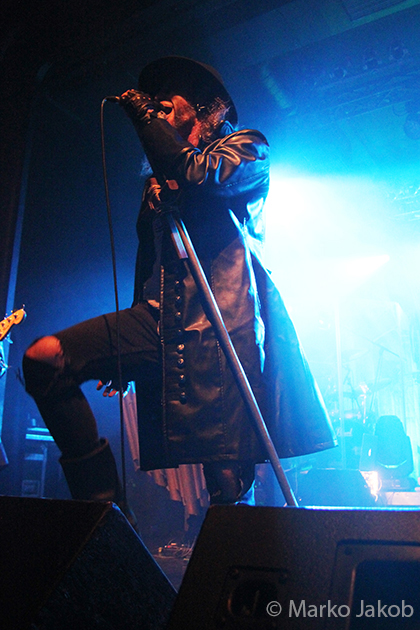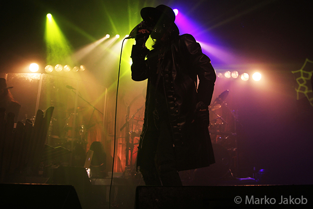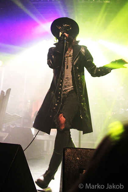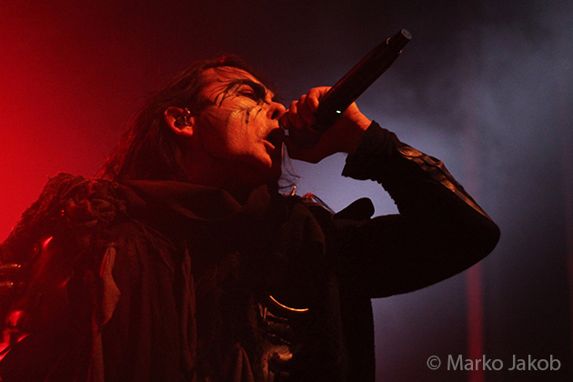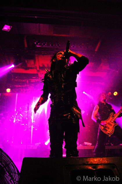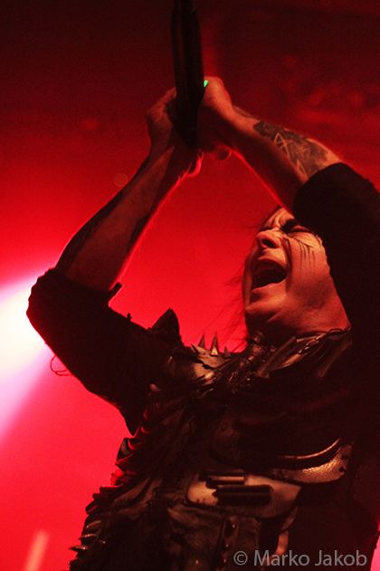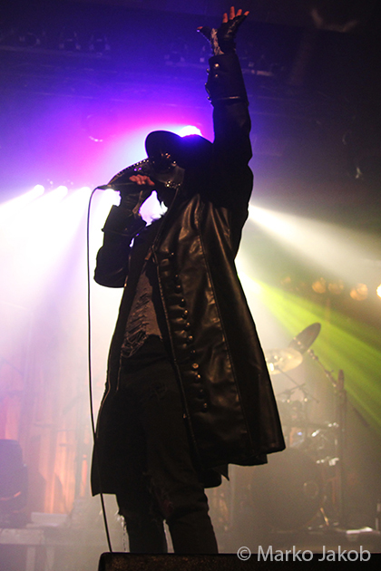 At 9.30 pm the stage was ready for CRADLE OF FILTH. A beautiful, large painted backdrop adorned the stage and for drummer Martin, an acrylic glass “cage” awaited. With the very fast song ‘Gilded Cunt’ it was right down to business from the beginning. As always with singer Dani, he appeared in a stunning and impressive outfit with giant gothic-metal boots and a jacket with huge killer rivets. A perfect outfit for this kind of music and completely fitting for the action on the stage. With maniacal head-banging guitarists and a wild running and jumping singer, the stage was actually a bit small for the 6 musicians. After an hour, the band said a premature goodbye to the Berlin audience. But with very loud “hey hey hey” calls from almost the whole crowd, the audience deserved and received an encore – and a very long one.