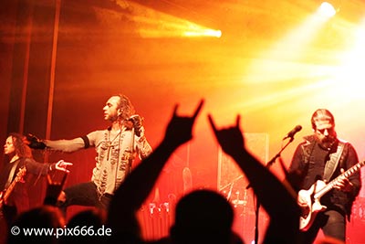 Vocalist Dani came back to the stage with a new jacket, which he removed after a few seconds. By now it had become really warm in the Columbia Theater for both band and audience. Again and again, several jets of steam rose up between the guitarists, a really great effect. During the encore, keyboarder Lindsey’s stunning voice was heard more and more, especially in the megahit ‘Nymphetamine’. It’s a real pity she doesn’t sing along in more songs. Now with the mood totally at its peak, the audience was extremely loud. Singer Dani commented to the audience: “You sound like you were ‚Born in a Burial Gown’” and then continued on to thank everyone for the fantastic mood and of course to the great MOONSPELL. Shortly after 11 pm a terrific Metal evening in one of the best clubs in Berlin came to an end.