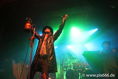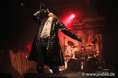 At exactly 8 pm MOONSPELL entered the stage. In the dim light, Singer Fernando appeared. The glow from the beautiful red ancient lamp that he carried set the special atmosphere for the opener ‘Em Nome Do Medo’. This continued with the title track of the current album ‘1755’. Fernando wore a beaked “plague mask” during this song. In the Middle Ages, these were filled with herbs and liquids, but I believe that rite was waived today! It was however a great sight and added to the unique mood. The Portugese sung part of the set was followed by ‘Night Eternal’ and one of the band’s biggest hits, ‘Opium’. After exactly one hour this terrific Metal show was concluded with ‘Full Moon Madness’ from the 1996 album ‘Irreligious’. The whole performance, which was characterized by Fernando’s deep and charismatic voice and the ingenious stage presence of the whole band, was appreciated loudly by the Berlin fans.