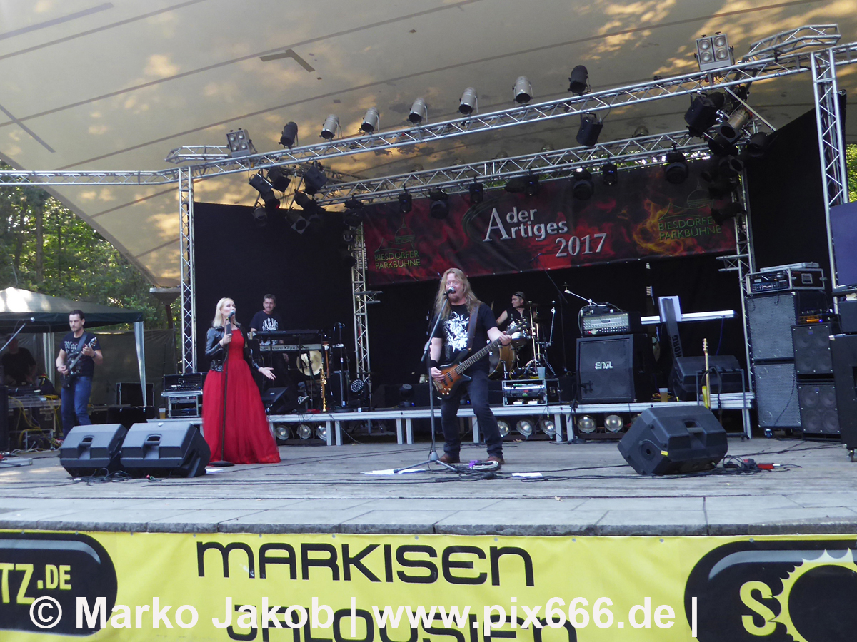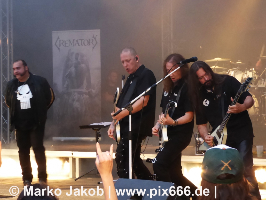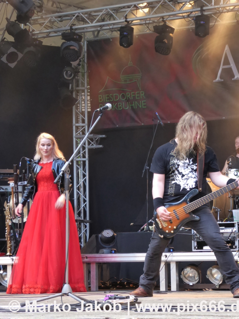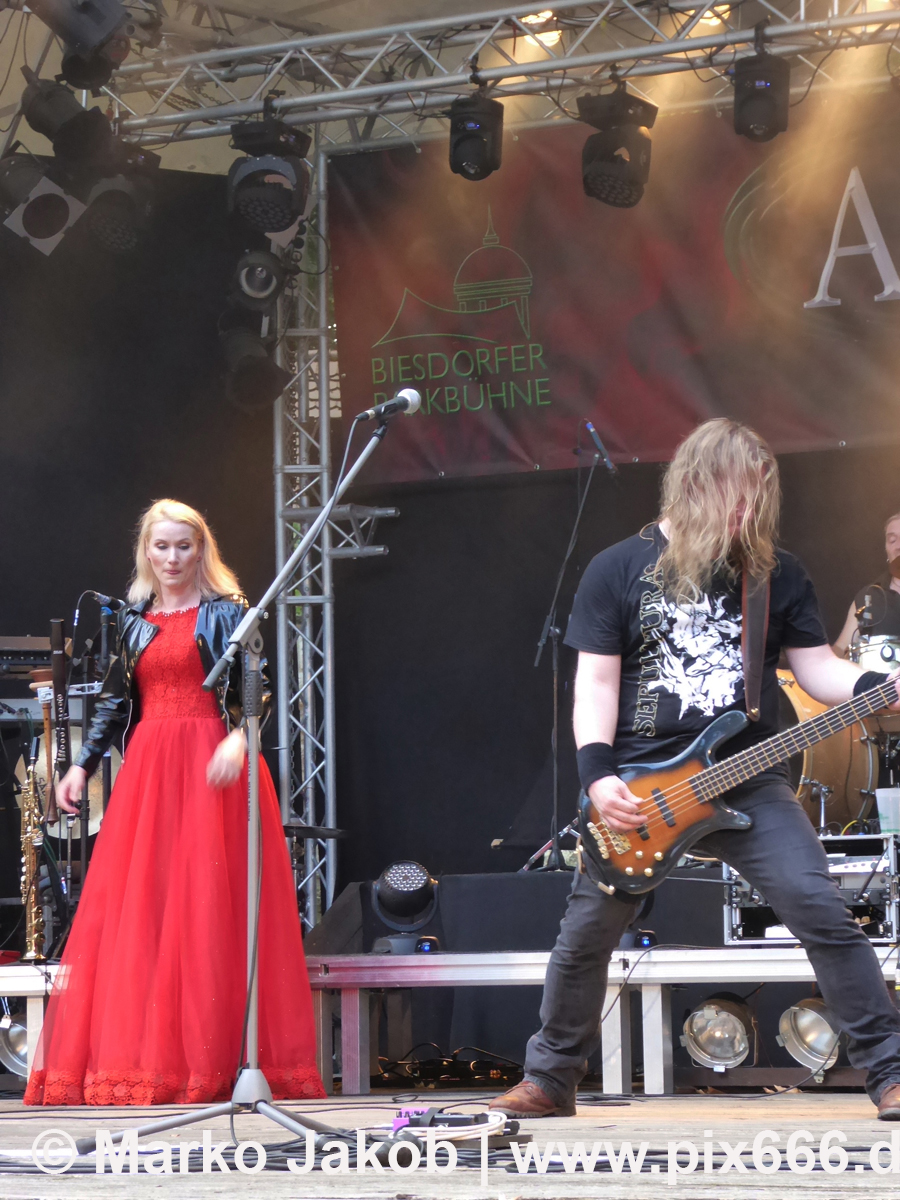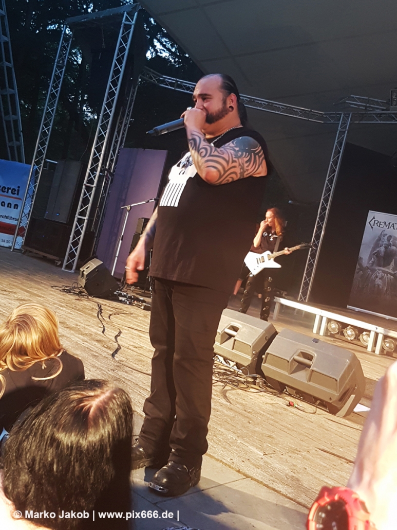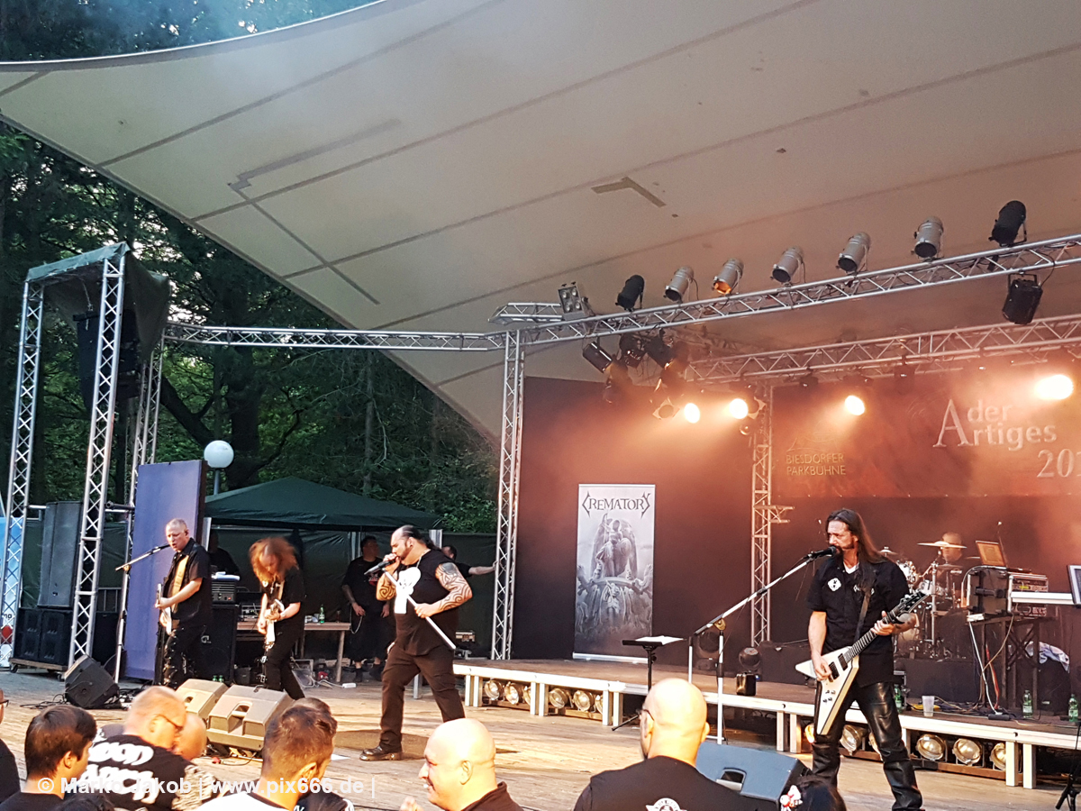 Über 25 Jahre sind Crematory bereits erfolgreich unterwegs. Bei schönem Sommerwetter spielten sie auf der Biesdorfer Parkbühne im Osten Berlins. Mit dabei als Support war die Gothic Metal Band Crayfox aus Sachsen.