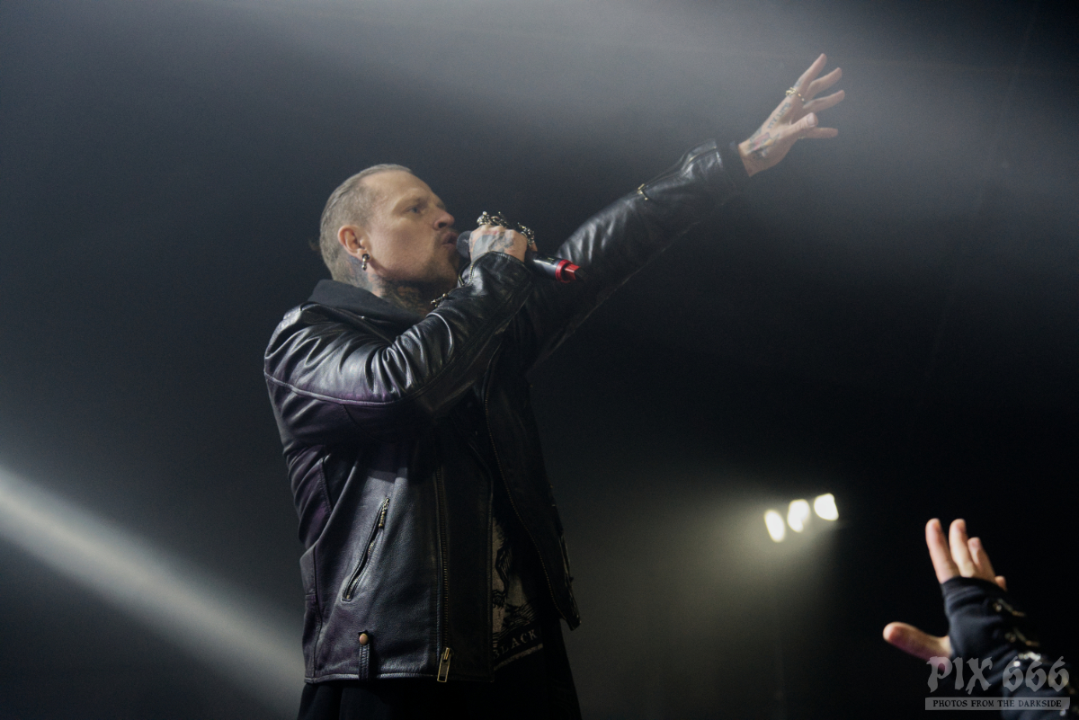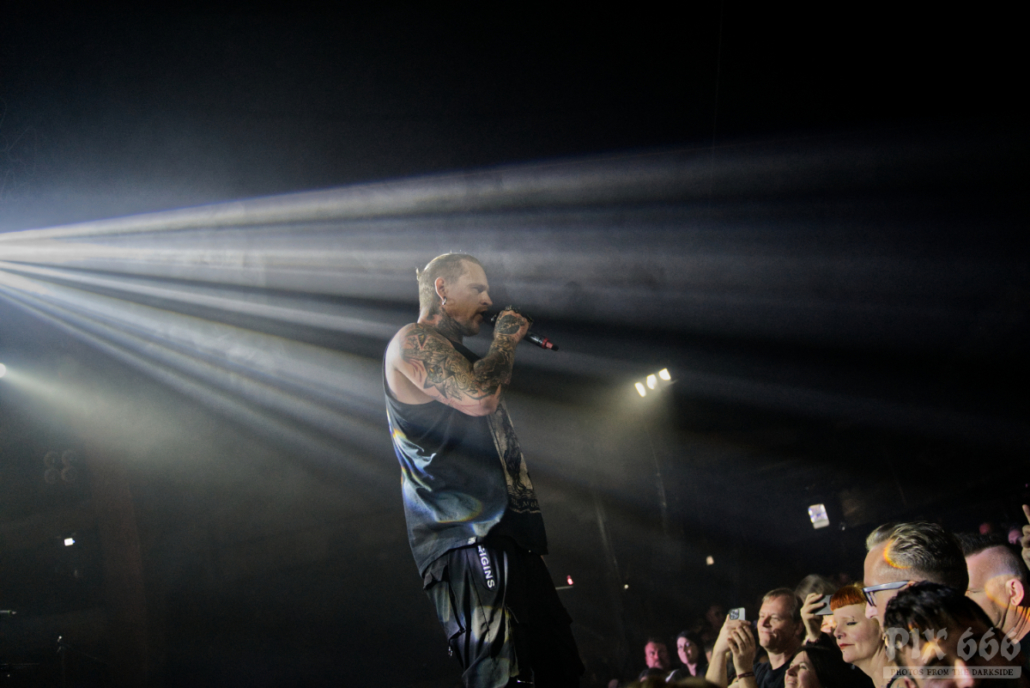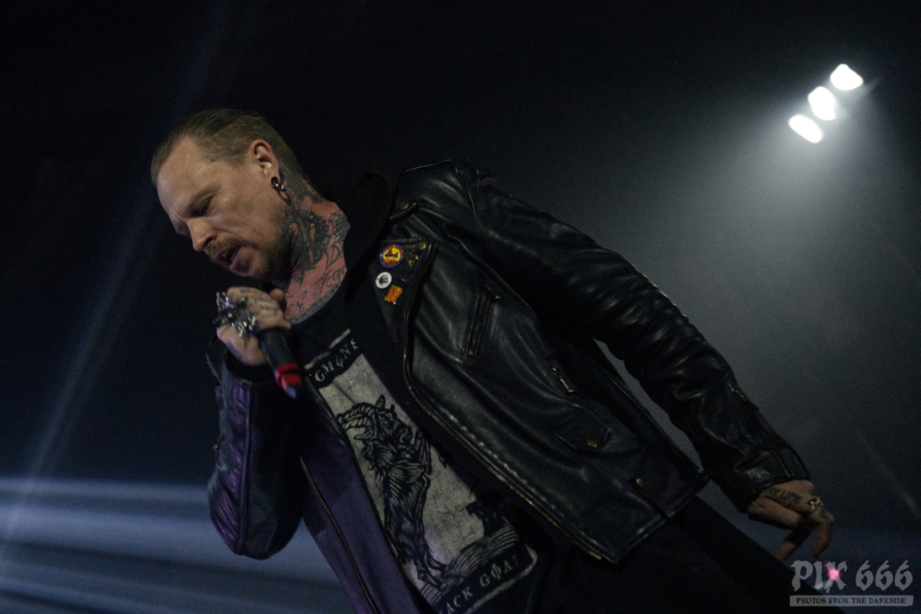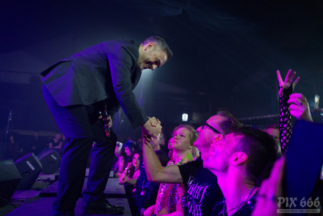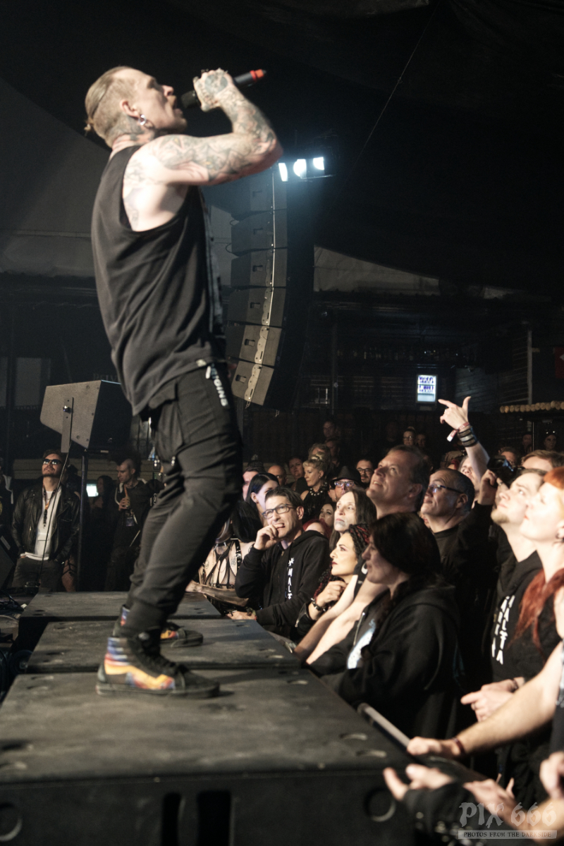 Auftritte von Icon Of Coil sind in den letzten Jahren zu einer Seltenheit geworden – die Priorität von Andy LaPlegua liegt dann wohl doch eher bei seiner anderen Band Combichrist. Deshalb kann man davon ausgehen, dass viele im Publikum zum ersten Mal eine Show von Andy’s Future Pop Projekt live gesehen haben. Die Fans kamen heute nicht zum Ausruhen – weiter ging es mit Tanzen – angeheizt vom norwegischen Frontmann und von den stampfenden Beats der Songs, wie zum Beispiel ‚Regret‘ aus dem Jahr 2000. Lederjacke aus und weiter ging es wie ein Wiesel über die Bühne. Die Uhr zeigte inzwischen kurz vor Mitternacht und das Dark Malta Publikum war einfach nicht müde zu bekommen, trotz der ununterbrochenen, schweißtreibenden Tanzeinlagen. Auch auf der Bühne wurde es scheinbar immer heißer – nun musste auch noch die fast bodenlange Kapuzenjacke weichen und weiter ging es im ärmellosen Shirt. „Habt ihr eine gute Zeit?“ fragte Andy nur wenige Zentimeter von den Fans entfernt. Ohja, definitiv hatten alle in der Location einen tollen Abend, der nun mit dem Song ‚Dead Enough For Life‘ gekrönt wurde – was für eine tolle Stimmung – fast jeder im Gianpula Mainroom hat gemeinsam mit Andy diesen Hit mitgesungen.