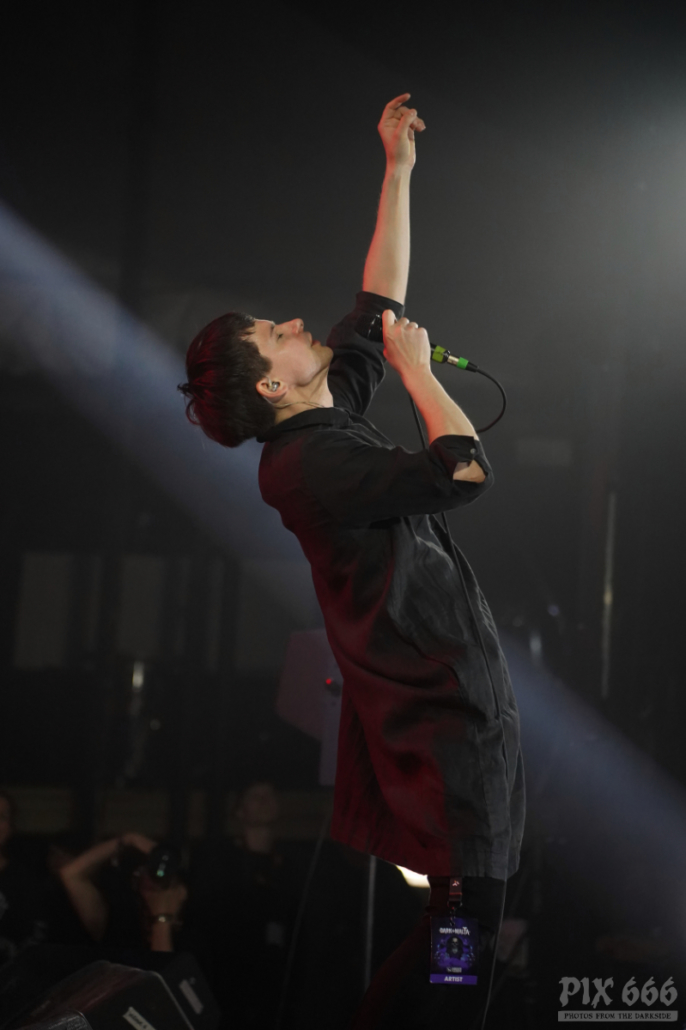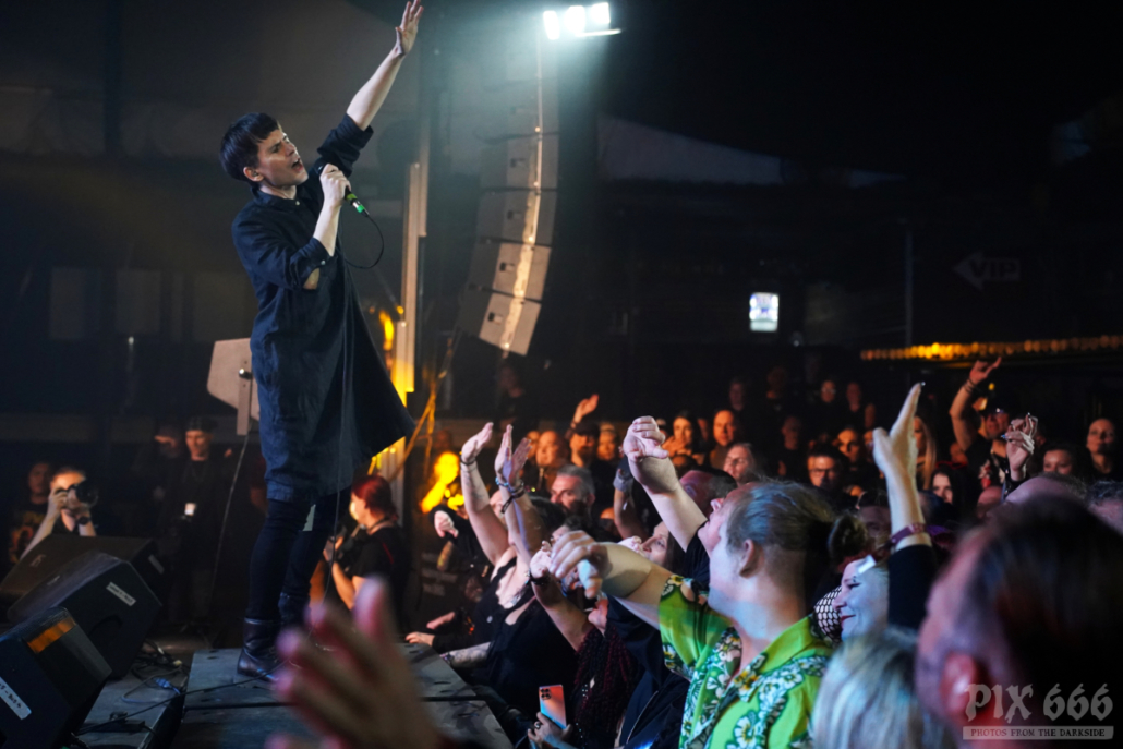 Bei der nächsten Band ging es noch etwas sanfter zur Sache. Los ging es mit ‚Monsters‘, dem Titelsong des dritten Empathy Test Albums. Der tolle Sound und die atemberaubende Stimme von Sänger Isaac Howlett sorgten für den ein- oder anderen Gänsehautmoment – für uns eine der schönsten Stimmen des Dark Malta 2023. “Jetzt etwas schnelleres – ‚Fear Of Disappearing‘ – ihr könnt ja tanzen oder vielleicht besser einfach springen“ sagte der ganz in schwarz gekleidete Isaac. Das Publikum genoss die Show und ich denke, Empathy Test haben heute einige neue Fans dazubekommen und so mancher wird nach der Show einen Abstecher zum Merch gemacht haben. „Wir haben CDs, Vinyl und Shirts mit – ihr könnt uns gerne unterstützen“. Auch bei diesem Auftritt verging die Zeit viel zu schnell. „Wir haben noch zwei Songs, das nächste heißt ‚Demons‘“ – so wurde dann schon das große Finale der Show angekündigt. Übergangslos ging es zum ersten großen Hit der Band über – ‚Losing Touch‘ aus dem Jahr 2014 war ein toller Abschluss der Show.