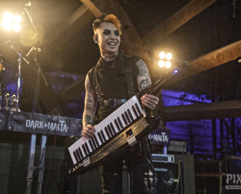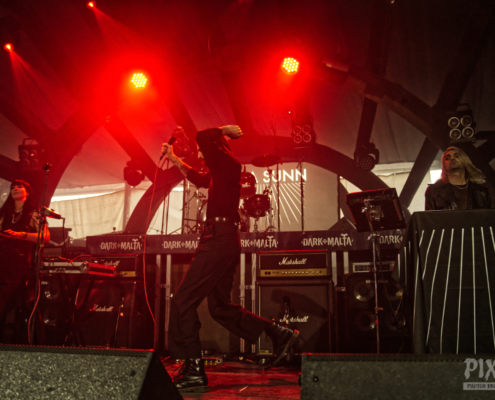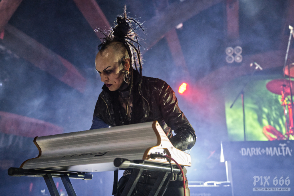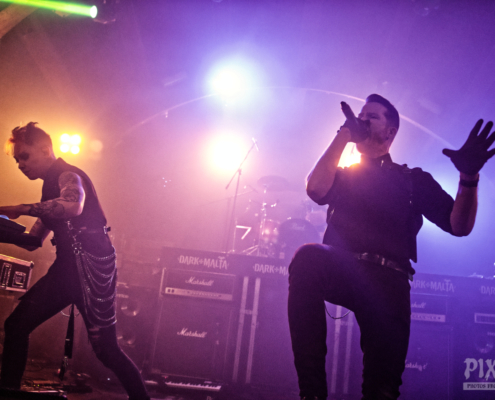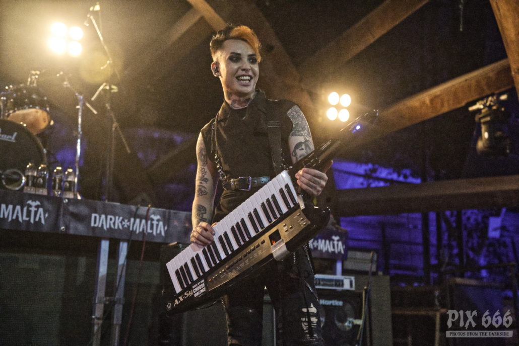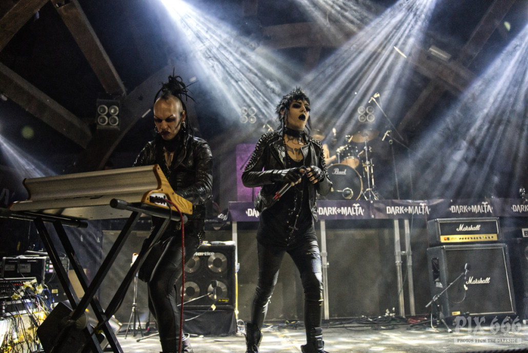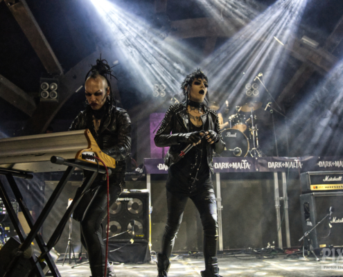 Beim Auftritt der Band Grendel war dann der Gianpula Main Room wieder richtig voll. Grendel legten eine grandiose, mitreißende Show hin – und das heute nur als Duo. Der Publikumsbereich wurde nun wieder zu einer einzigen Tanzfläche – toller Sound dröhnte durch die Location. Spätestens bei ‚Severed Nation‘ war dann richtig Partyalarm und auch auf der Bühne ging es rasant zu – JD Tucker und Kuro Andrews an den Keyboards wussten genau, wie man ein Festivalpublikum in Bewegung bringt und hält. Dann wurde das Keyboard sogar umgehängt, und mit dem ‚Keytar‘ wilde Pirouetten gedreht. Auch die Fans hatten ununterbrochen Spaß und nun wurde auch richtig laut gekreischt. „Danke – wie fühlt ihr euch, Malta?“ Ok, nach dieser Frage wurde das Kreischen noch ein paar db lauter. Weiter ging’s mit ‚Dead Inside’ aus dem Jahr 2017. Nach ein paar Zeilen ‚Careless Whisper‘ von George Michael spielte das Duo dann ‚Conflict Instigation‘, gefolgt vom Klassiker ‚Chemicals + Circuitry‘ aus dem Jahr 2000. Zeitweise ging es richtig wild zur Sache und die Fans wurden auch kein bisschen müde. JD fragte aber lieber mal nach: „Habt ihr noch Energie in euch? Das nächste Stück ist von 2007“. Nach ‚Harsh Generation‘ folgte dann eine Danksagung an alle, die dieses Festival auf die Beine gestellt haben und natürlich an die tollen Fans.
