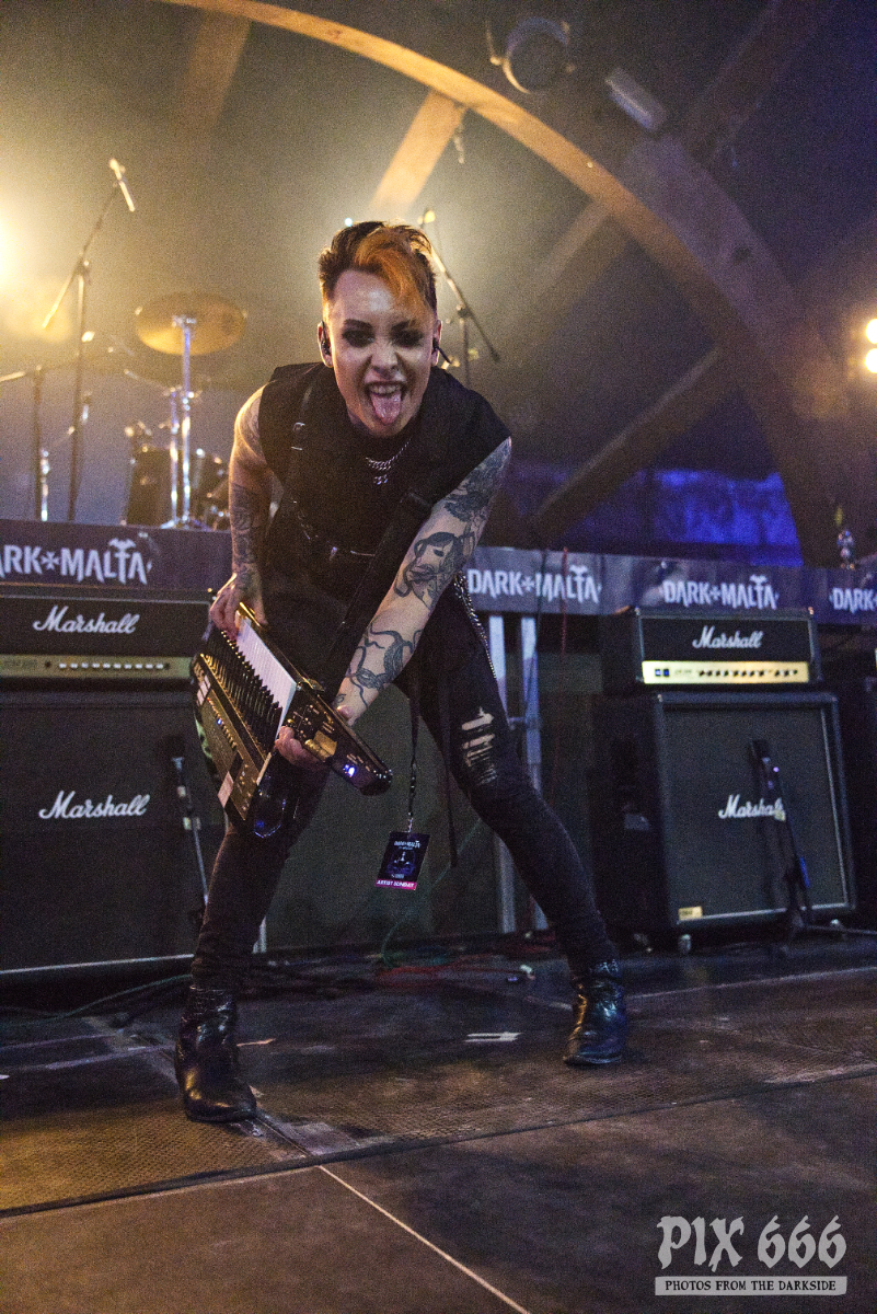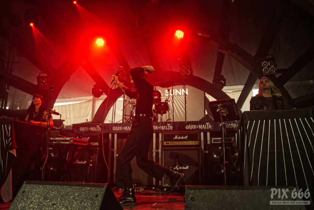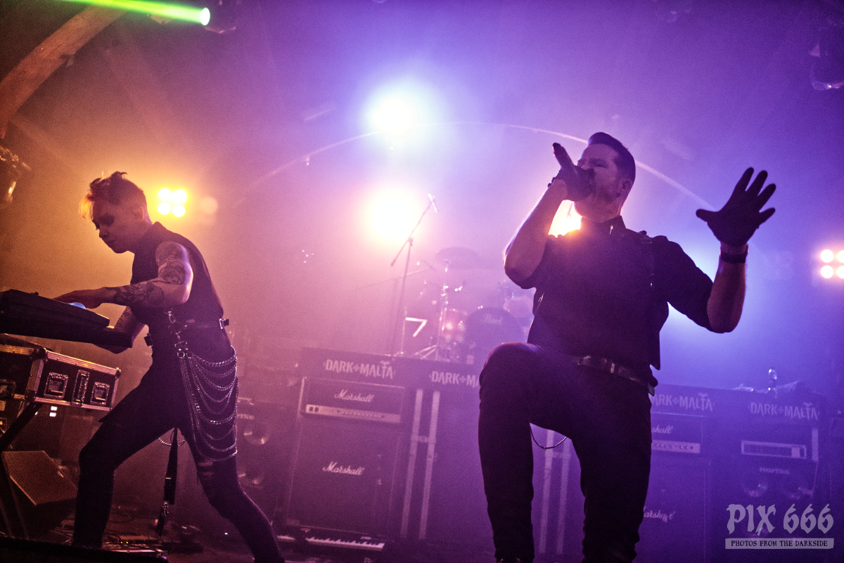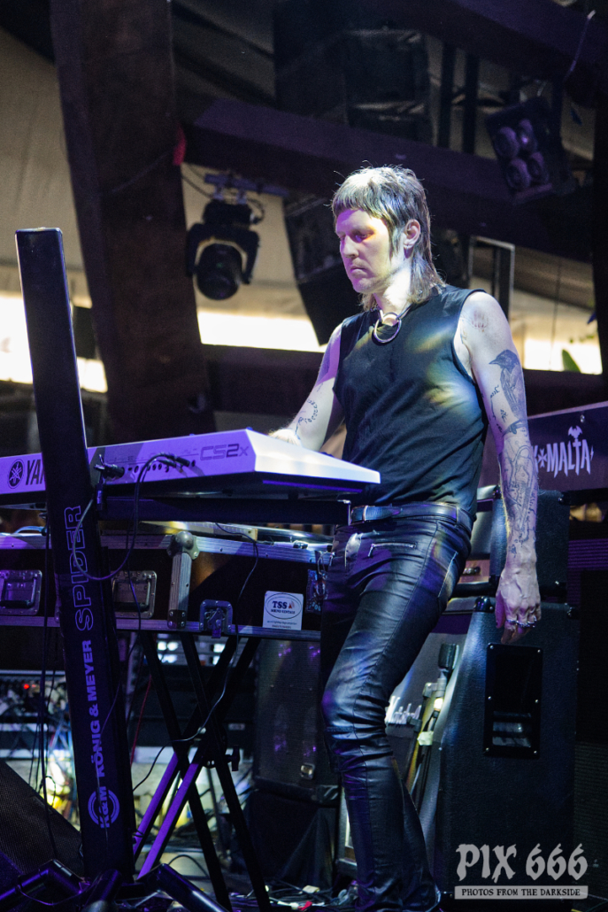 Beim Auftritt der Band Grendel war dann der Gianpula Main Room wieder richtig voll. Grendel legten eine grandiose, mitreißende Show hin – und das heute nur als Duo. Der Publikumsbereich wurde nun wieder zu einer einzigen Tanzfläche – toller Sound dröhnte durch die Location. Spätestens bei ‚Severed Nation‘ war dann richtig Partyalarm und auch auf der Bühne ging es rasant zu – JD Tucker und Kuro Andrews an den Keyboards wussten genau, wie man ein Festivalpublikum in Bewegung bringt und hält. Dann wurde das Keyboard sogar umgehängt, und mit dem ‚Keytar‘ wilde Pirouetten gedreht. Auch die Fans hatten ununterbrochen Spaß und nun wurde auch richtig laut gekreischt. „Danke – wie fühlt ihr euch, Malta?“ Ok, nach dieser Frage wurde das Kreischen noch ein paar db lauter. Weiter ging’s mit ‚Dead Inside’ aus dem Jahr 2017. Nach ein paar Zeilen ‚Careless Whisper‘ von George Michael spielte das Duo dann ‚Conflict Instigation‘, gefolgt vom Klassiker ‚Chemicals + Circuitry‘ aus dem Jahr 2000. Zeitweise ging es richtig wild zur Sache und die Fans wurden auch kein bisschen müde. JD fragte aber lieber mal nach: „Habt ihr noch Energie in euch? Das nächste Stück ist von 2007“. Nach ‚Harsh Generation‘ folgte dann eine Danksagung an alle, die dieses Festival auf die Beine gestellt haben und natürlich an die tollen Fans.