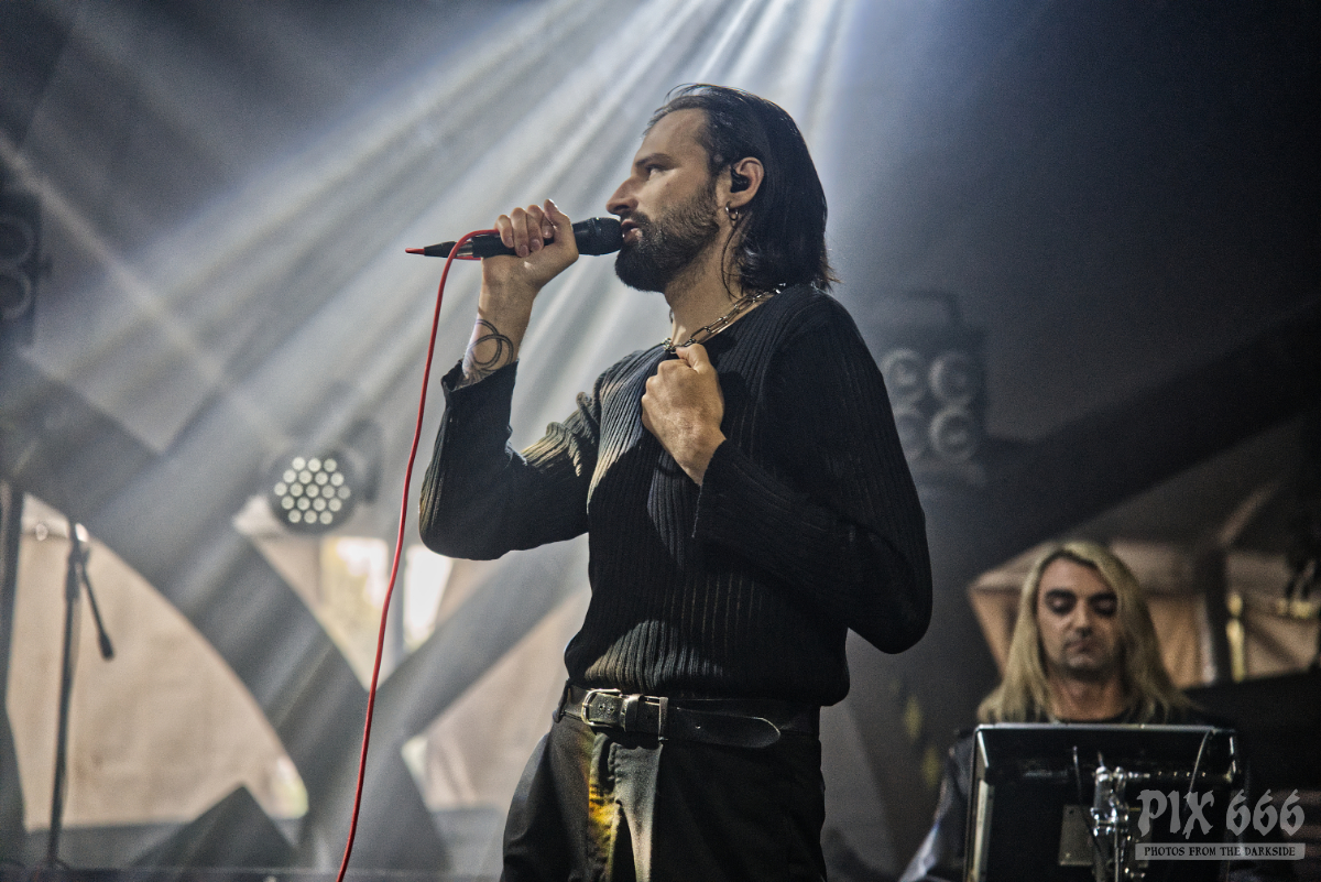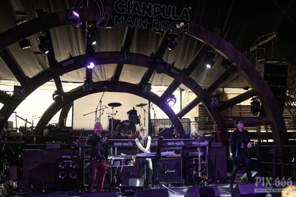 Schon waren wir am dritten Festivaltag angekommen. Wir starteten mit der Show von Boytronic. Die Geschichte der Band reicht über 40 Jahre zurück und beinhaltete auch eine zehnjährige Auszeit. Die letzte Veröffentlichung von Boytronic – das Album ‚The Robot Treatment‘ – stammt aus dem Jahr 2019. Der Gianpula Main Room war richtig gut besucht, auch wenn es noch nicht so vollgestopft war, wie am Vortag. Boytronic begannen ihre Show gleich mit einer Synth-Pop Perle aus den 80er Jahren. Das war ein schwungvoller Start mit ‚Trigger Track‘. Aber natürlich hatten die Jungs auch neue Stücke dabei, wie zum Beispiel ‚All You Can Eat‘ und ‚Smell Of Fire‘. Das war ein wirklich schöner Auftritt der legendären Band – schön, dass die zurück sind und dass sie das Dark Malta Festival mit ihrer Musik bereichert haben. Aber was wäre eine Boytronic Show ohne ihren größten Hit? Die Debütsingle der Band aus dem Jahr 1983 erreichte nämlich sogar den zehnten Platz in den deutschen Singlecharts und machte die Band schon damals einem breiten Publikum bekannt. ‚You‘ funktioniert damals, wie heute – ein echter Klassiker.