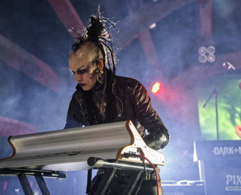 „Wir können zwei Dinge tun“ hieß es dann. „…entweder ins Hotel gehen und abhängen oder noch ein paar Songs spielen“. Und natürlich ging es hier noch weiter. Mit ‚Hate This‘ folgte ein wahrer Aggrotech Klassiker mit mehr als 1 Mio Aufrufen auf YouTube. Nun waren alle Hände in der Luft und es wurde heftig geklatscht. Grendel spielten sogar länger, als im Timetable vorgesehen und hatten mit ‚Void Malign‘ sogar noch eine weitere Zugabe parat.