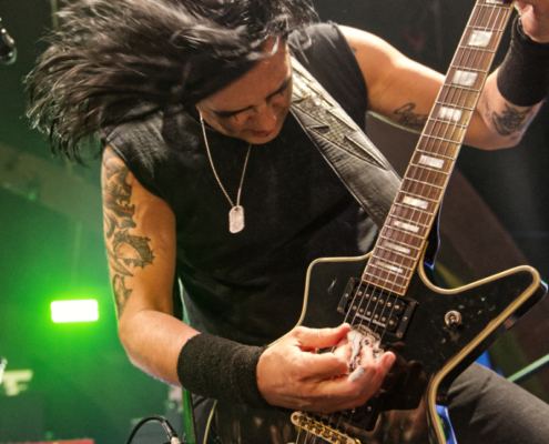 Leute, wir waren wirklich schon bei der letzten Band angekommen, aber diese hatte es dann nochmal so richtig in sich. Die legendären Combichrist machten kurz vor Beginn ihrer ‚Still Making Monsters 2025‘ Tour (30.04.-07.06.2025) noch einen Abstecher nach Malta. Nach 2022 waren sie heuer bereits zum zweiten Mal beim Dark Malta Festival dabei. Einmal mehr gelang Combichrist der Spagat zwischen knallharten Gitarrensongs und eher im brachialen Electrosound gehaltenen Stücken. Die Fans gaben jetzt ihre letzten Energiereserven, einige standen glaube den ganzen Tag in der ersten Reihe – Respekt. Bei Combichrist ging es nun also nochmal wild zur Sache – auf und auch vor der Bühne. Sänger Andy war ständig in Bewegung und riss das Publikum förmlich hin und her. Auch an den beiden Seiten der Bühne drängten sich die Fans dicht aneinander. In dieser außergewöhnlichen Location kann man tatsächlich als Fan auch die Bereiche neben der Bühne betreten und in Verbindung mit den Stufen im mittleren Bereich vor der Bühne entsteht im Gianpula Mainroom eine einmalige und intime Atmosphäre, die ihresgleichen sucht. Combichrist punkteten nicht nur mit den Klassikern und Megahits ‚Get Your Body Beat‘ und ‚Electrohead‘ – auch die neuen Stücke, wie ‚Compliance‘ und ‚Modern Demon‘ gingen ordentlich ins Ohr und ins Tanzbein. Combichrist lieferten einen perfekten Schlusspunkt eines erneut wundervollen, und von Renè und seinem Team toll organisierten Event.