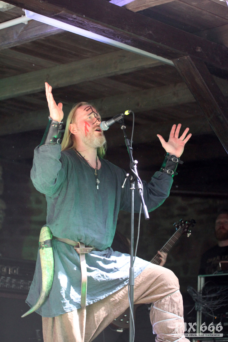„Seid ihr schon wach, habt ihr Bock?“ Die cool geschminkte Pagan Metal Band hatte in der Tat keine Mühe, dass Publikum wach zu halten, bzw. die noch müden Geschöpfe aufzuwecken.