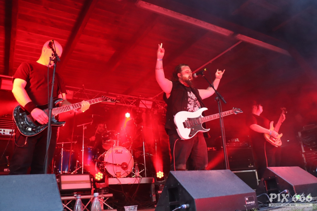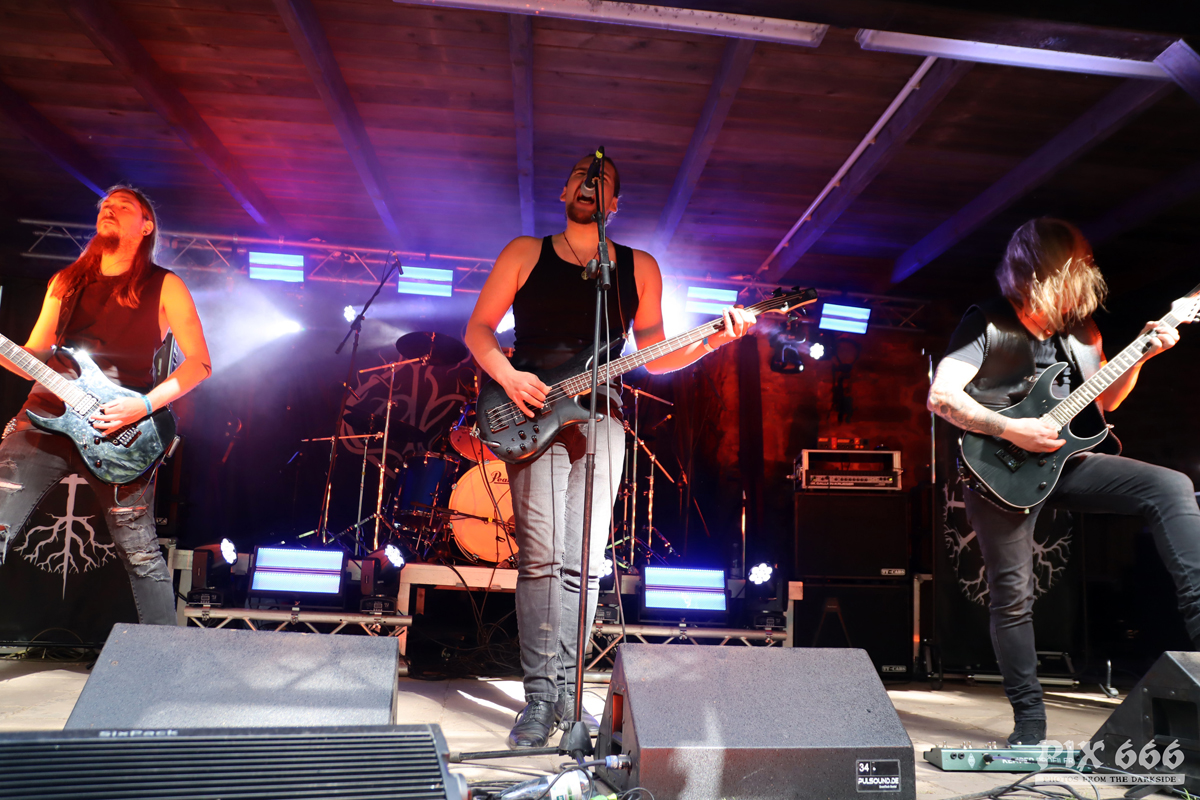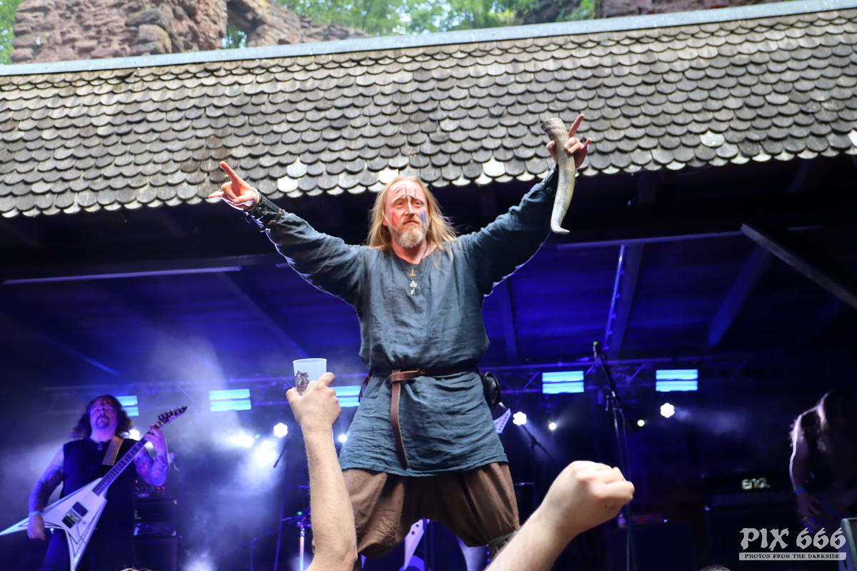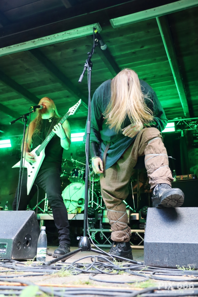 Bereits beim Fimbul Festival 2021 an gleicher Stelle konnten die Jungs aus Saarbrücken voll überzeugen. Vor der Bühne war es nun richtig voll und die Stimmung prächtig.