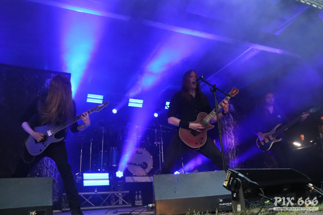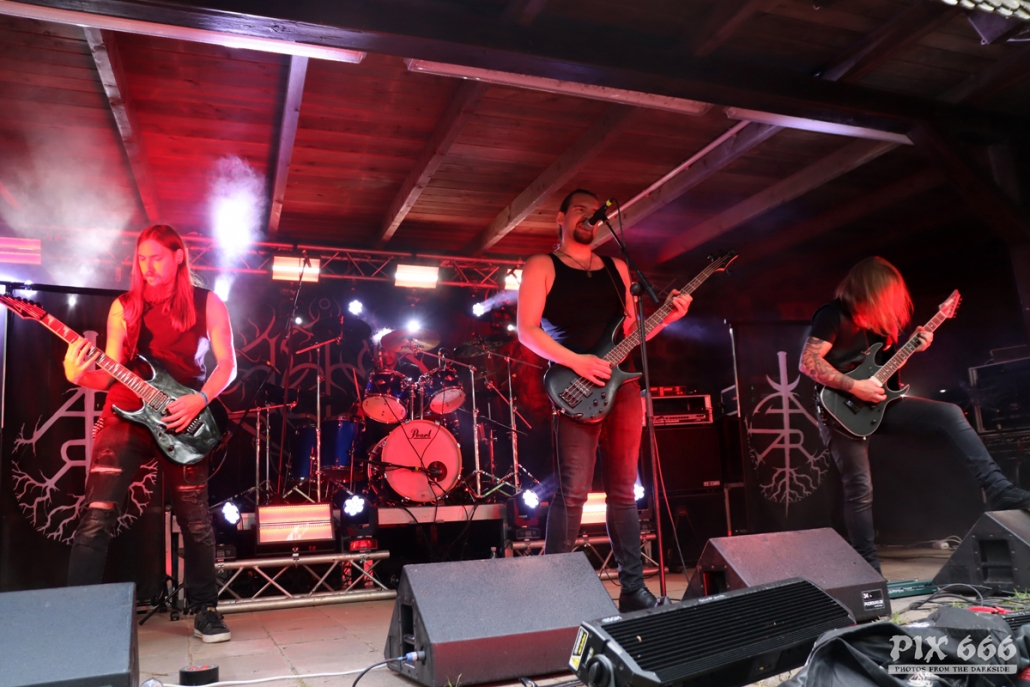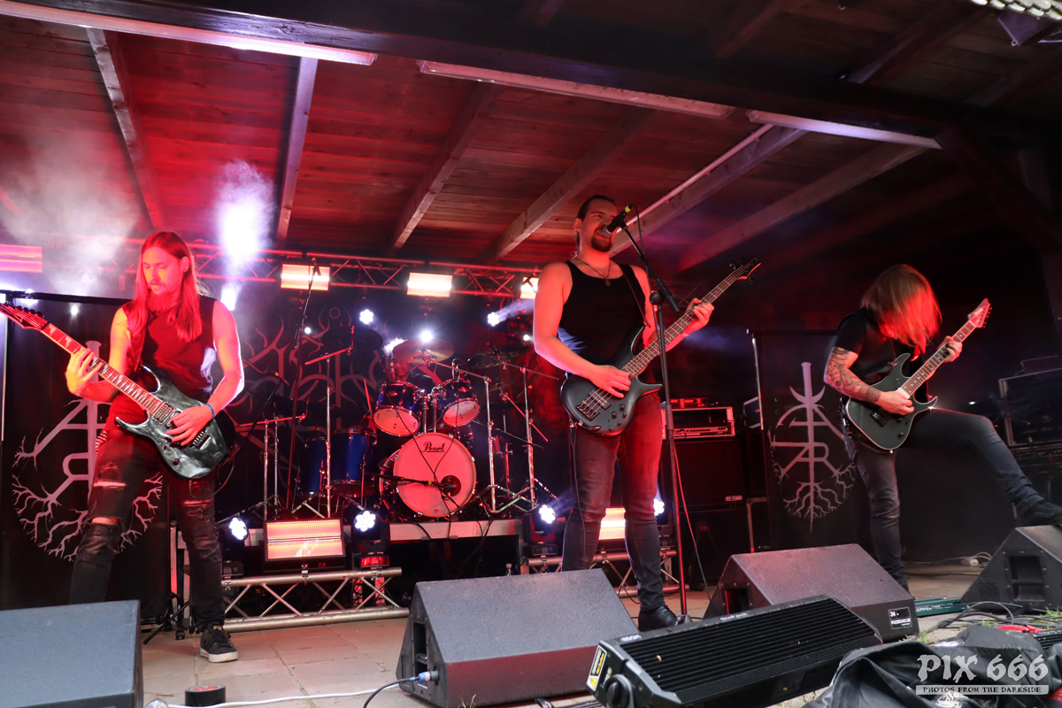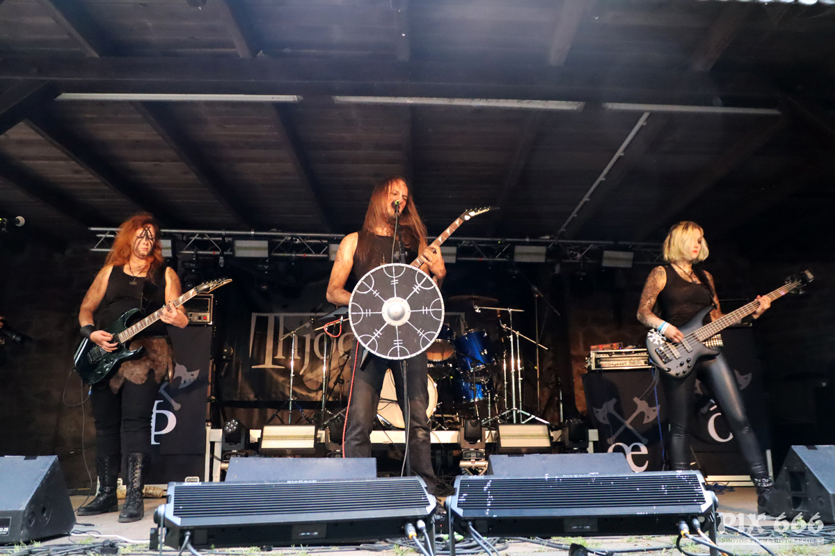 Bereits beim Fimbul Festival 2021 an gleicher Stelle konnten die Jungs aus Saarbrücken voll überzeugen. Vor der Bühne war es nun richtig voll und die Stimmung prächtig.