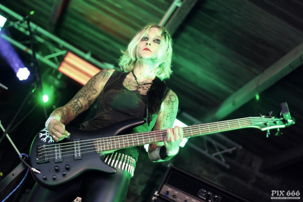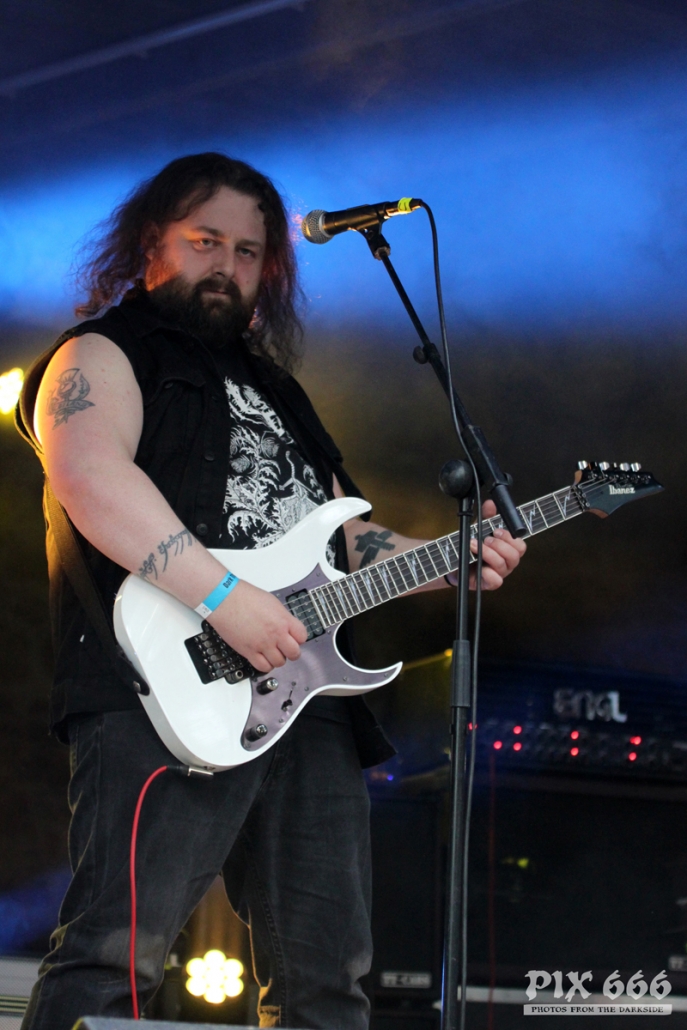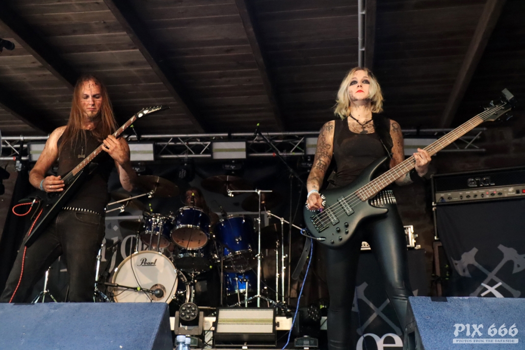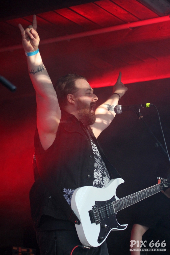 Der zweite Tage des Dark Troll Festival startete pünktlich bei strahlendem Sonnenschein. Einige hundert Besucher hatten sich bereits kurz nach Mittag vor der Bühne versammelt – und auf der Bühne standen nicht Nordic Raid, die Kieler Metalband musste leider kurzfristig absagen. Doch der Veranstalter hatte ganz kurzfristig einen starken ‚Ersatz‘ gefunden.