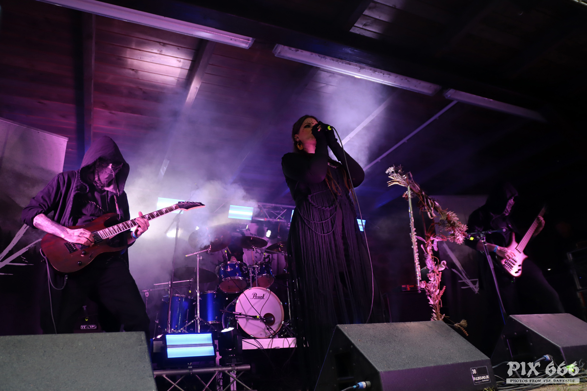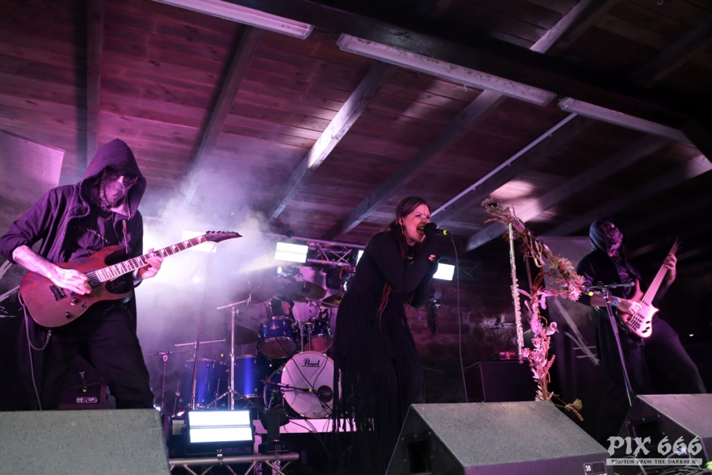 Das Scandinavian Pagan Metal Projekt Vermilia brachte etwas Abwechslung ins Geschehen – denn die Konzertbesucher erlebten nun die erste Frau am Micro beim Dark Troll 2022.