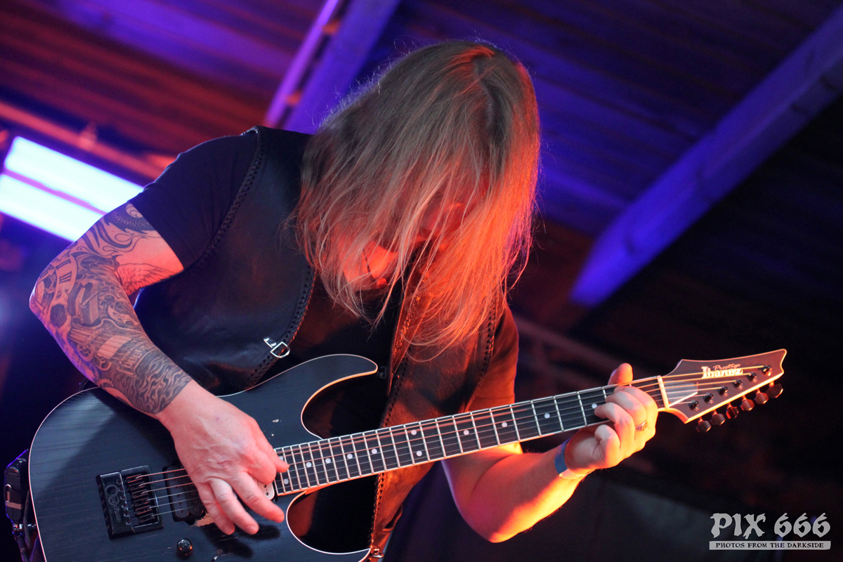 Tolles Licht und Nebel begleiteten die epischen Songs, die Teilweise eine Länge von über 10 Minuten hatten. Fantastische Gitarrensoli verlangten den Headbangern in der ersten Reihe alles ab.