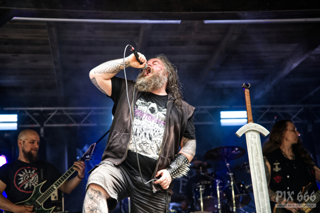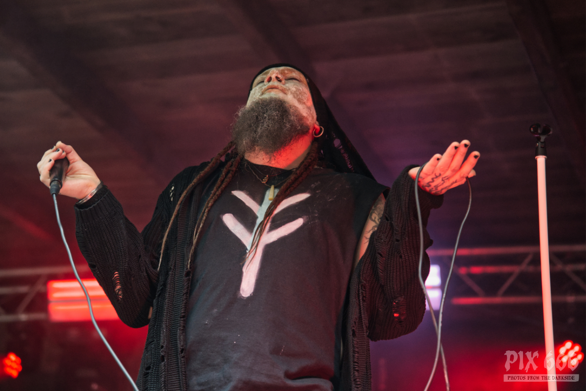 Mit ihrem Debutalbum ‚Wiedergänger‘ im Gepäck waren Jarl bereits 2021 an gleicher Stelle beim Fimbul Festival zu Gast. Legendär sind die Ansagen vom Jarl Sänger – ohne Mikro, laut gebrüllt. Das Publikum war schon am Nachmittag voll auf Betriebstemperatur, was natürlich auch am mega coolen Auftritt der Band aus Norddeutschland lag. Bei ‚From the ashes‘ wackelten nonstop die Köpfe. Jarl hatten mit ‚Schattenwolf‘ und ‚Schein‘ auch zwei Songs vom kommenden Album mit zum Festival gebracht – aber natürlich fehlten auch die Klassiker, wie ‚Trümmerfestung‘ und ‚Wiedergänger‘ nicht.