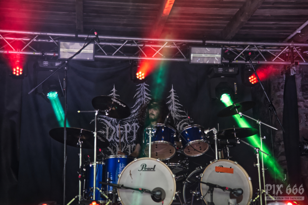 Horda Wolf war bereits 2020 mit seiner Band Waldträne in Bornstedt zu Gast. Im selben Jahr hat er das Projekt Firn ins Leben gerufen und begeistert seitdem die Pagan- und Black Metal Szene. Mit den Songs vom 2022 erschienenen Album ‚Forstwärts‘ begeisterten Firn die Metal Fans an der Schweinsburg. Die krass geschminkten Musiker hatten keine Mühe das Publikum zu begeistern – immer wieder gingen die Hände hoch. Schönes Licht bescherte der atmosphärischen Show noch zusätzlich das gewisse Etwas.