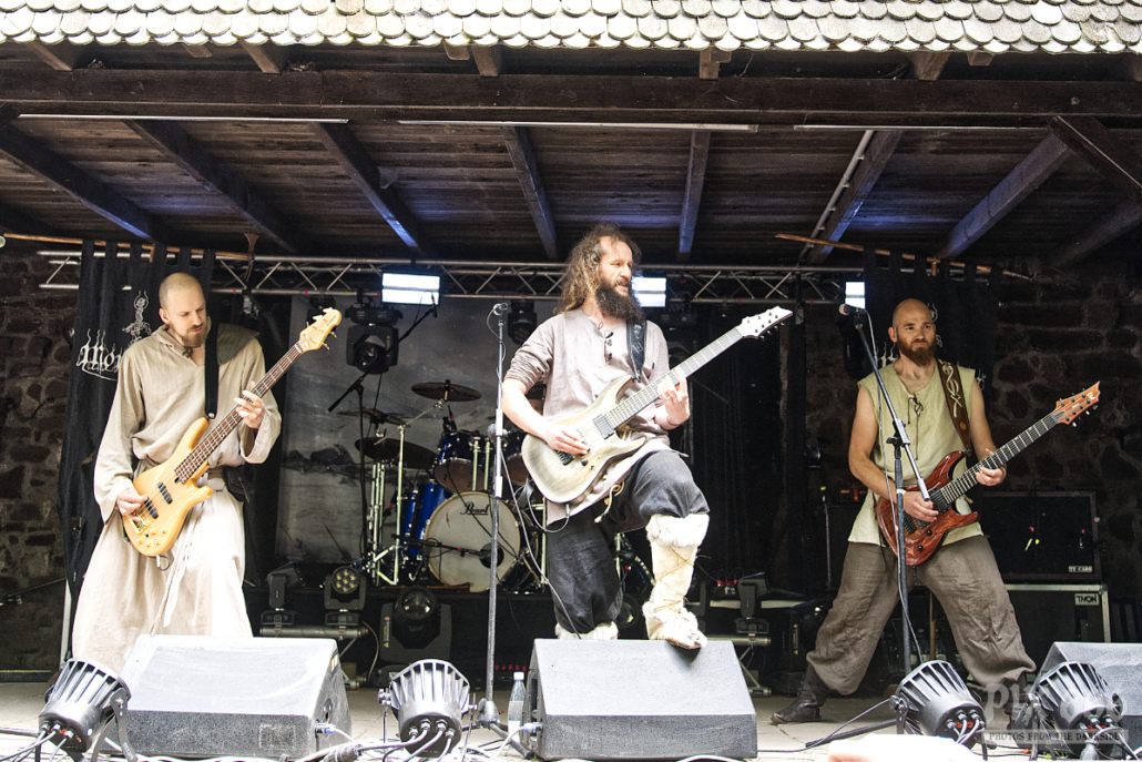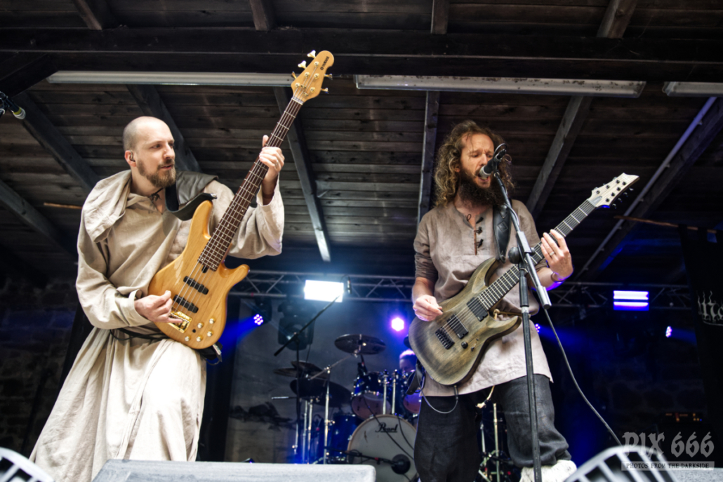 „Wir sind Morgarten aus der Schweiz“ – so stellten sich die Männer in den weiten und langen Gewändern dem Dark Troll Publikum vor. Wieder waren schon zahlreiche Metalfans am frühen Nachmittag an der Bühne. Das Folk Metal Quintett war nur zu viert nach Deutschland gereist – der Keyboarder wird in diesen Tagen zum zweiten mal Vater. „Bald gibt es ein neues Morgarten-Baby“ berichteten die sympathischen und sehr gesprächigen Musiker.